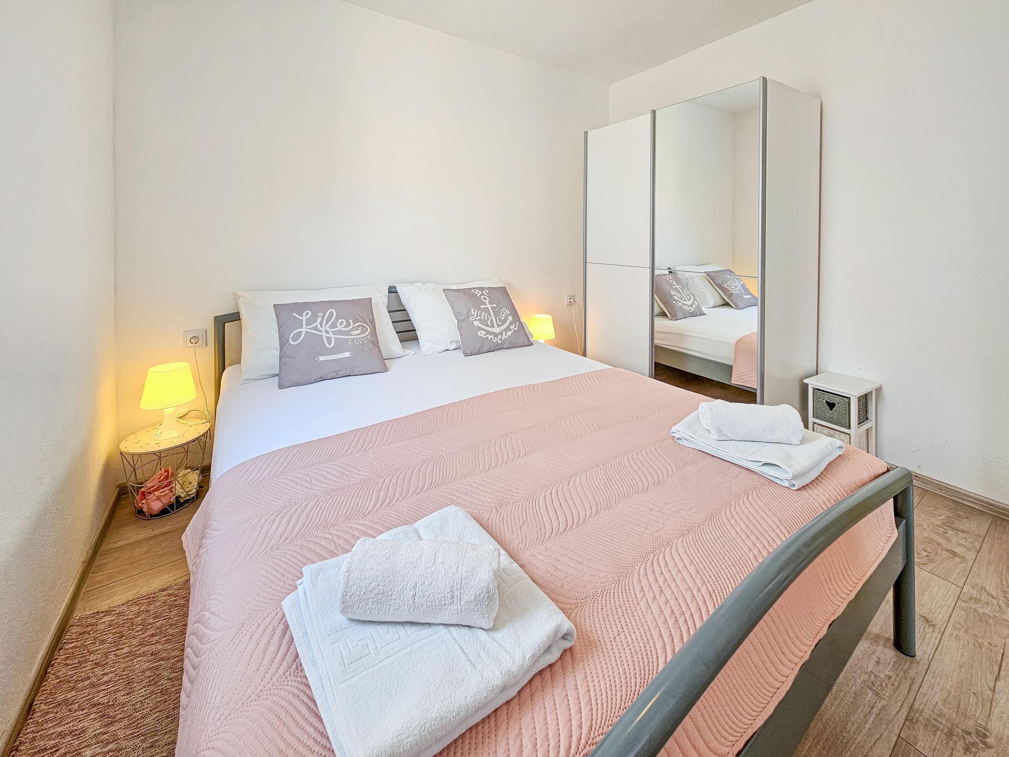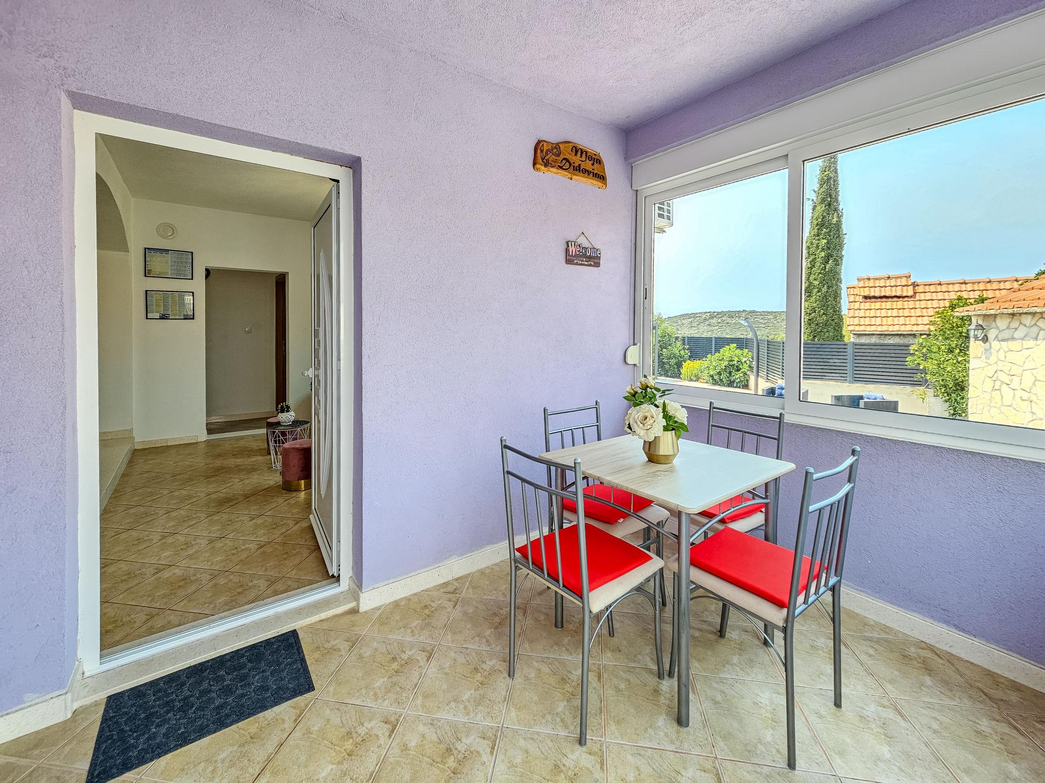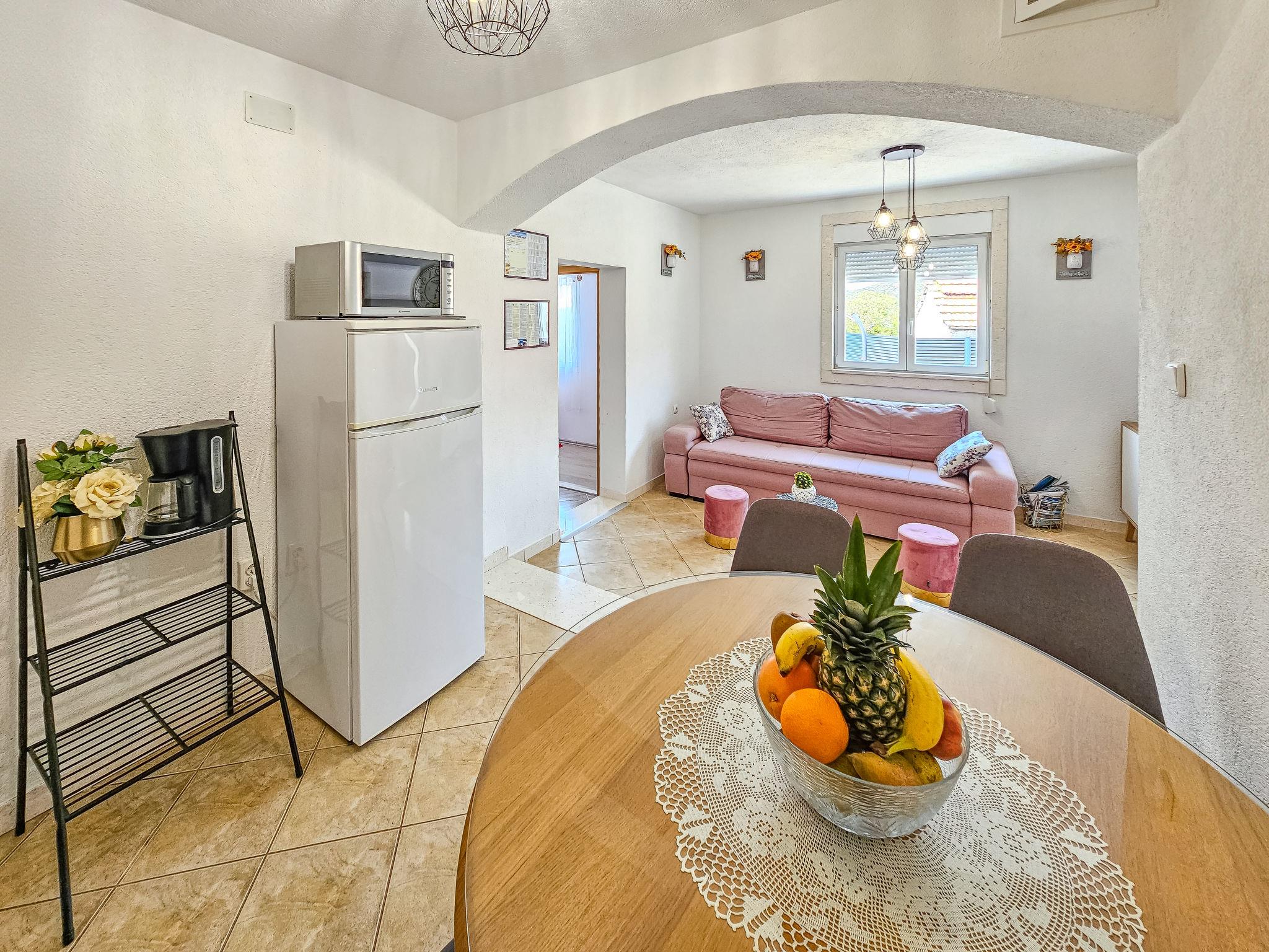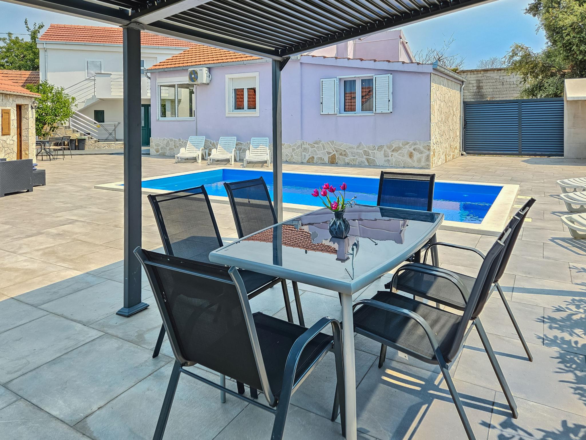 House "Nancy". 2 km from the centre of Vinišce, in a quiet, sunny position, 2 km from the sea, 2 km from the beach. Private: property 300 m2 (fenced), swimming pool angular (32 m2, seasonal availability: 01.May. - 01.Nov.) with internal staircase. Outdoor shower, terrace (50 m2), garden furniture, barbecue house, pool maintenance by the owner/gardener. In the house: internet access, trampoline, washing machine. 25 m long narrow motor access to the house. Parking at the house on the premises. Grocery 2 km, supermarket 4.2 km, restaurant 2.2 km, bus stop "Milasi 2" 130 m, pebble beach 2 km. The owner does not accept any youth groups. Please note: airfield 23 km from the property.