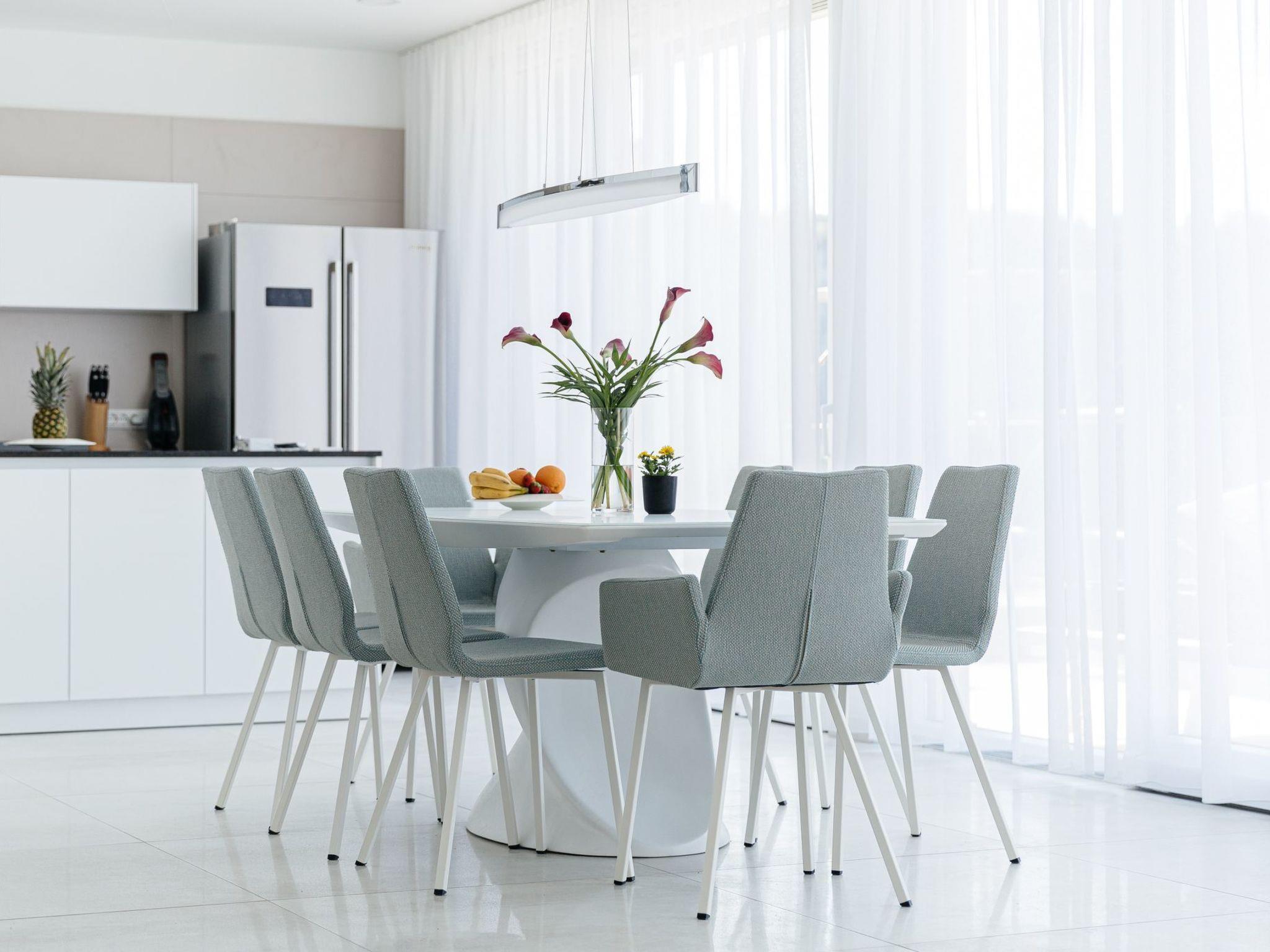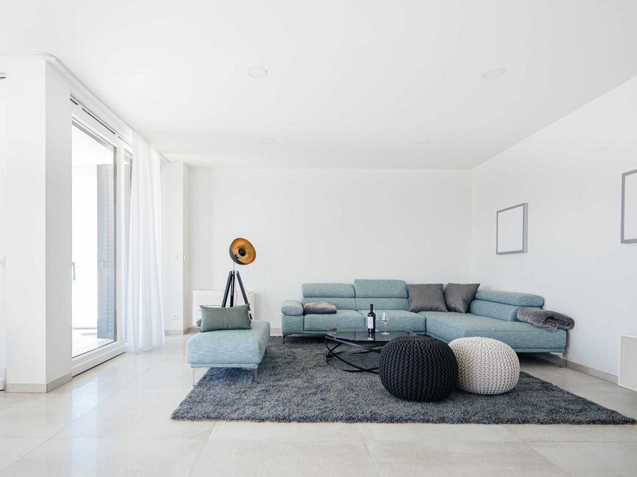The house was built on 2 levels with an internal staircase in the centre. On the ground floor a wide and open space with a cosy living room corner, spacious dining area and a fully equipped kitchen. Including extended picture and sound package. Behind this is a guest room with a sofa bed which can also be used as a study or playroom and its own access to the terrace. Next to it is a guest WC and the boiler room with storage space and washing machine/dryer. The upper floor is divided into 3 en suite bedrooms, each with its own balcony. Each room has a king-size double bed which can be converted into two single beds if required. You can enjoy an open sea view from every corner, even from your bed. The functional bathrooms all have a shower with WC and washbasin.
