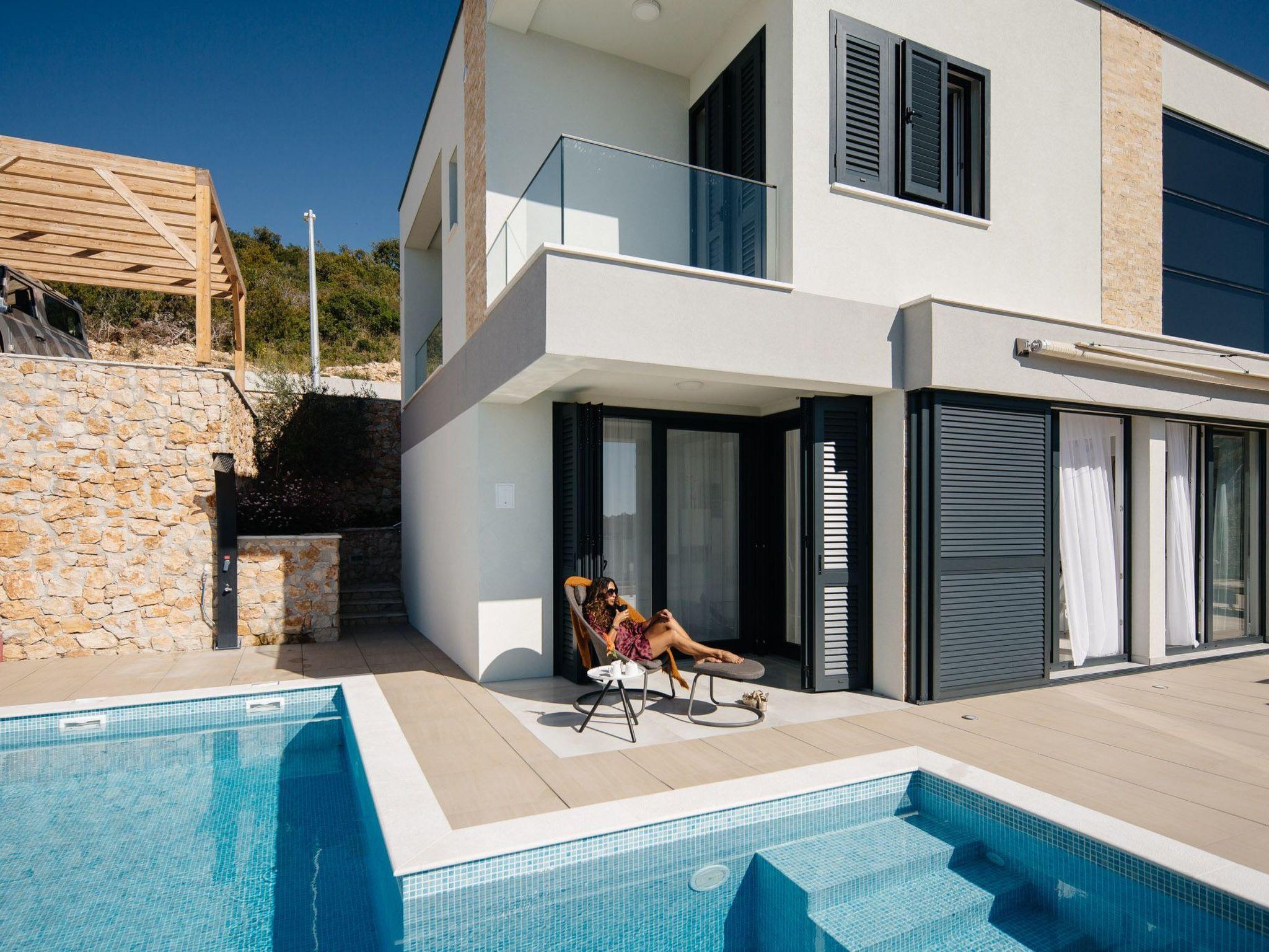 The "Plava voda Luxury Villas" have been created in a small resort of 4 properties in an interplay of modern and traditional architecture with an elegant design. Hand-carved stones set into the retaining walls of the plot and an energy-efficient building with large glass surfaces create an excellent mix.