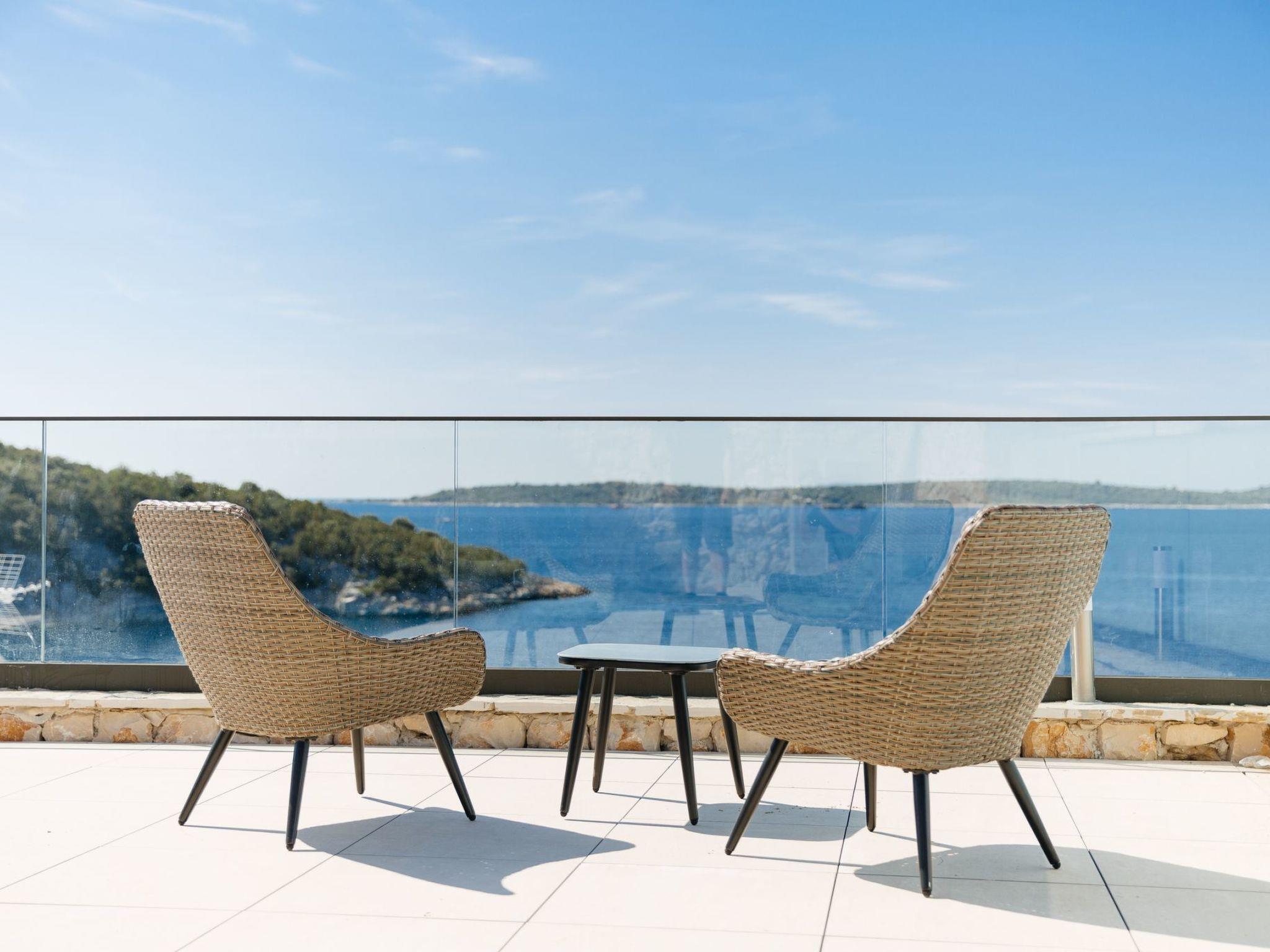 Situated in a secluded bay of Vinisce not far from the centres of Marina and Trogir where a high level of intimacy and tranquillity is guaranteed. The villas, built on a steep slope, offer a breathtaking view of the sea and the offshore islands. The resort's own staircase leads directly to the natural stone beach with crystal-clear water just a few steps away.