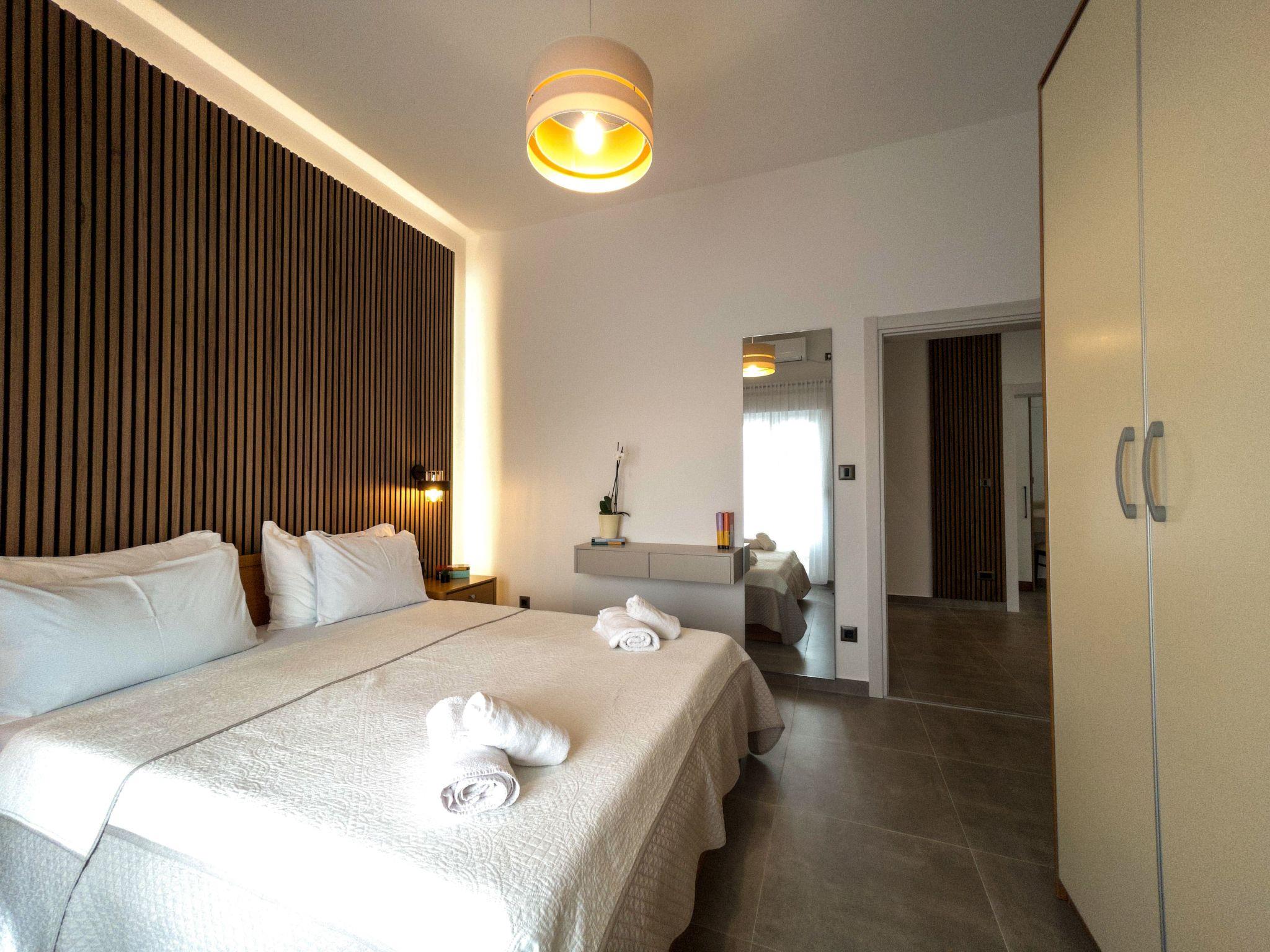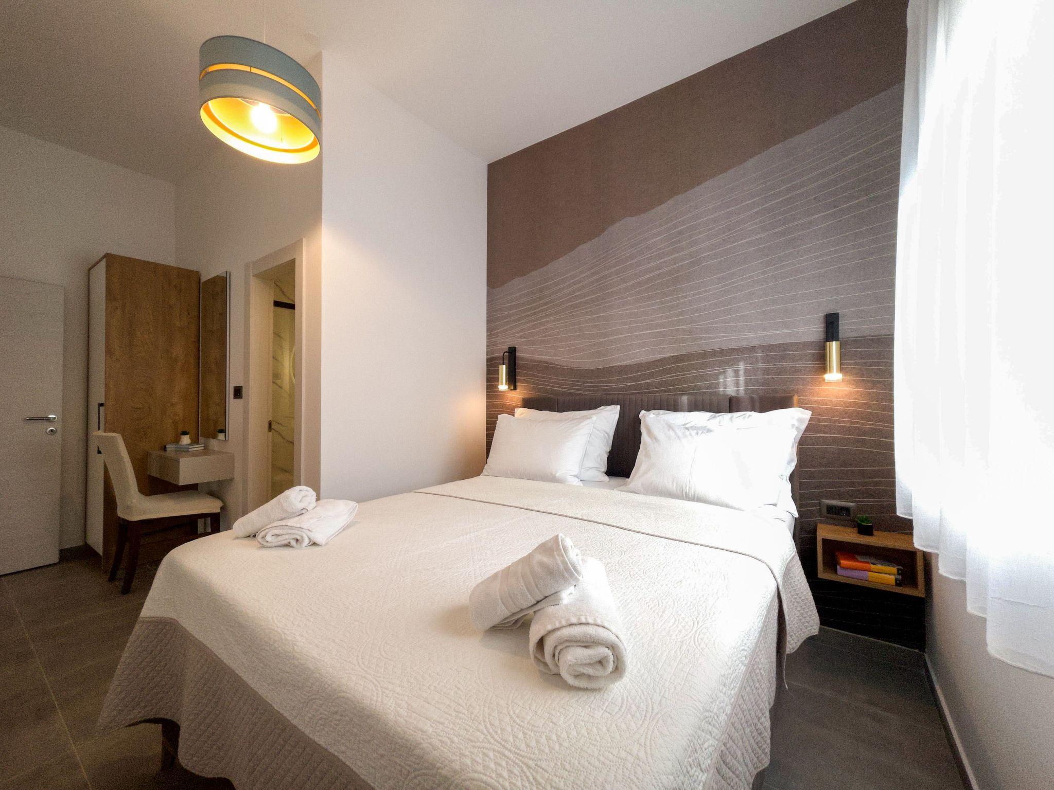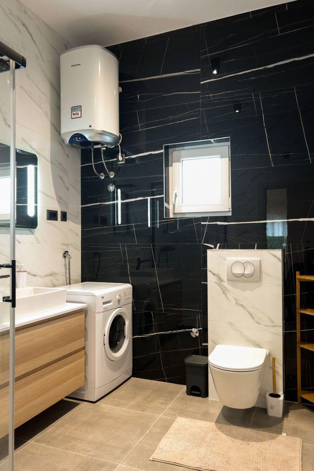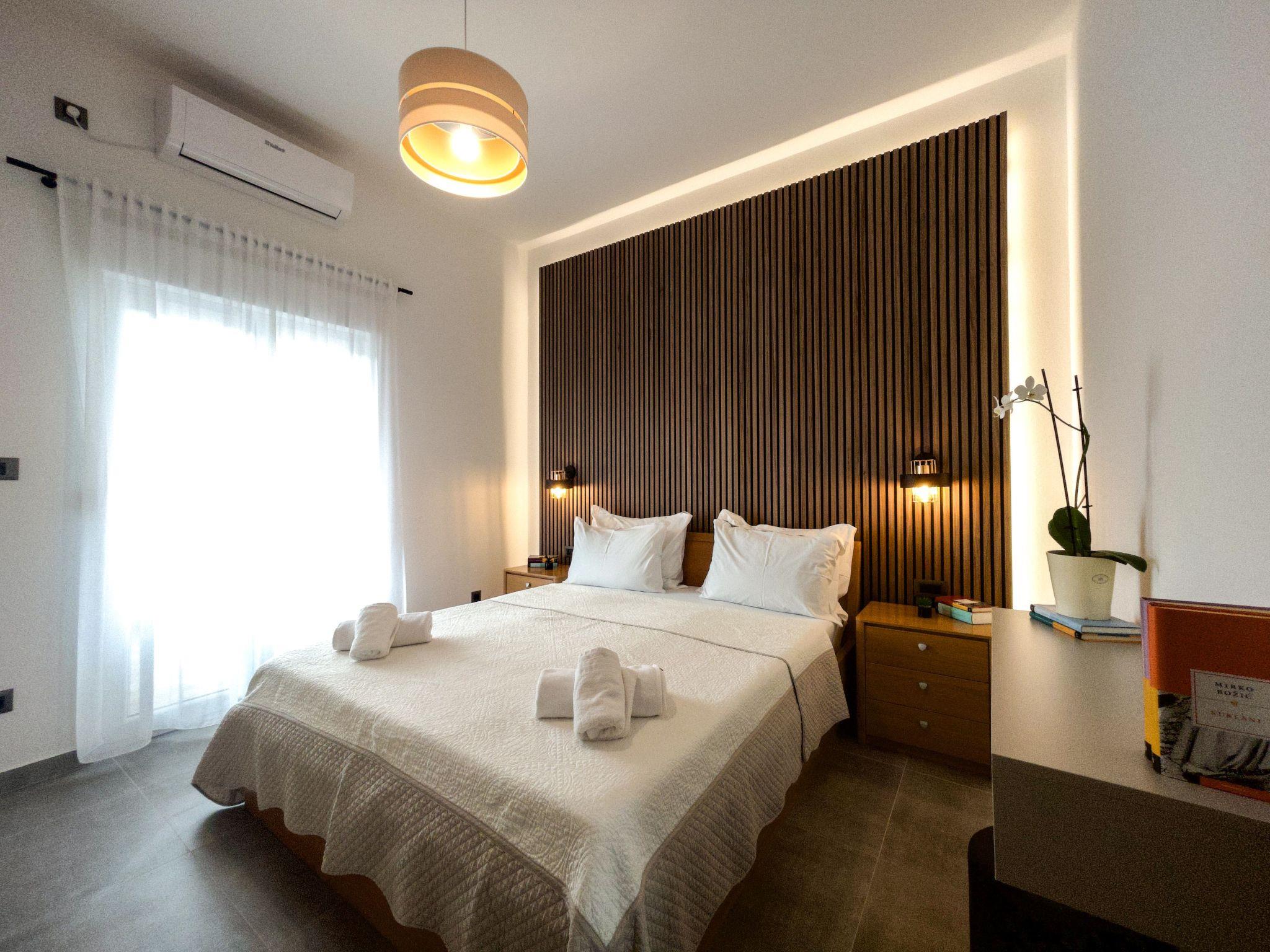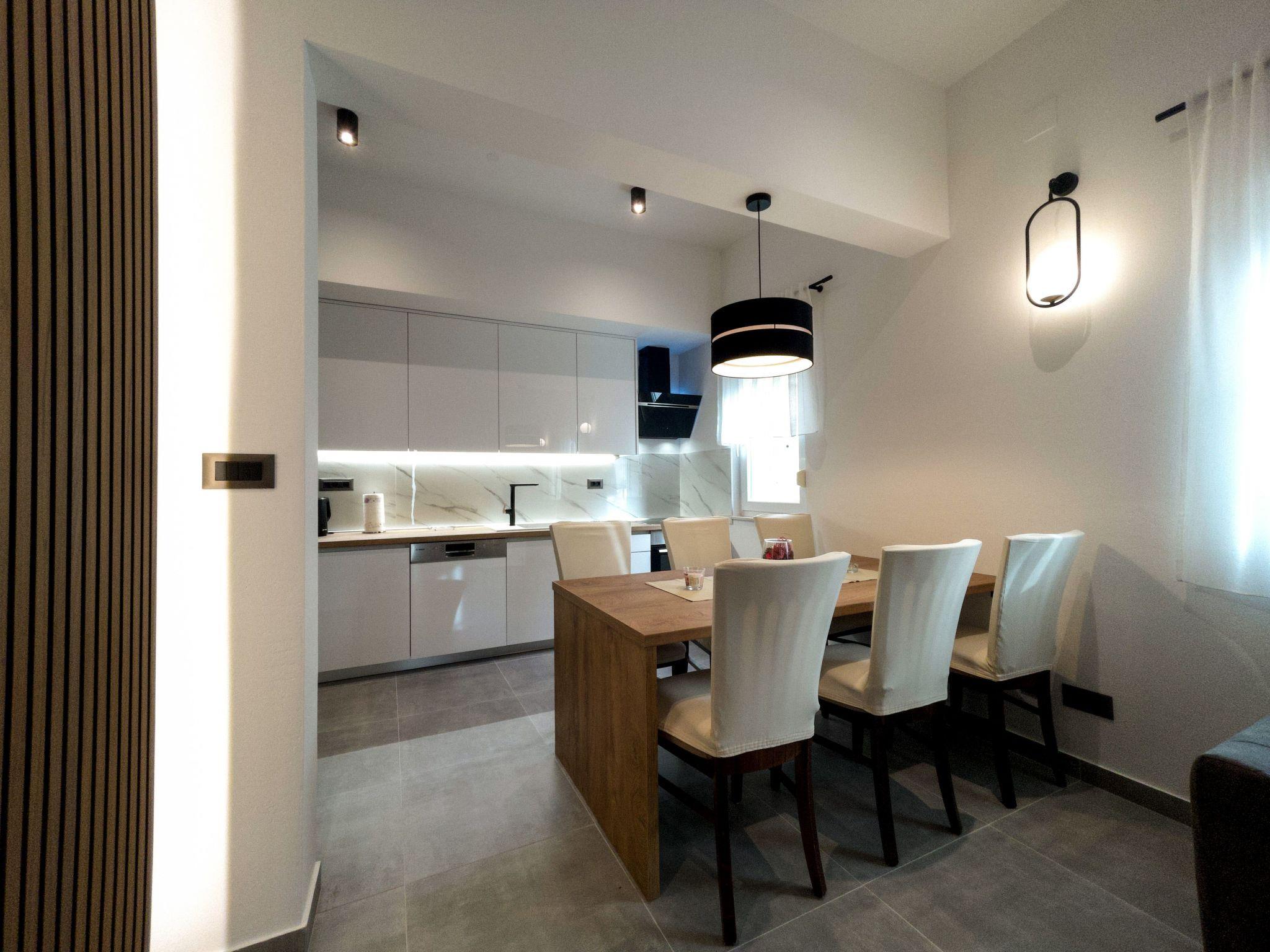 The modern renovate holiday apartment for 2024. season is on the ground floor and provides 85m² of living space with 20 m2 of terrace for up to six people. It has three bedrooms with a king size bed and two bathrooms. All bedrooms and living room have air contioner. The open kitchen is fully-equipped with a hob, oven, microwave, fridge with freezer compartment and dishwasher. It also has a big dining table with chairs. The living room has a flatscreen TV with satellite channels where you can enjoy your movies from comfortable sofa.