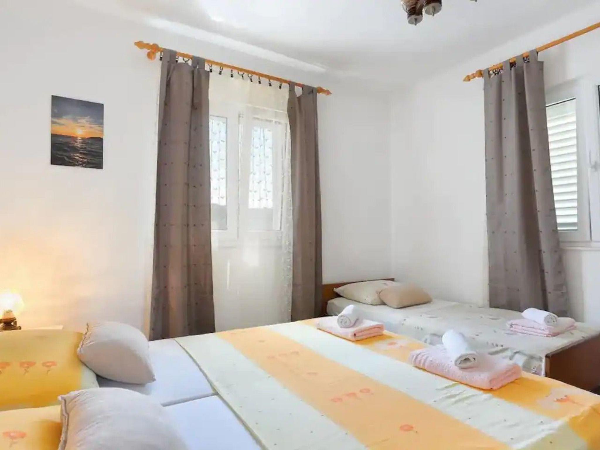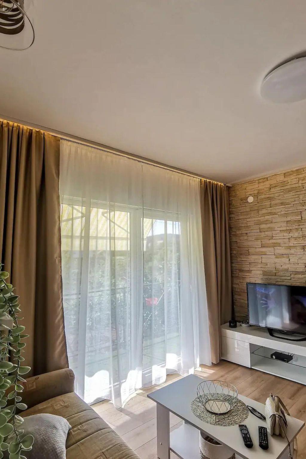 There is 1. floor and Ground floor ,1. floor is still in making so Ground floor is only being used for living. 2 Rooms .1. room(Double room, double bed , additional bed, carpet) 2. room(Triple bed , separate beds, carpet. table and chairs for every person , kitchen utensils, pots, cutlery, etc . provided, dish clothes, electric cooker and gas, number of rings: 4, oven, refrigerator and freezer, coffee machine, bathroom with toilet , shower+ extra 1 more toilet. dining room , living room and kitchen are one room ; one additional option for sleeping on the couch ; paved