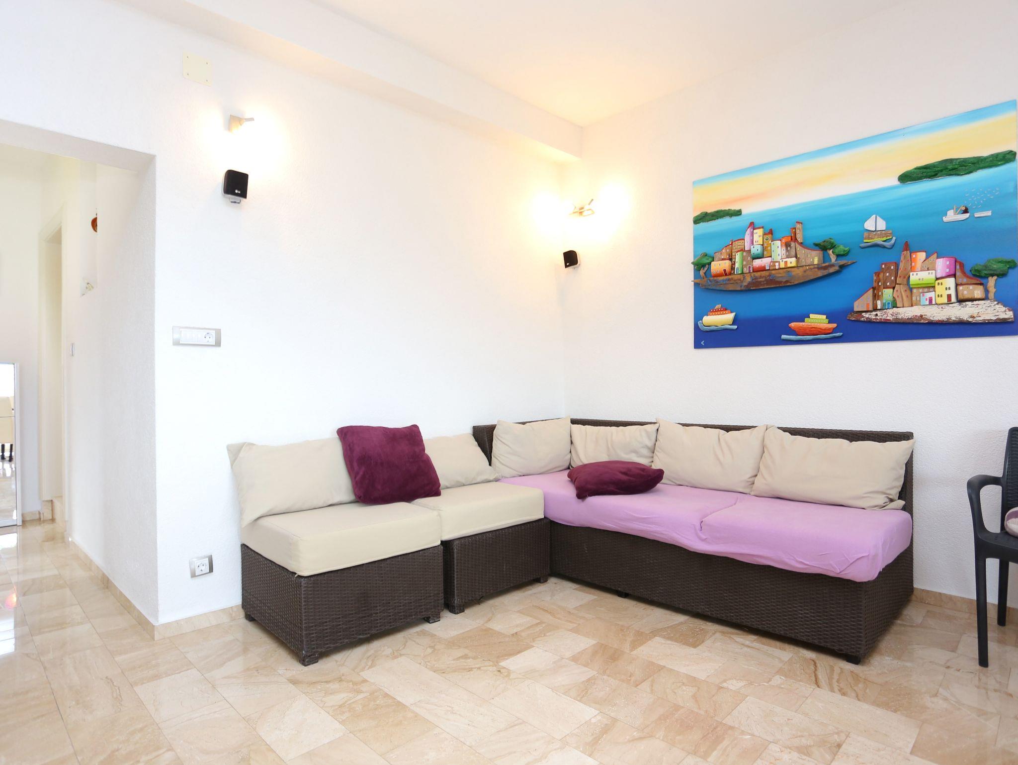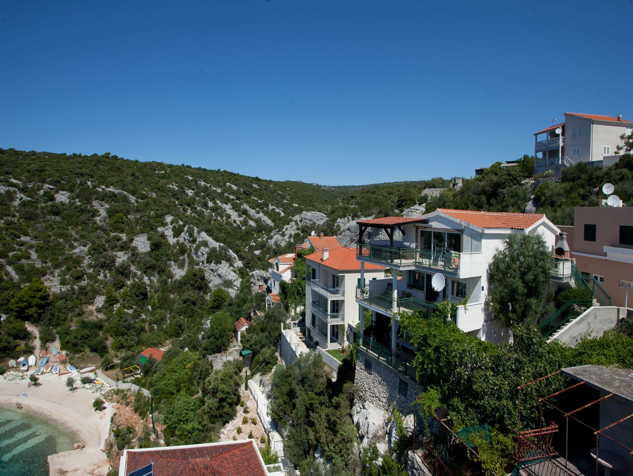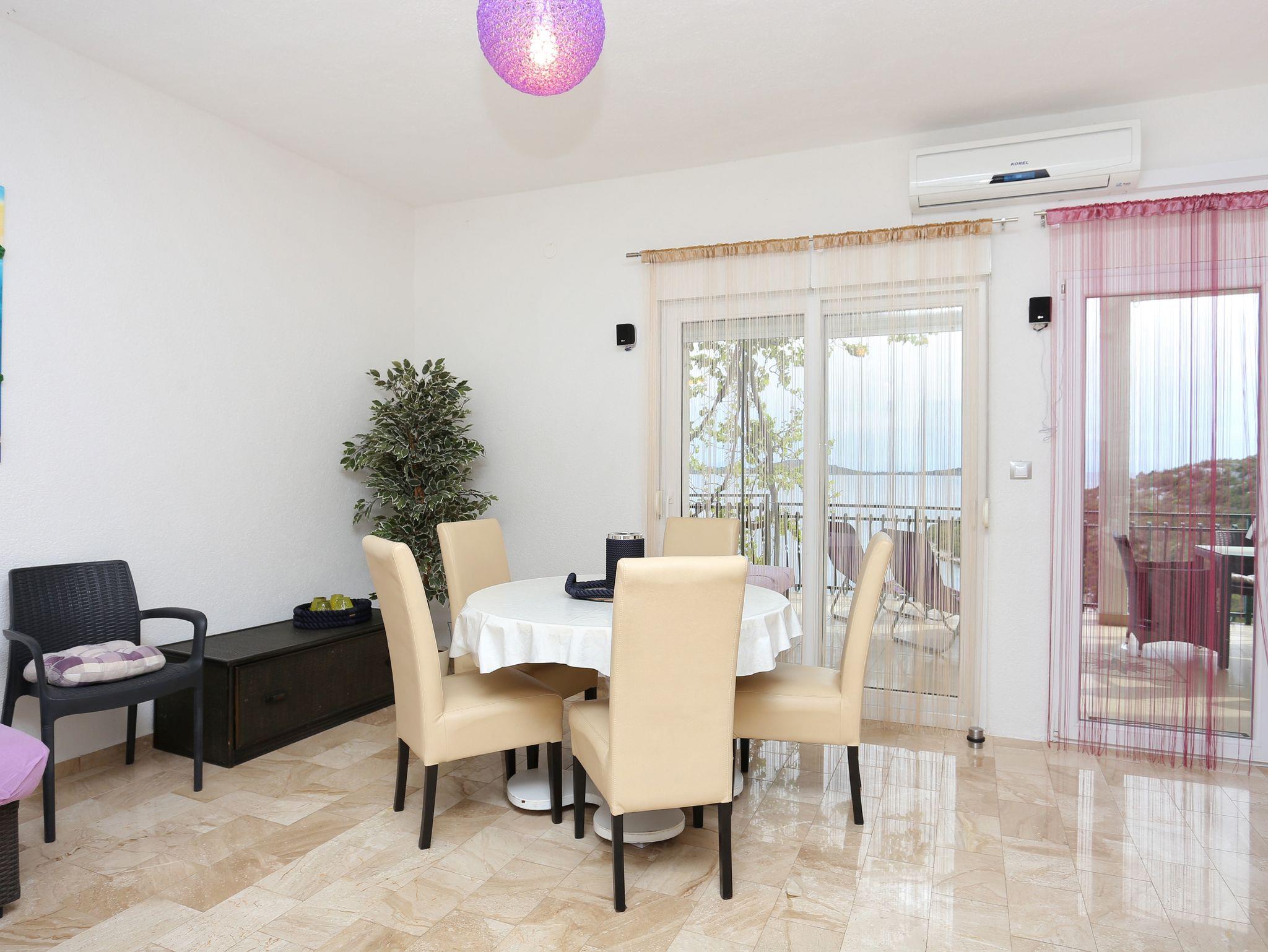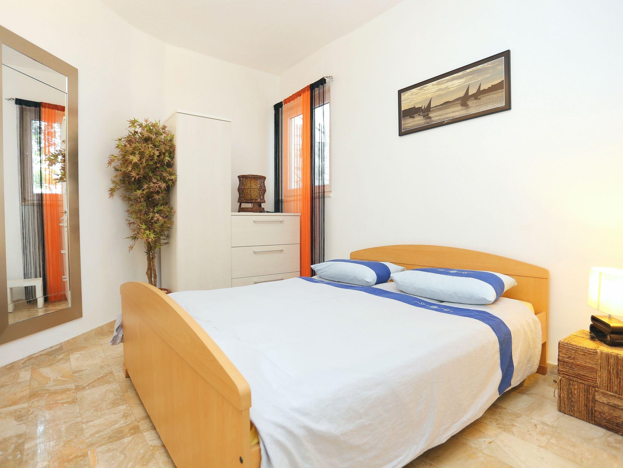 Ferienwohnung bietet Platz für 5 Gäste. Die Betten sind in Schlafzimmern, die es 2 gibt, und in Wohnzimmer, innerhalb einer Gesamtfläche von 61m2, angeordnet. Die Gäste haben eine eigene Terrasse zur Verfügung, auf der sie in warmen Sommernächten genießen können. Das Apartment bietet Meerblick. Für vollen Genuss und Entspannung gibt es einen privaten Grill für Gäste dieser Unterkunft. IM PREIS INBEGRIFFEN: Kurtaxe, Endreinigung, Klimatisierung, Parkplatz, Internet, Kinderbett, Bügeleisen, Bügelbrett, Föhn. UNVERBINDLICHE ZUSÄTZLICHE KOSTEN: Bootsanlegeplatz (20,00 € pro Nacht). Die Verfügbarkeit zusätzlicher Dienstleistungen in Ihrem reservierten Termin und die Preise derselben (falls nicht aufgeführt) müssen im Voraus überprüft werden. Zusätzliche Dienstleistungen die in der Zahlungsaufforderung nicht aufgeführt sind werden direkt beim Vermieter bezahlt, angenommen der Gast nutzt auch diese.