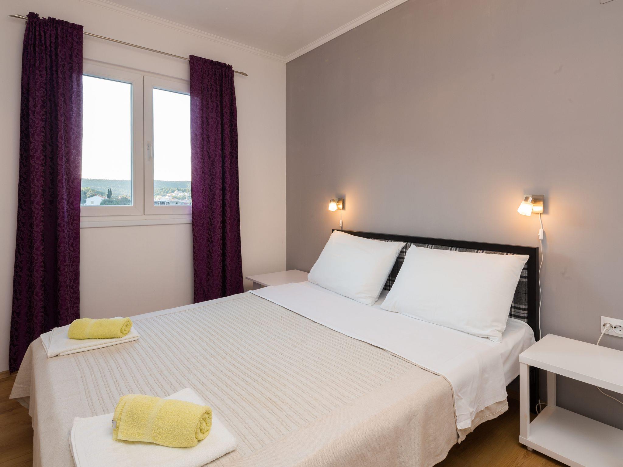 Ferienwohnung bietet Platz für 5 Gäste. Die Betten sind in Schlafzimmern, die es 2 gibt, und in Wohnzimmer, innerhalb einer Gesamtfläche von 57m2, angeordnet. Die Gäste haben eine eigene Terrasse zur Verfügung, auf der sie in warmen Sommernächten genießen können. Das Apartment bietet Meerblick. Es ist erlaubt, Speisen auf dem Gemeinschafts-Grill vorzubereiten. IM PREIS INBEGRIFFEN: Kurtaxe, Endreinigung, Klimatisierung, Parkplatz, Internet, Kinderbett, Bügeleisen, Bügelbrett, Föhn, Sonnenschirm, Liegestühle. VERBINDLICHE ZUSÄTZLICHE KOSTEN: Aufzahlung für Kurzaufenthalte (prozentualer Zuschlag pro Nächtigungsanzahl: 30% - 1, 20% - 2, 10% - 3). UNVERBINDLICHE ZUSÄTZLICHE KOSTEN: Wäschewaschen (10,00 € Waschen). Die Verfügbarkeit zusätzlicher Dienstleistungen in Ihrem reservierten Termin und die Preise derselben (falls nicht aufgeführt) müssen im Voraus überprüft werden. Zusätzliche Dienstleistungen die in der Zahlungsaufforderung nicht aufgeführt sind werden direkt beim Vermieter bezahlt, angenommen der Gast nutzt auch diese. Ermäßigung auf den Grundpreis: Gratistag 21=19 (bei einem Aufenthalt von 21 Tagen oder mehr erhalten Sie 2 Gratistage für den Aufenthalt bis 31.12.26).