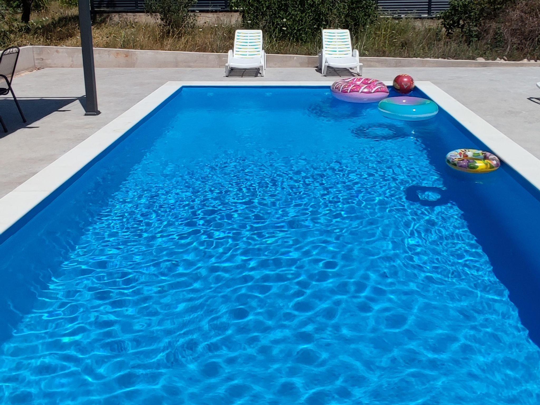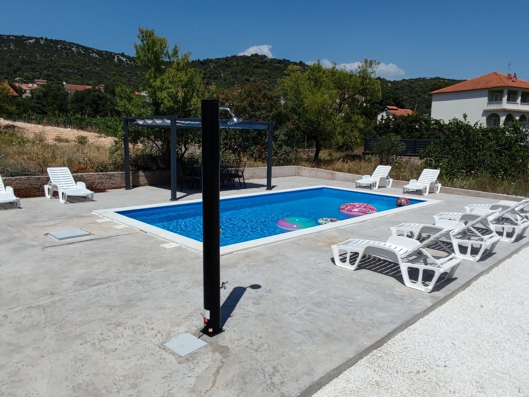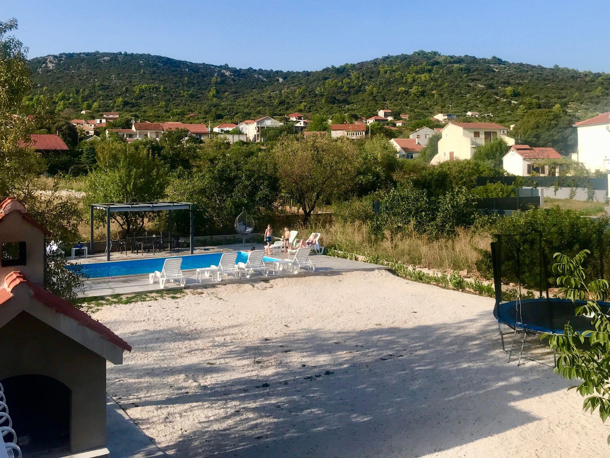 Umgebung des Objekts (Eingerichtet), Hof (2500m2, Kinderbereich, Sitzbereich), Parkplatz (Anzahl der Parkplätze: 10, Entfernung vom Objekt: im Hof), Pool: gemeinsam, Dimensionen: 8m x 4m x 1.2m, Wassertyp: Salzwasser, Heizung: Ja, Grill: gemeinsam, WiFi Internet, Bootsanlegeplatz (Entfernung vom Objekt: 270 m, Bootsanlegeplatztyp: an der Küste), Föhn, Bügeleisen, Bügelbrett, Tragbarer Grill, Kinderbett