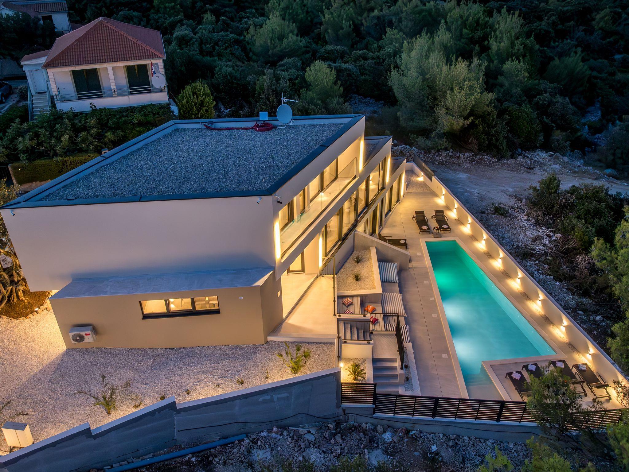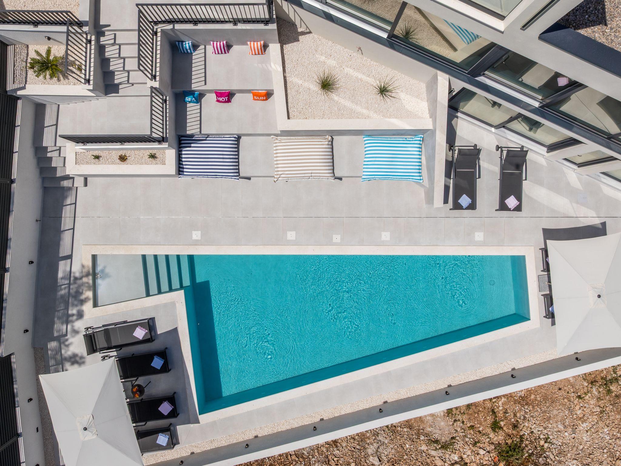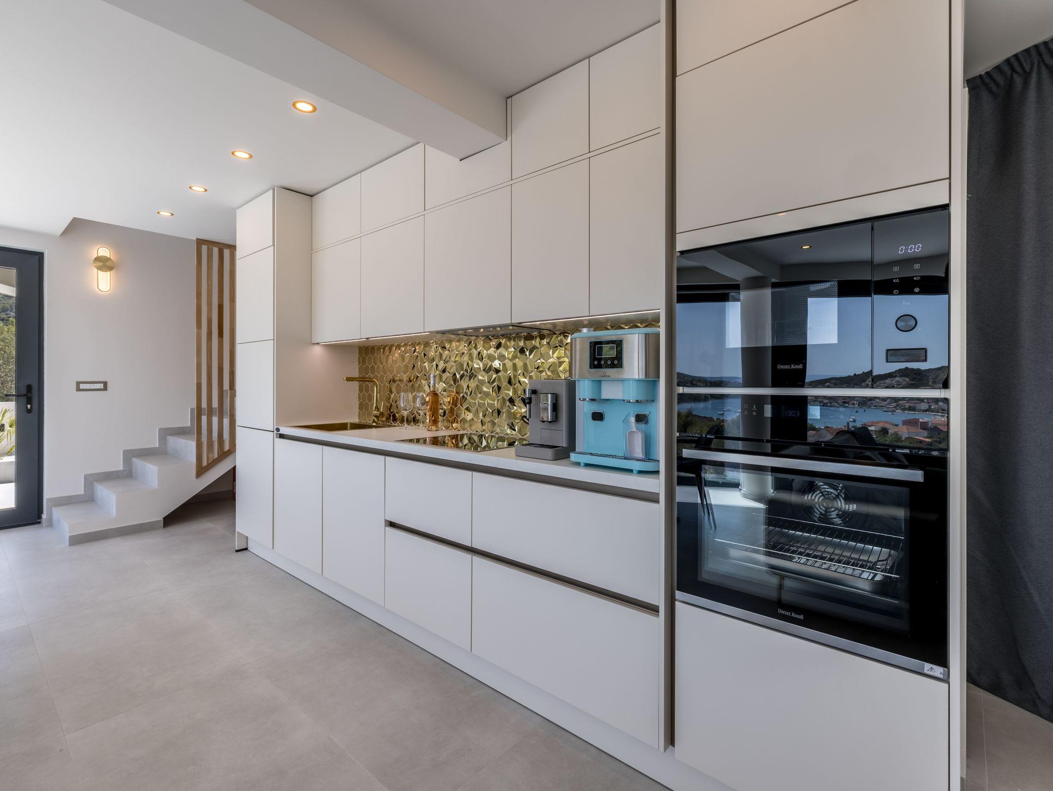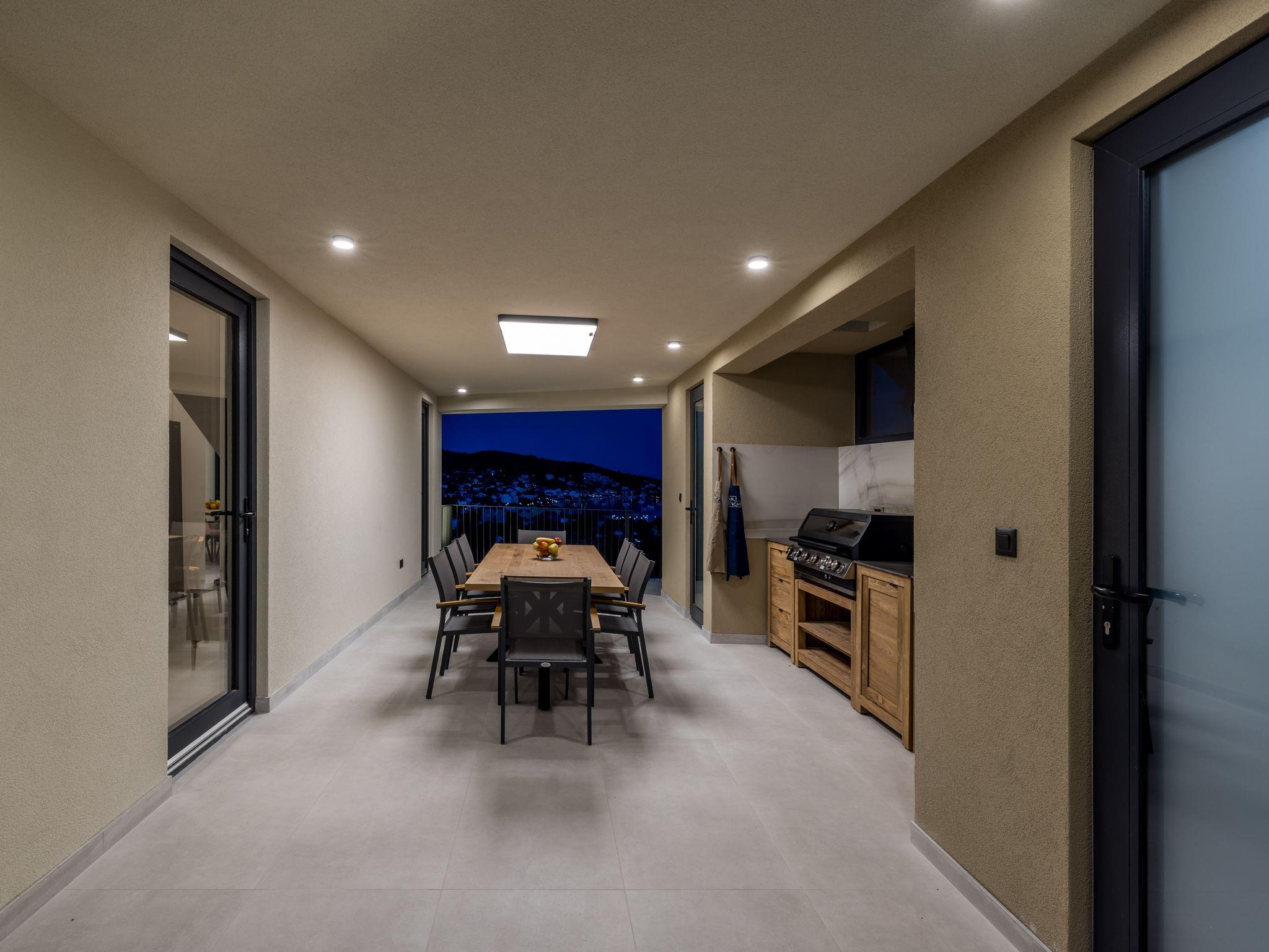 Haus bietet Platz für 8 Gäste. Die Betten sind in Schlafzimmern, die es 4 gibt, innerhalb einer Gesamtfläche von 145m2, angeordnet. Die Gäste haben eine eigene Terrasse zur Verfügung, auf der sie in warmen Sommernächten genießen können. Das Haus bietet Meerblick. Für vollen Genuss und Entspannung gibt es einen privaten Grill für Gäste dieser Unterkunft. Während ihres Aufenthalts können sich Gäste im privaten Schwimmbad entspannen. In der Unterkunftseinheit besteht die Möglichkeit des Mitbringens von Haustieren gegen Aufpreis. IM PREIS INBEGRIFFEN: Kurtaxe, Endreinigung, Klimatisierung, Pool, Parkplatz, Internet, Kinderbett, Bügeleisen, Bügelbrett, Föhn. UNVERBINDLICHE ZUSÄTZLICHE KOSTEN: Haustiere (20,00 € pro Nacht). Die Verfügbarkeit zusätzlicher Dienstleistungen in Ihrem reservierten Termin und die Preise derselben (falls nicht aufgeführt) müssen im Voraus überprüft werden. Zusätzliche Dienstleistungen die in der Zahlungsaufforderung nicht aufgeführt sind werden direkt beim Vermieter bezahlt, angenommen der Gast nutzt auch diese. Ermäßigung auf den Grundpreis: Gratistag 14=13 (bei einem Aufenthalt von 14 Tagen oder mehr erhalten Sie einen Gratistag für den Aufenthalt bis 31.12.26).