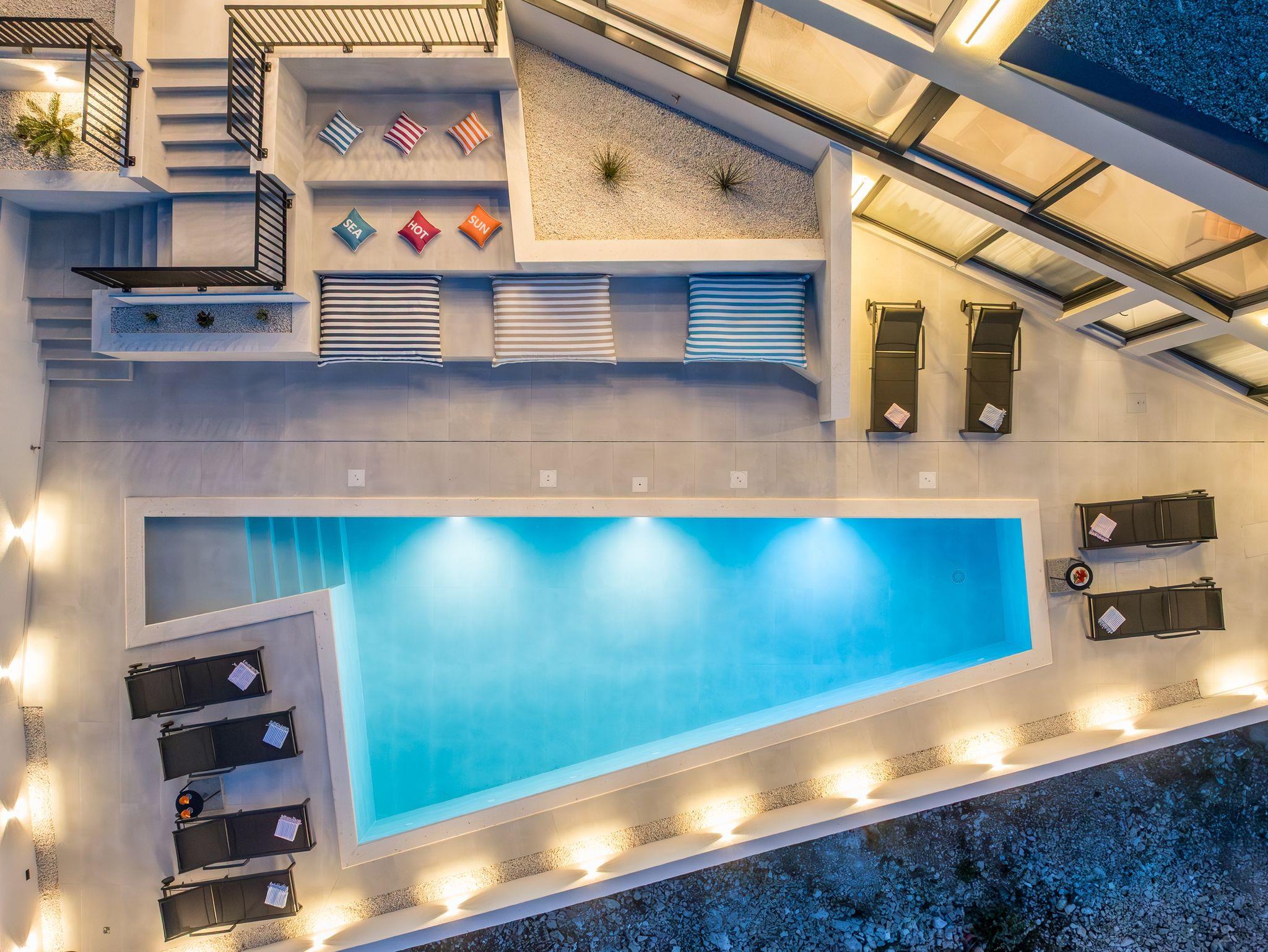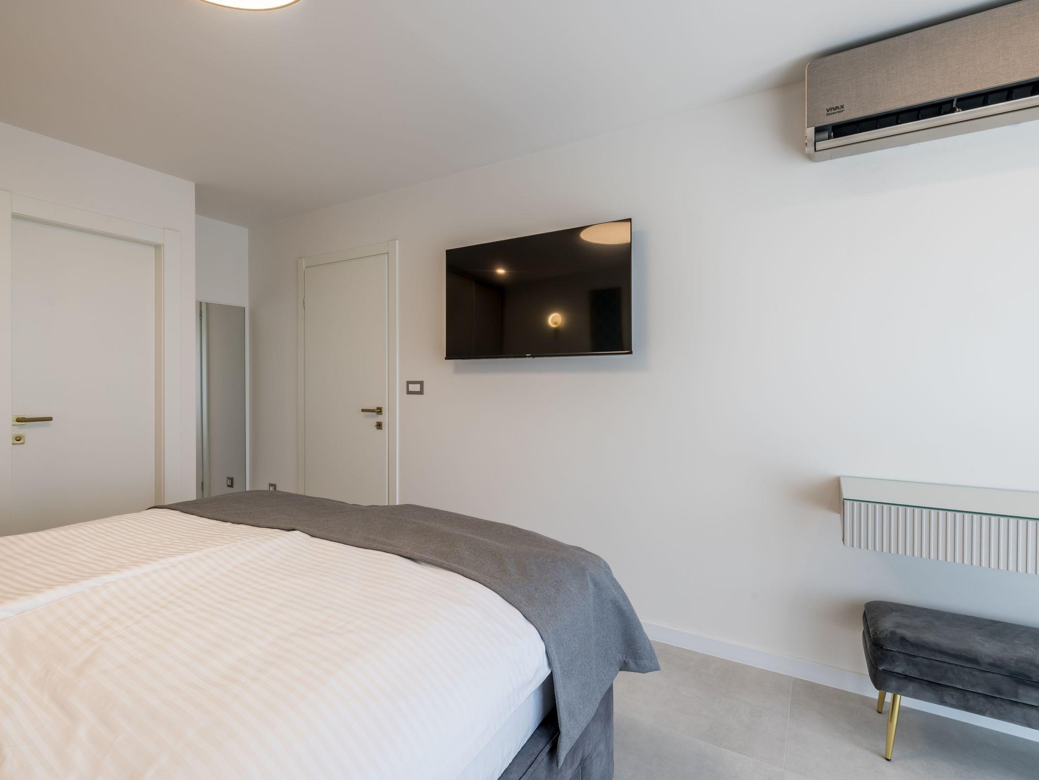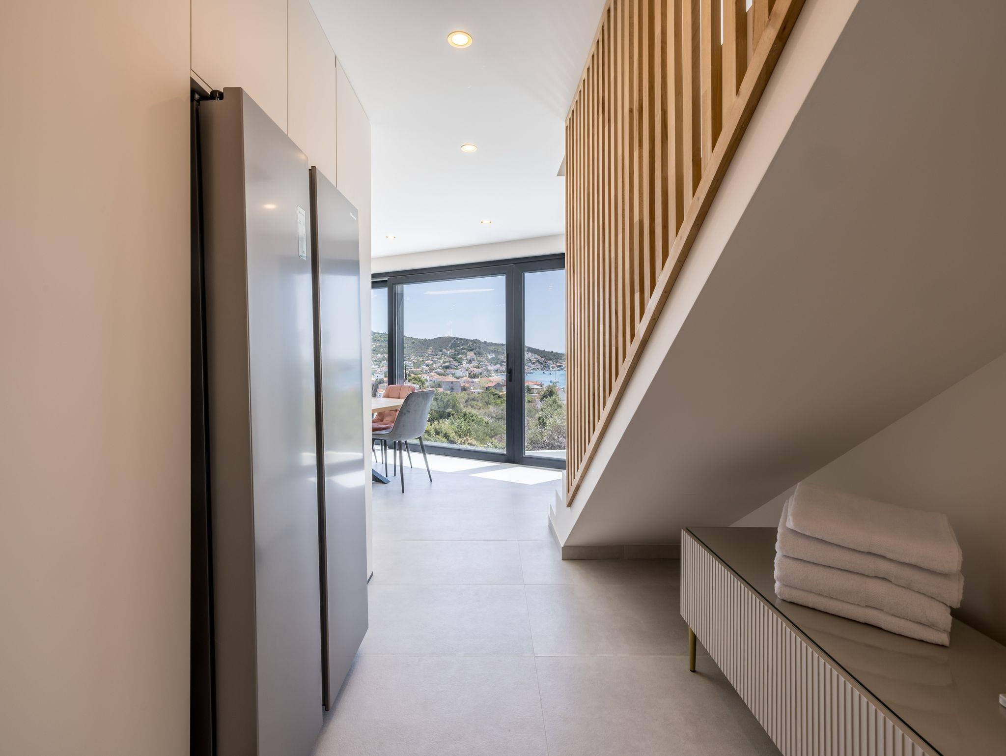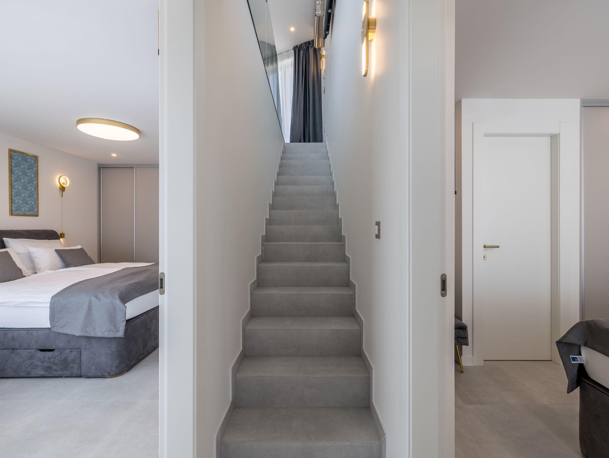 Haus bietet Platz für 8 Gäste. Die Betten sind in Schlafzimmern, die es 4 gibt, innerhalb einer Gesamtfläche von 145m2, angeordnet. Die Gäste haben eine eigene Terrasse zur Verfügung, auf der sie in warmen Sommernächten genießen können. Das Haus bietet Meerblick. Für vollen Genuss und Entspannung gibt es einen privaten Grill für Gäste dieser Unterkunft. Während ihres Aufenthalts können sich Gäste im privaten Schwimmbad entspannen. In der Unterkunftseinheit besteht die Möglichkeit des Mitbringens von Haustieren gegen Aufpreis. IM PREIS INBEGRIFFEN: Kurtaxe, Endreinigung, Klimatisierung, Pool, Parkplatz, Internet, Kinderbett, Bügeleisen, Bügelbrett, Föhn. UNVERBINDLICHE ZUSÄTZLICHE KOSTEN: Haustiere (20,00 € pro Nacht). Die Verfügbarkeit zusätzlicher Dienstleistungen in Ihrem reservierten Termin und die Preise derselben (falls nicht aufgeführt) müssen im Voraus überprüft werden. Zusätzliche Dienstleistungen die in der Zahlungsaufforderung nicht aufgeführt sind werden direkt beim Vermieter bezahlt, angenommen der Gast nutzt auch diese. Ermäßigung auf den Grundpreis: Gratistag 14=13 (bei einem Aufenthalt von 14 Tagen oder mehr erhalten Sie einen Gratistag für den Aufenthalt bis 31.12.26).