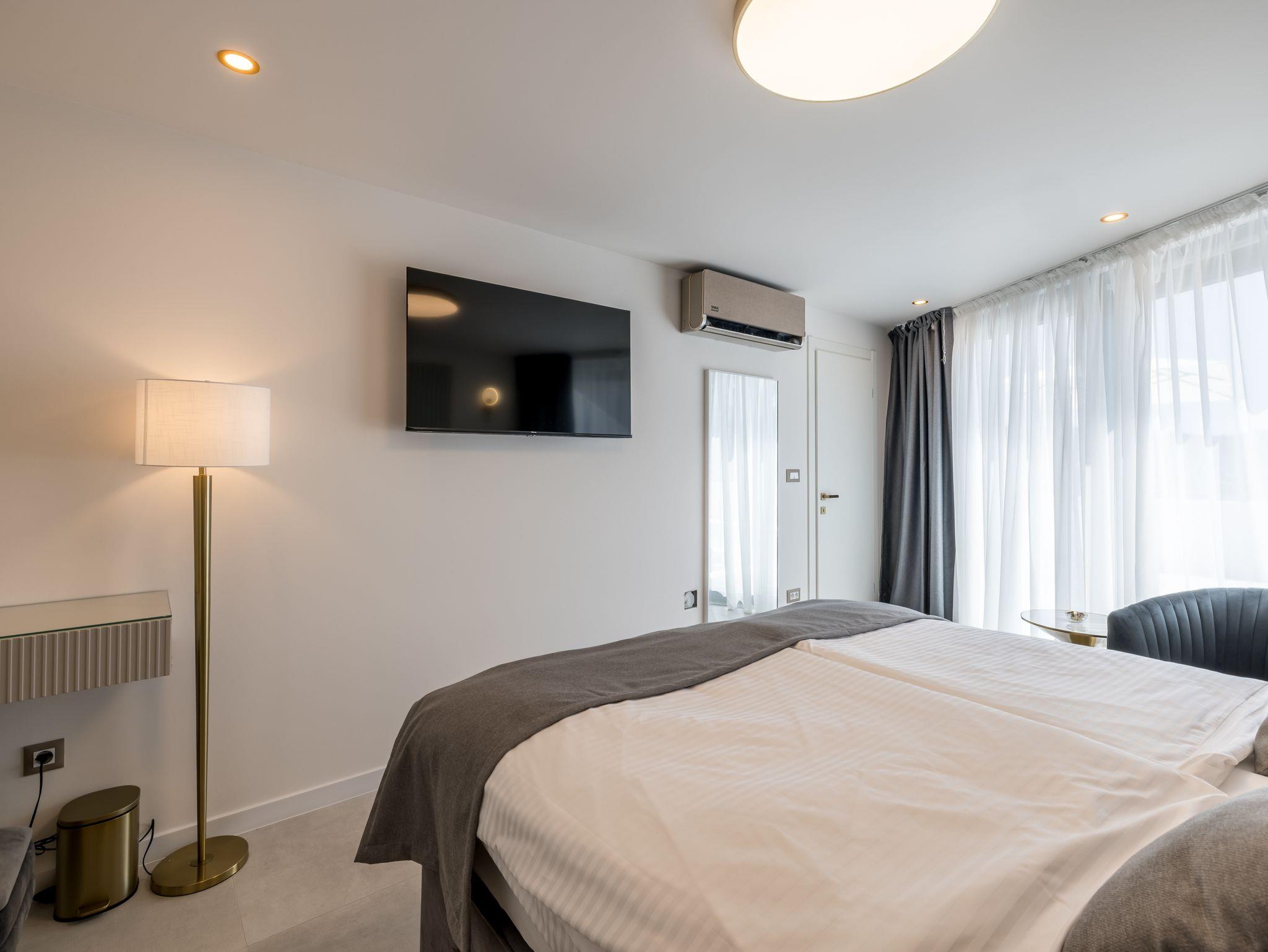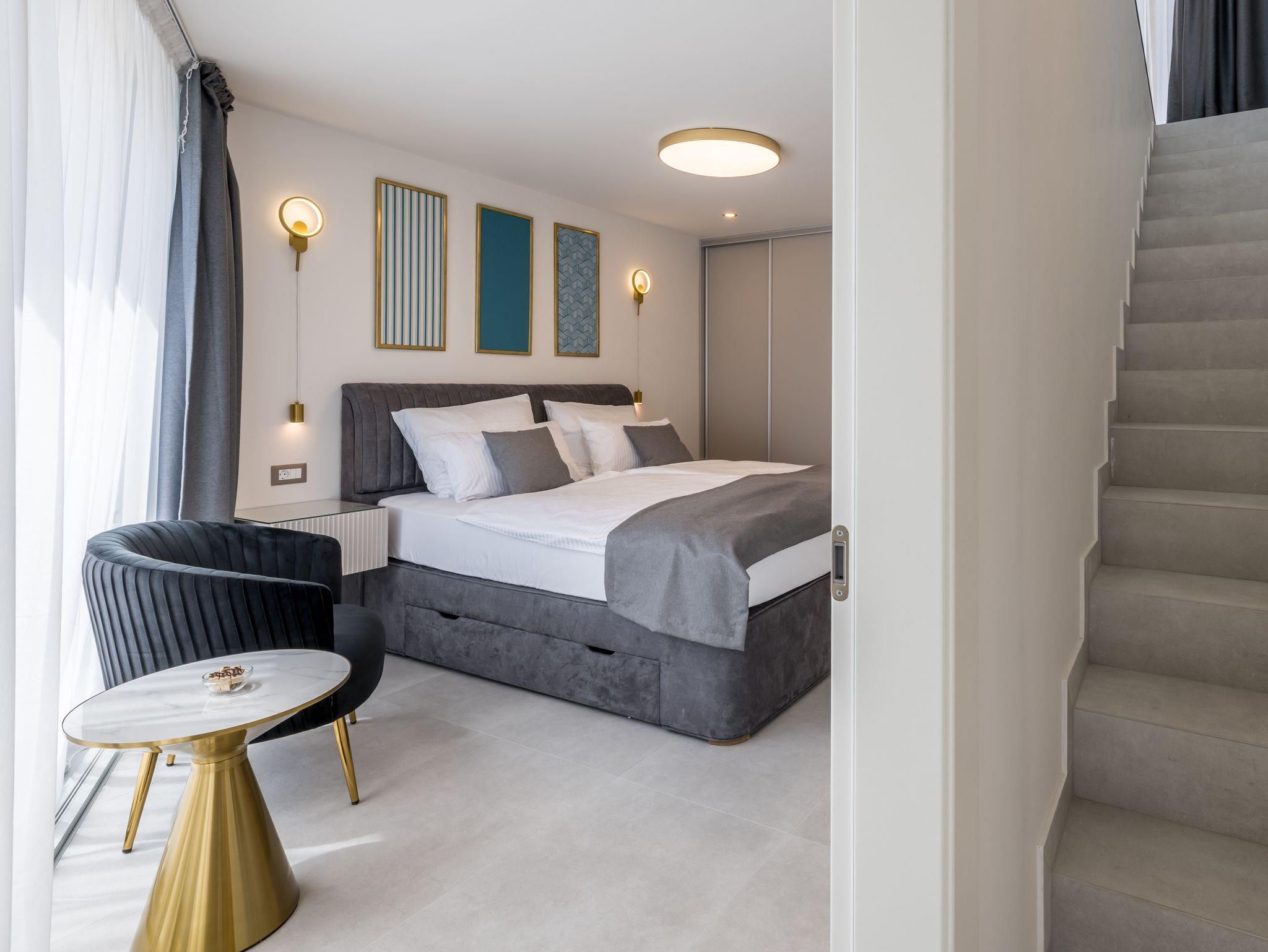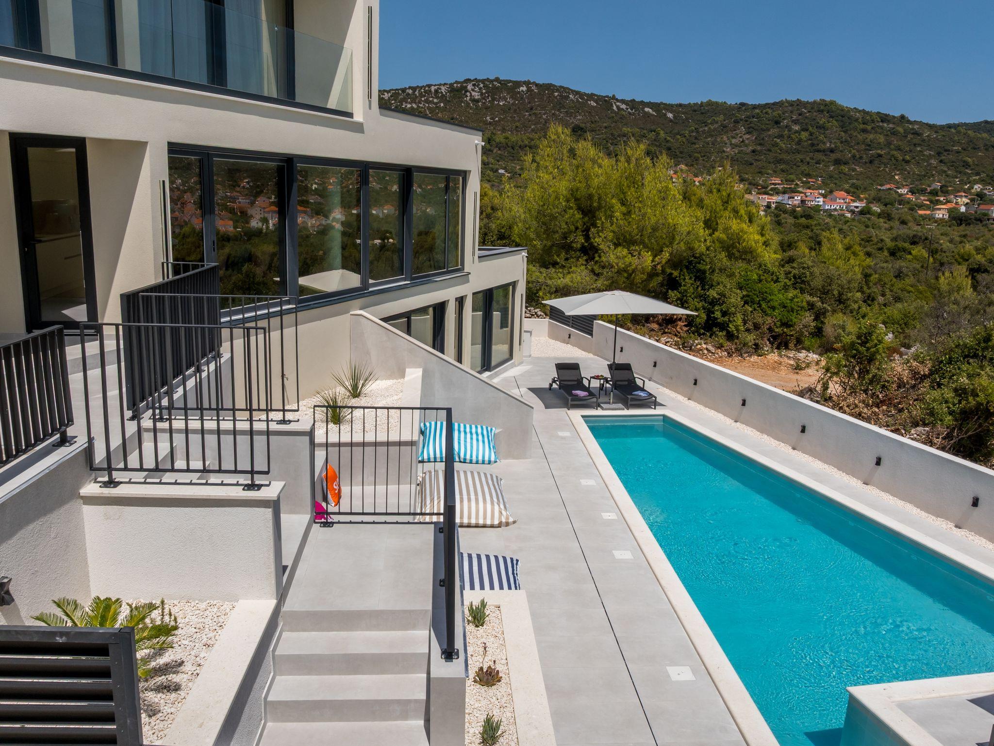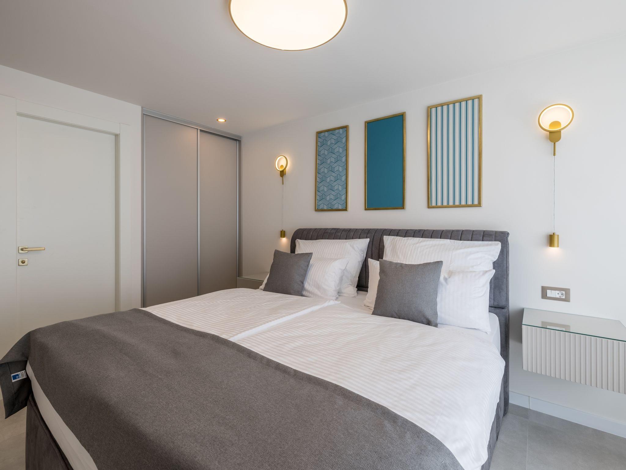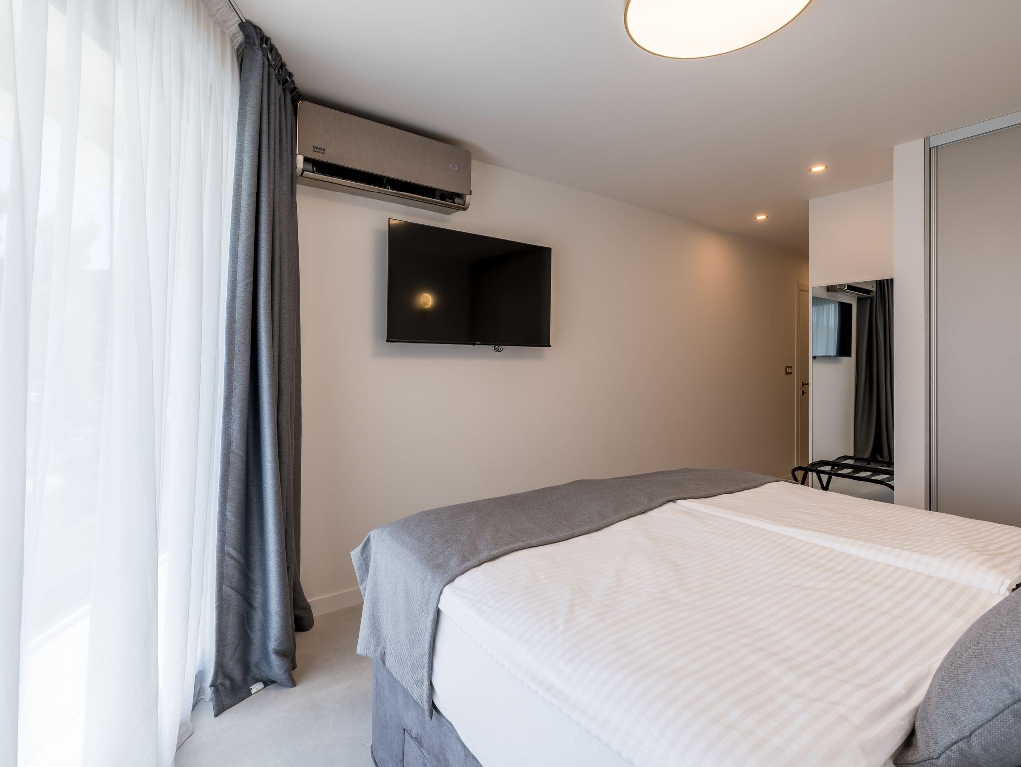 Haus bietet Platz für 8 Gäste. Die Betten sind in Schlafzimmern, die es 4 gibt, innerhalb einer Gesamtfläche von 145m2, angeordnet. Die Gäste haben eine eigene Terrasse zur Verfügung, auf der sie in warmen Sommernächten genießen können. Das Haus bietet Meerblick. Für vollen Genuss und Entspannung gibt es einen privaten Grill für Gäste dieser Unterkunft. Während ihres Aufenthalts können sich Gäste im privaten Schwimmbad entspannen. In der Unterkunftseinheit besteht die Möglichkeit des Mitbringens von Haustieren gegen Aufpreis. IM PREIS INBEGRIFFEN: Kurtaxe, Endreinigung, Klimatisierung, Pool, Parkplatz, Internet, Kinderbett, Bügeleisen, Bügelbrett, Föhn. UNVERBINDLICHE ZUSÄTZLICHE KOSTEN: Haustiere (20,00 € pro Nacht). Die Verfügbarkeit zusätzlicher Dienstleistungen in Ihrem reservierten Termin und die Preise derselben (falls nicht aufgeführt) müssen im Voraus überprüft werden. Zusätzliche Dienstleistungen die in der Zahlungsaufforderung nicht aufgeführt sind werden direkt beim Vermieter bezahlt, angenommen der Gast nutzt auch diese. Ermäßigung auf den Grundpreis: Gratistag 14=13 (bei einem Aufenthalt von 14 Tagen oder mehr erhalten Sie einen Gratistag für den Aufenthalt bis 31.12.26).