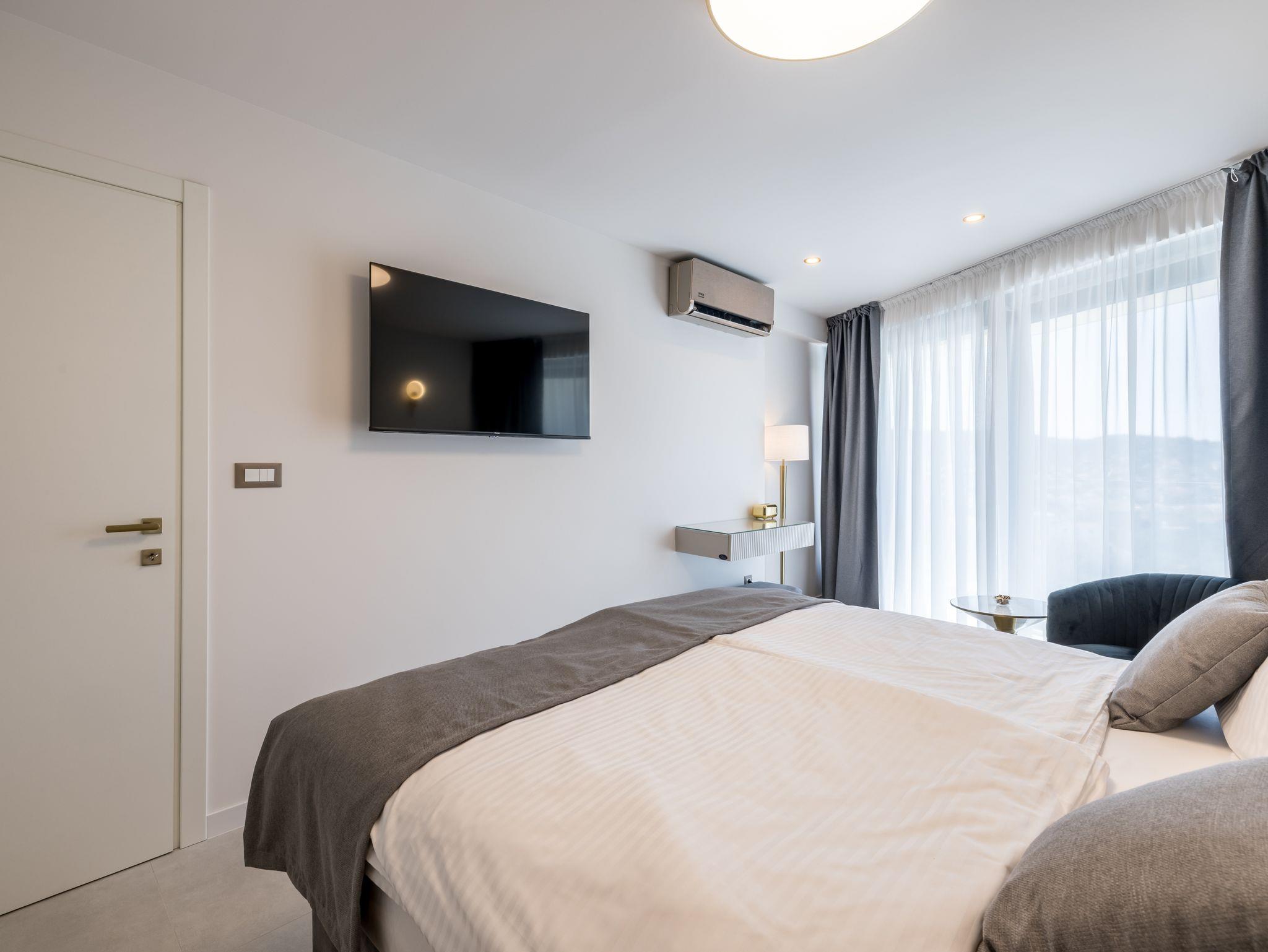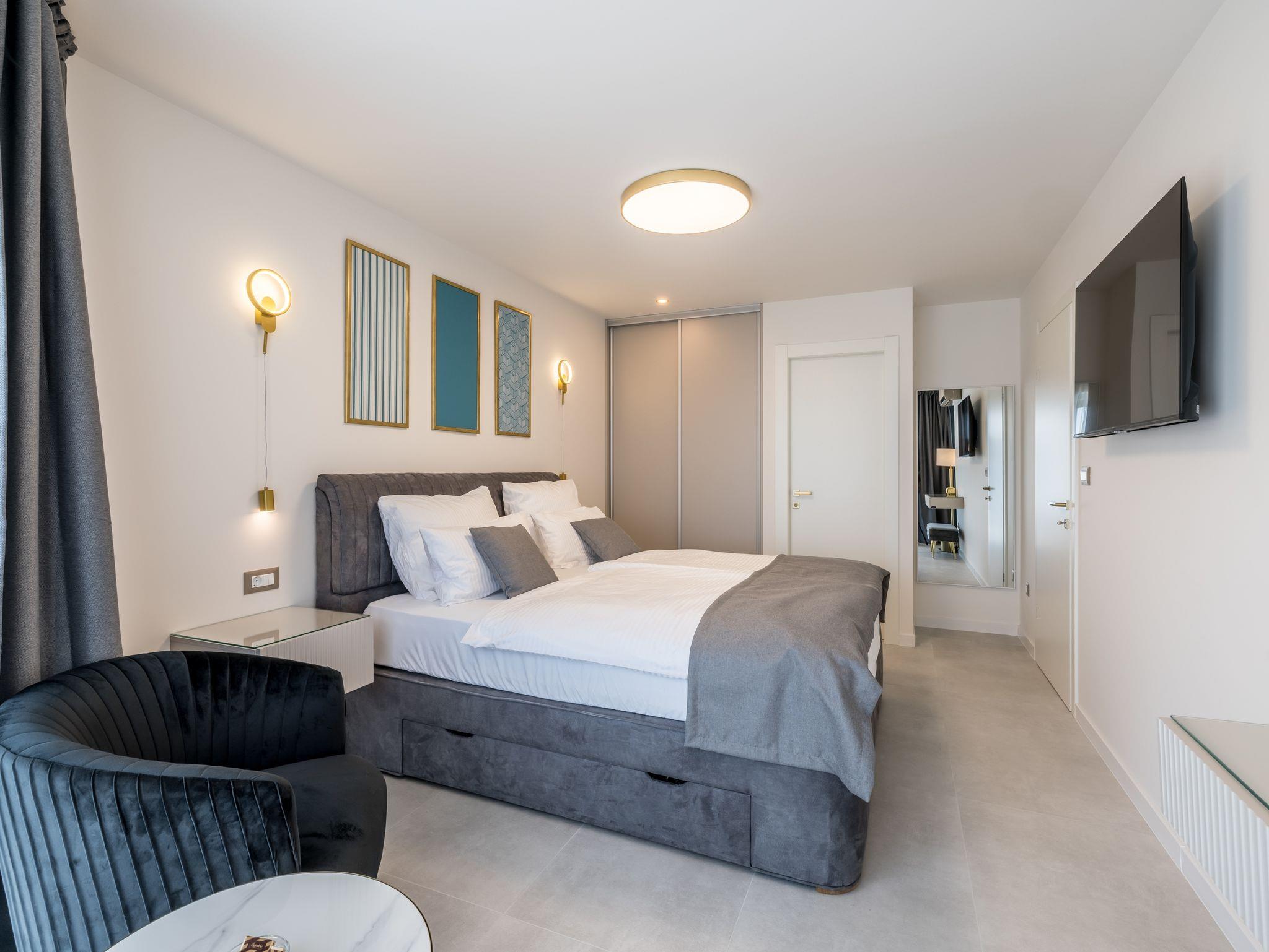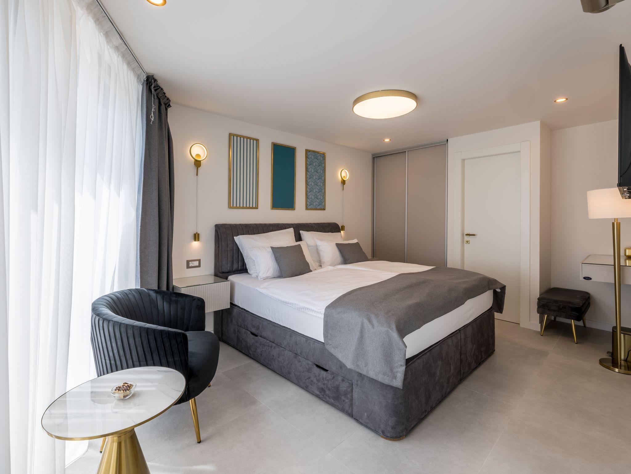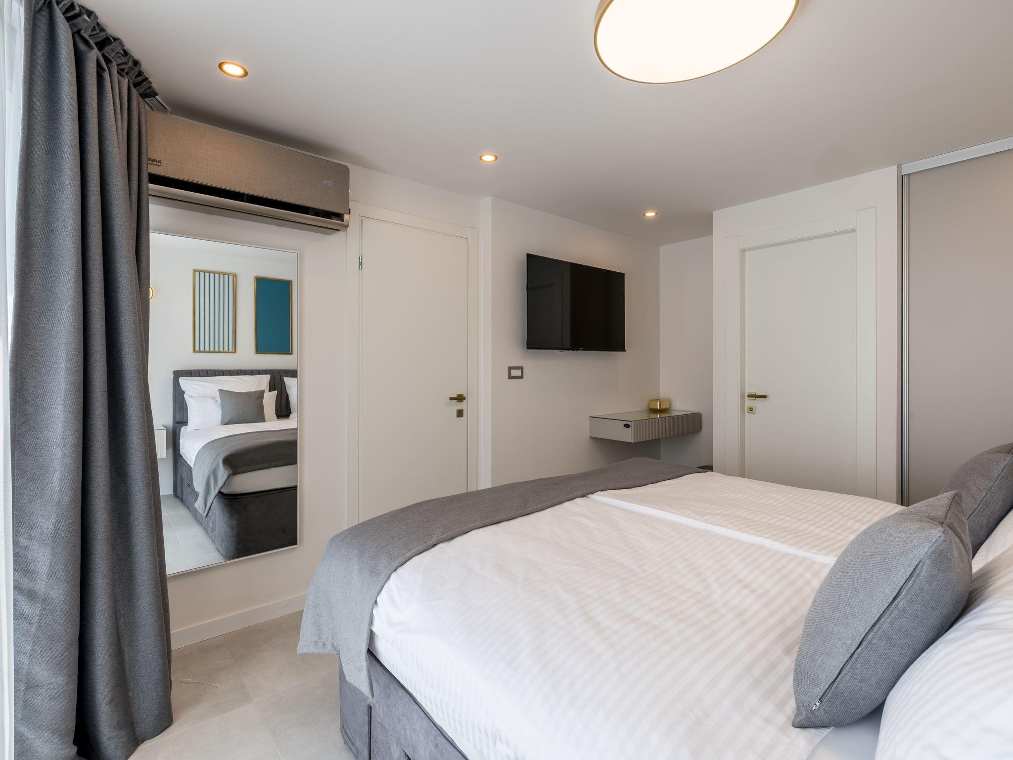 Haus bietet Platz für 8 Gäste. Die Betten sind in Schlafzimmern, die es 4 gibt, innerhalb einer Gesamtfläche von 145m2, angeordnet. Die Gäste haben eine eigene Terrasse zur Verfügung, auf der sie in warmen Sommernächten genießen können. Das Haus bietet Meerblick. Für vollen Genuss und Entspannung gibt es einen privaten Grill für Gäste dieser Unterkunft. Während ihres Aufenthalts können sich Gäste im privaten Schwimmbad entspannen. In der Unterkunftseinheit besteht die Möglichkeit des Mitbringens von Haustieren gegen Aufpreis. IM PREIS INBEGRIFFEN: Kurtaxe, Endreinigung, Klimatisierung, Pool, Parkplatz, Internet, Kinderbett, Bügeleisen, Bügelbrett, Föhn. UNVERBINDLICHE ZUSÄTZLICHE KOSTEN: Haustiere (20,00 € pro Nacht). Die Verfügbarkeit zusätzlicher Dienstleistungen in Ihrem reservierten Termin und die Preise derselben (falls nicht aufgeführt) müssen im Voraus überprüft werden. Zusätzliche Dienstleistungen die in der Zahlungsaufforderung nicht aufgeführt sind werden direkt beim Vermieter bezahlt, angenommen der Gast nutzt auch diese. Ermäßigung auf den Grundpreis: Gratistag 14=13 (bei einem Aufenthalt von 14 Tagen oder mehr erhalten Sie einen Gratistag für den Aufenthalt bis 31.12.26).