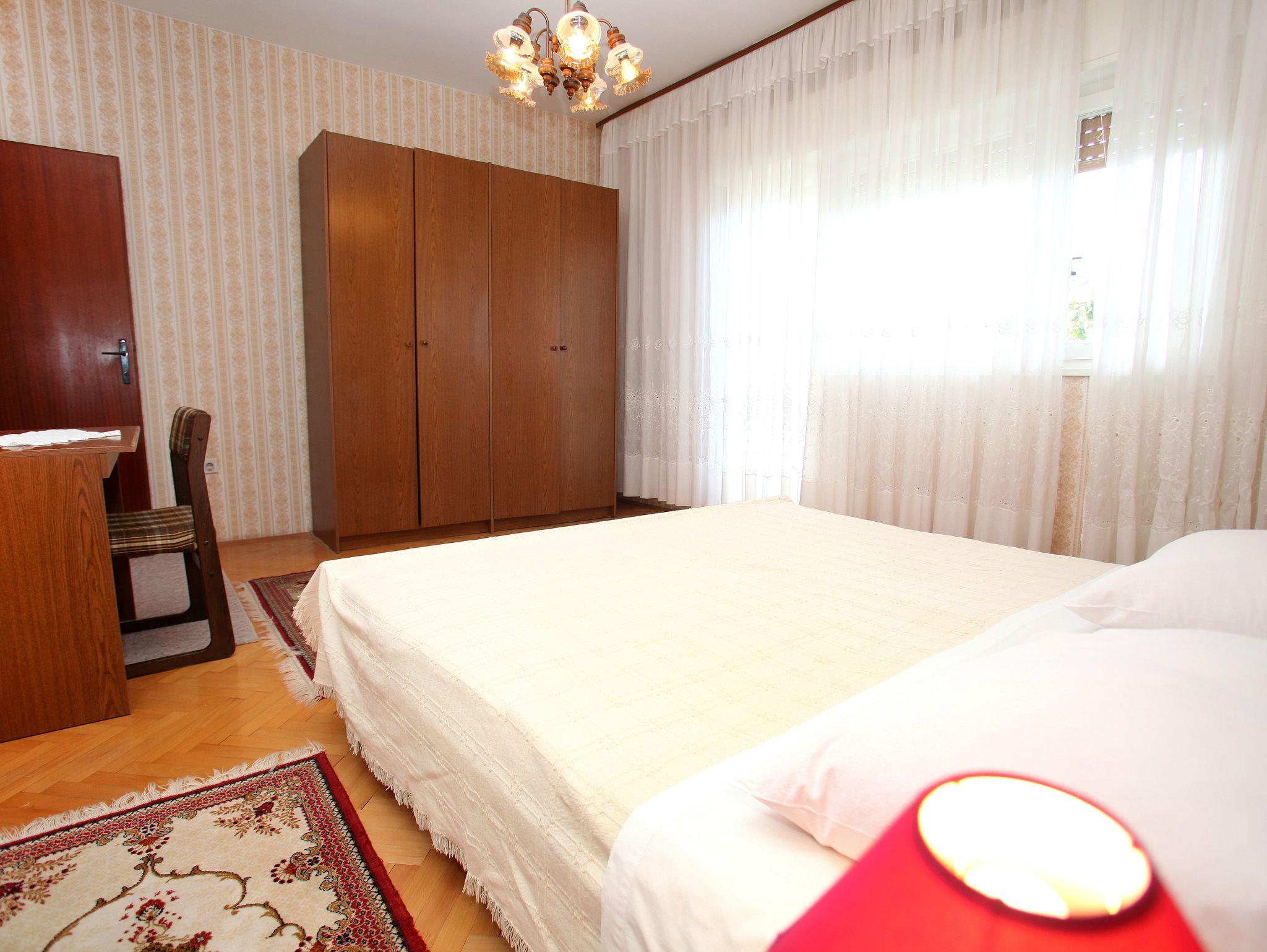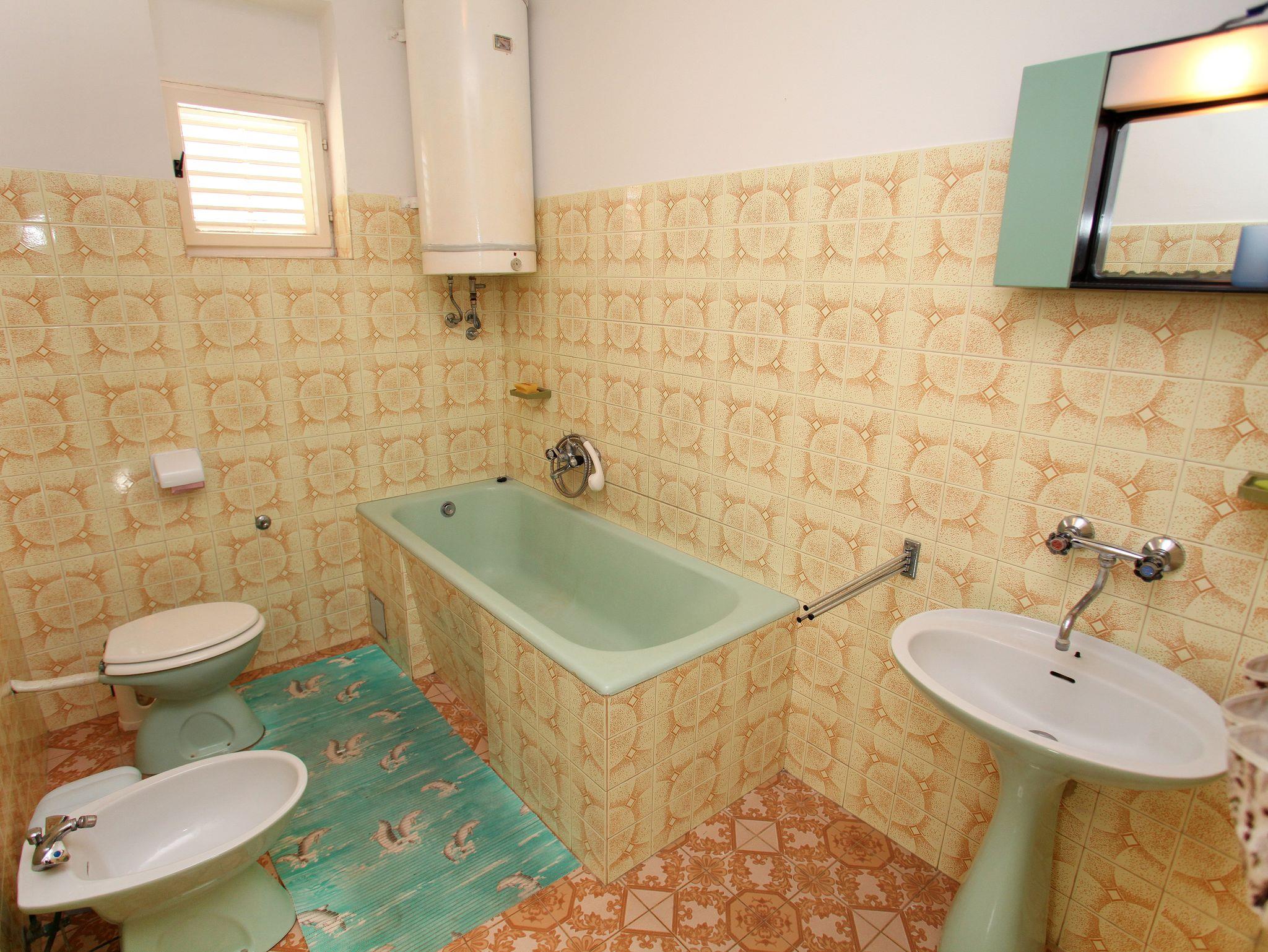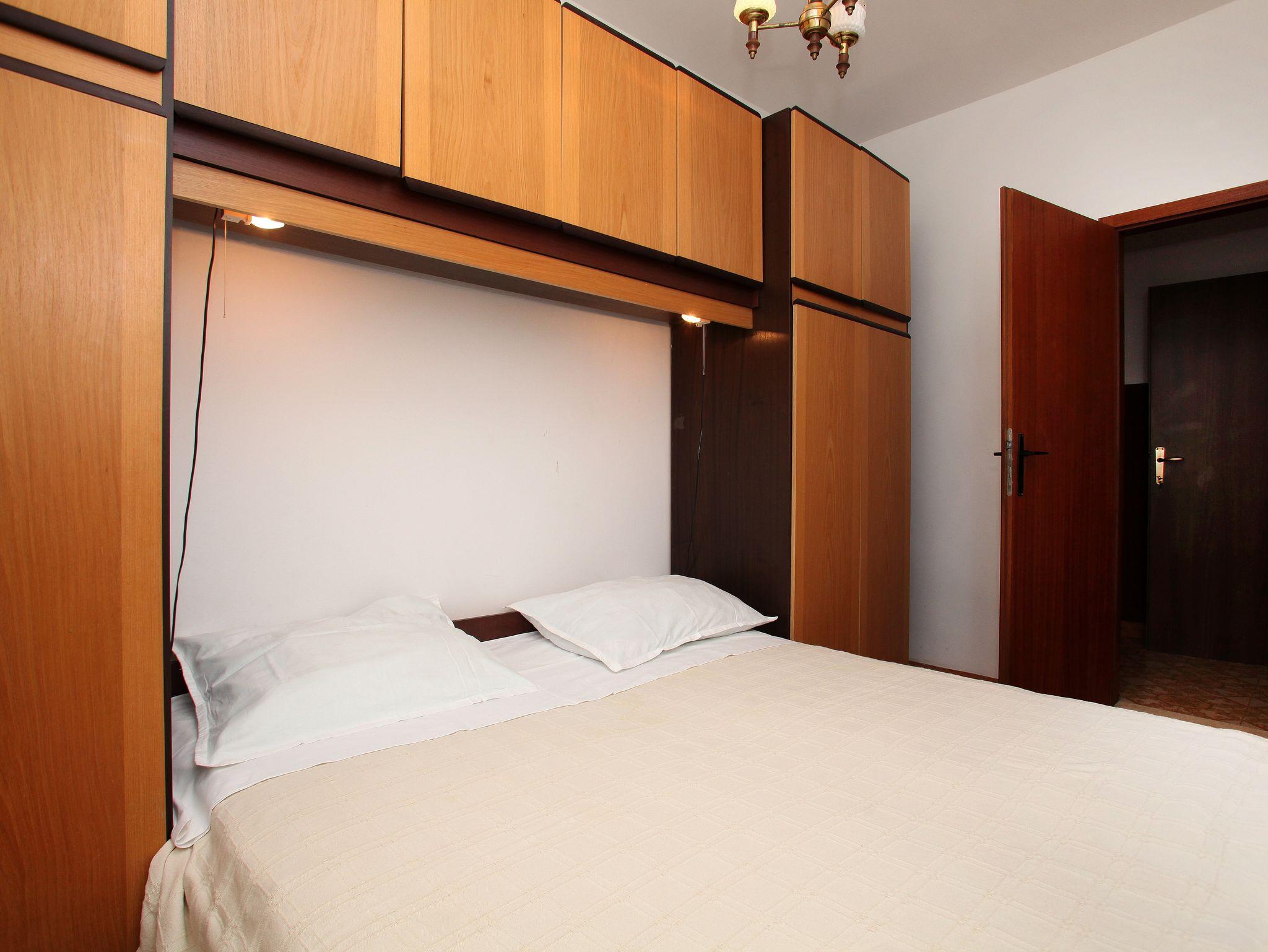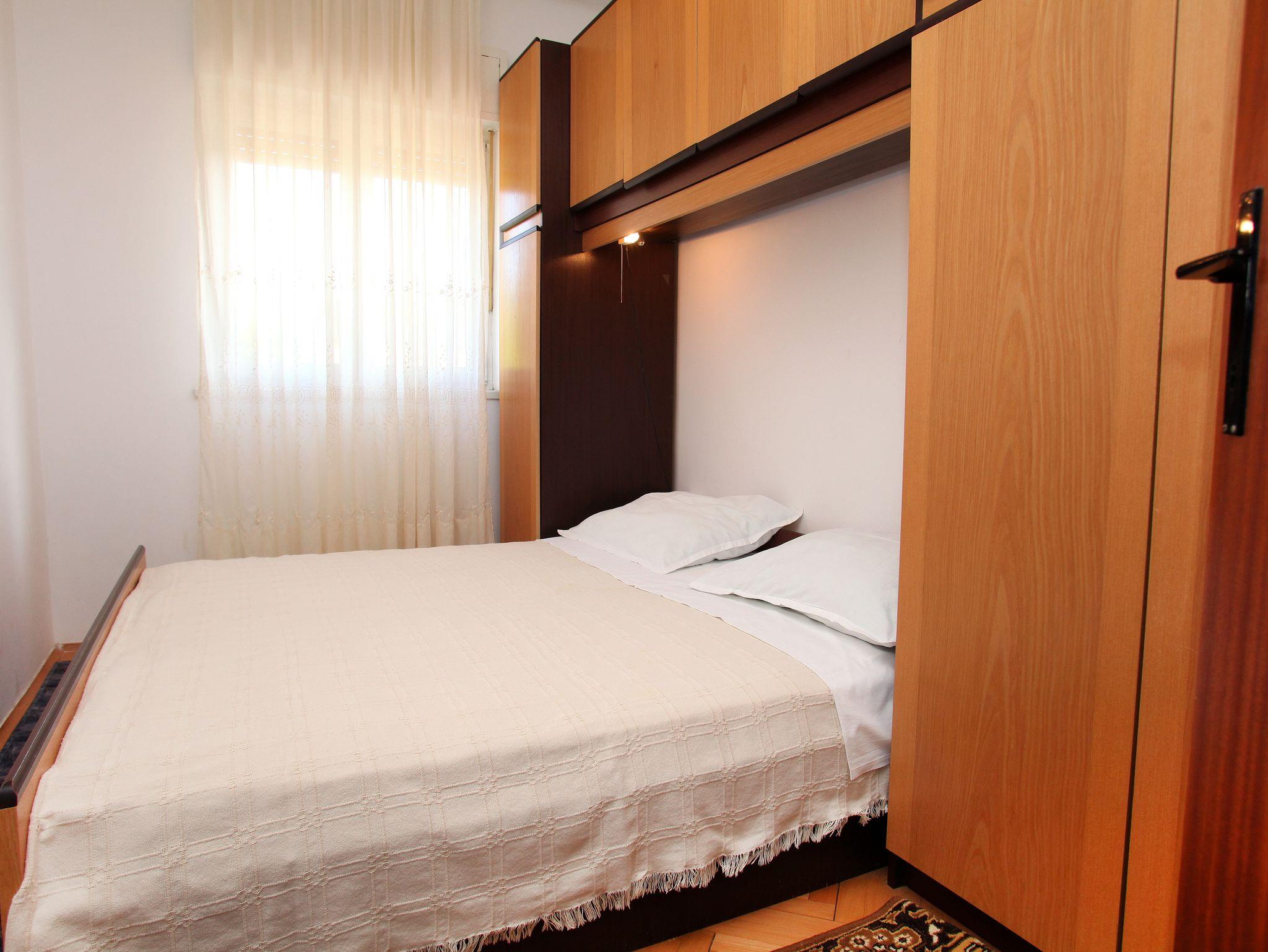 Ferienwohnung bietet Platz für 6 Gäste. Die Betten sind in Schlafzimmern, die es 3 gibt, und in Wohnzimmer, innerhalb einer Gesamtfläche von 84m2, angeordnet. Die Gäste haben eine eigene Terrasse zur Verfügung, auf der sie in warmen Sommernächten genießen können. Das Apartment bietet Meerblick. Es ist erlaubt, Speisen auf dem Gemeinschafts-Grill vorzubereiten. IM PREIS INBEGRIFFEN: Kurtaxe, Endreinigung, Klimatisierung, Parkplatz, Internet, tragbarer Grill. VERBINDLICHE ZUSÄTZLICHE KOSTEN: Aufzahlung für Kurzaufenthalte (prozentualer Zuschlag pro Nächtigungsanzahl: 30% - 1, 20% - 2, 10% - 3). Die Verfügbarkeit zusätzlicher Dienstleistungen in Ihrem reservierten Termin und die Preise derselben (falls nicht aufgeführt) müssen im Voraus überprüft werden. Zusätzliche Dienstleistungen die in der Zahlungsaufforderung nicht aufgeführt sind werden direkt beim Vermieter bezahlt, angenommen der Gast nutzt auch diese.