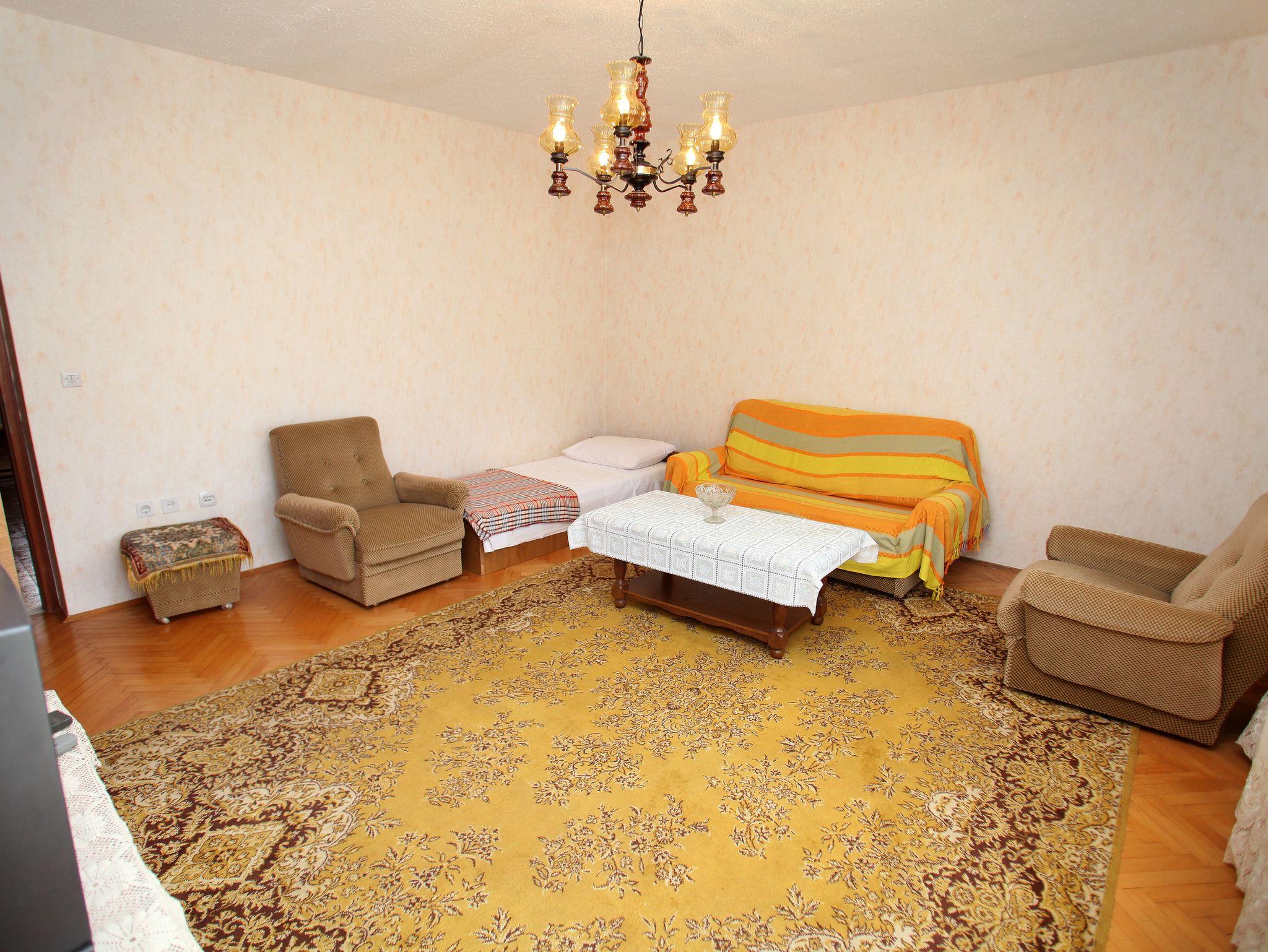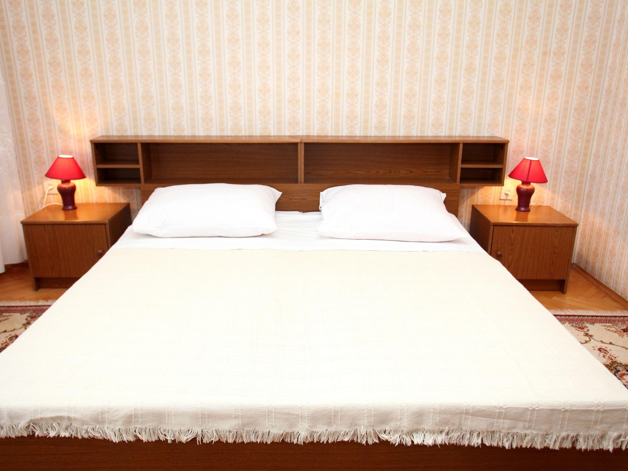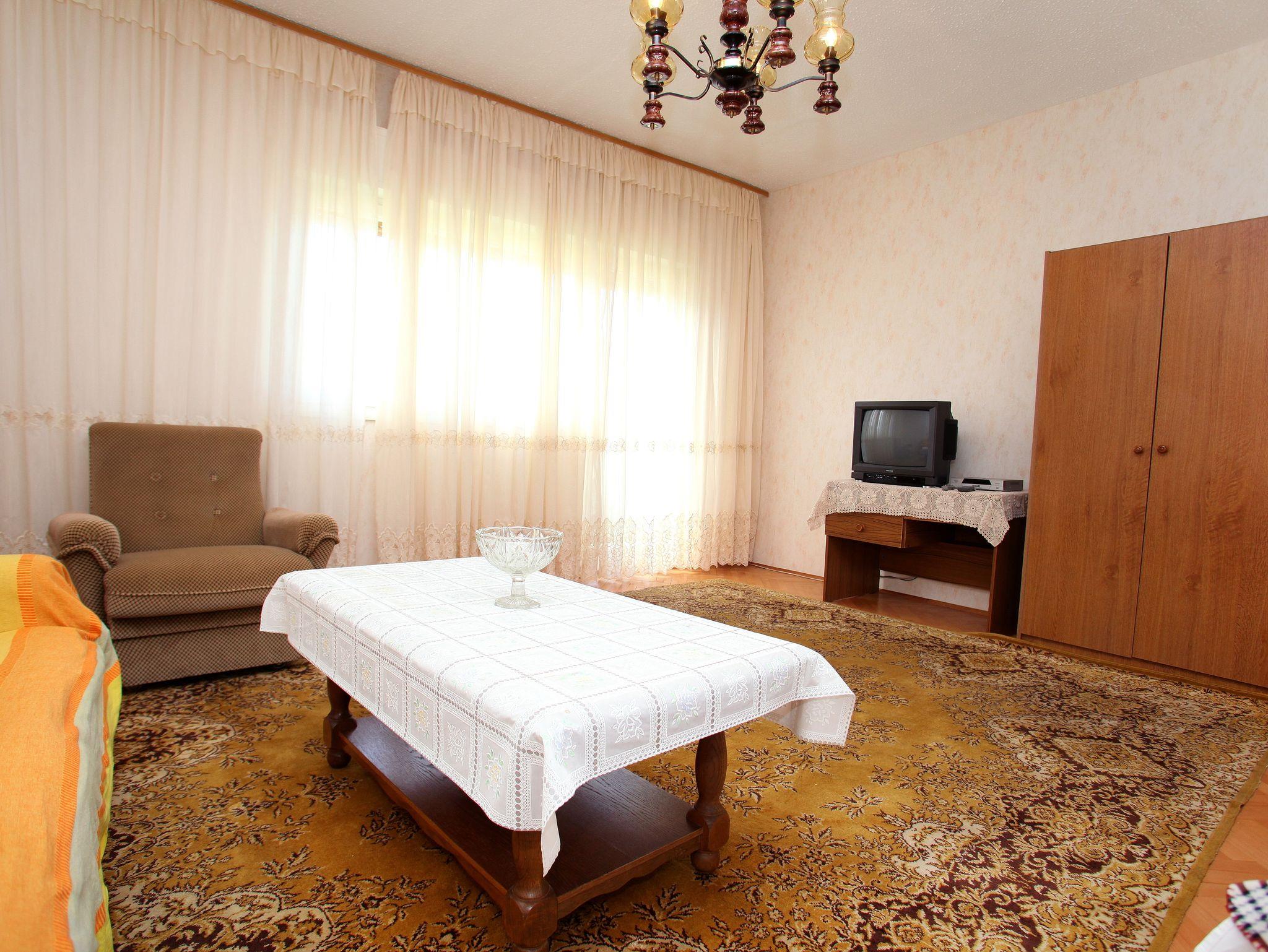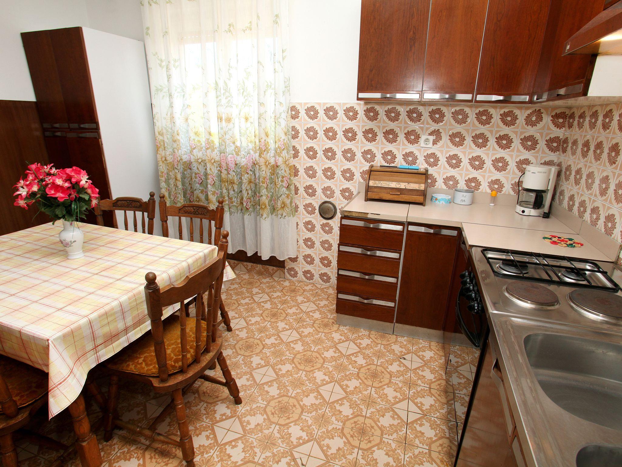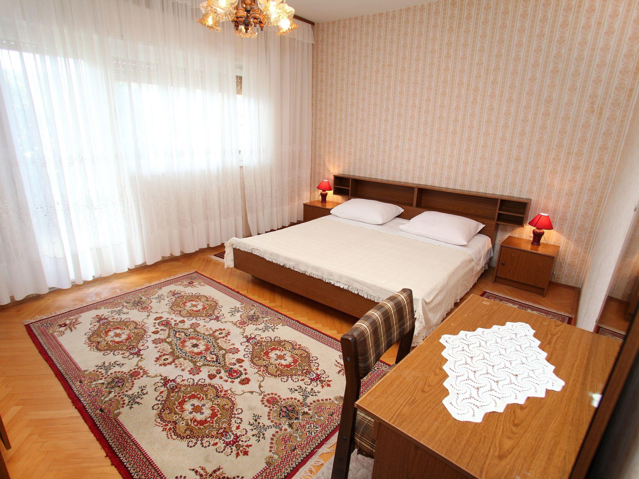Ferienwohnung bietet Platz für 6 Gäste. Die Betten sind in Schlafzimmern, die es 3 gibt, und in Wohnzimmer, innerhalb einer Gesamtfläche von 84m2, angeordnet. Die Gäste haben eine eigene Terrasse zur Verfügung, auf der sie in warmen Sommernächten genießen können. Das Apartment bietet Meerblick. Es ist erlaubt, Speisen auf dem Gemeinschafts-Grill vorzubereiten. IM PREIS INBEGRIFFEN: Kurtaxe, Endreinigung, Klimatisierung, Parkplatz, Internet, tragbarer Grill. VERBINDLICHE ZUSÄTZLICHE KOSTEN: Aufzahlung für Kurzaufenthalte (prozentualer Zuschlag pro Nächtigungsanzahl: 30% - 1, 20% - 2, 10% - 3). Die Verfügbarkeit zusätzlicher Dienstleistungen in Ihrem reservierten Termin und die Preise derselben (falls nicht aufgeführt) müssen im Voraus überprüft werden. Zusätzliche Dienstleistungen die in der Zahlungsaufforderung nicht aufgeführt sind werden direkt beim Vermieter bezahlt, angenommen der Gast nutzt auch diese.