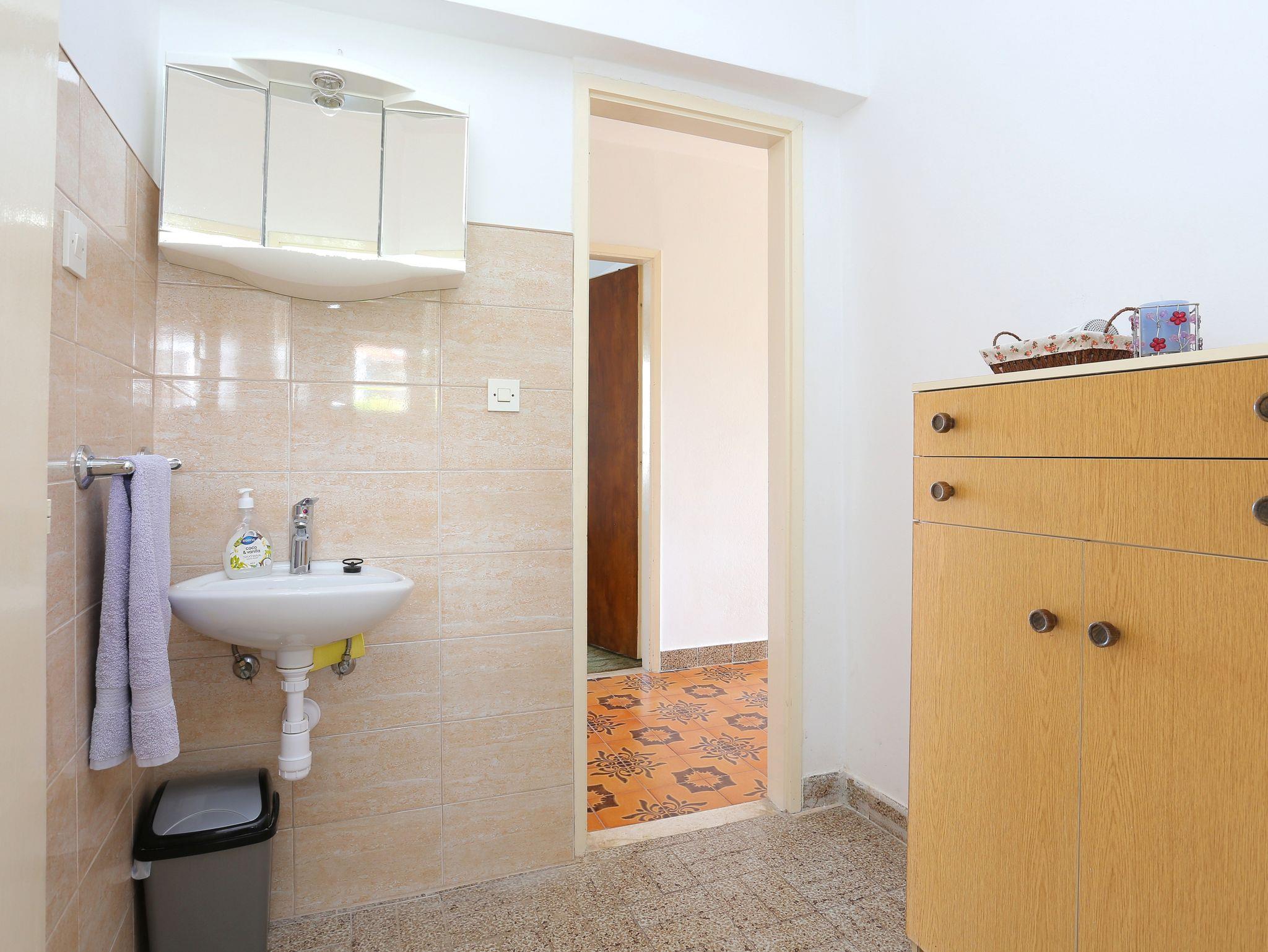 Ferienwohnung bietet Platz für 6 Gäste. Die Betten sind in Schlafzimmern, die es 2 gibt, innerhalb einer Gesamtfläche von 65m2, angeordnet. Die Gäste haben eine eigene Terrasse zur Verfügung, auf der sie in warmen Sommernächten genießen können. Das Apartment bietet Meerblick. Es ist erlaubt, Speisen auf dem Gemeinschafts-Grill vorzubereiten. IM PREIS INBEGRIFFEN: Kurtaxe, Endreinigung, Klimatisierung, Parkplatz, Internet, Bügeleisen, Bügelbrett, Föhn, tragbarer Grill. Die Verfügbarkeit zusätzlicher Dienstleistungen in Ihrem reservierten Termin und die Preise derselben (falls nicht aufgeführt) müssen im Voraus überprüft werden. Zusätzliche Dienstleistungen die in der Zahlungsaufforderung nicht aufgeführt sind werden direkt beim Vermieter bezahlt, angenommen der Gast nutzt auch diese.