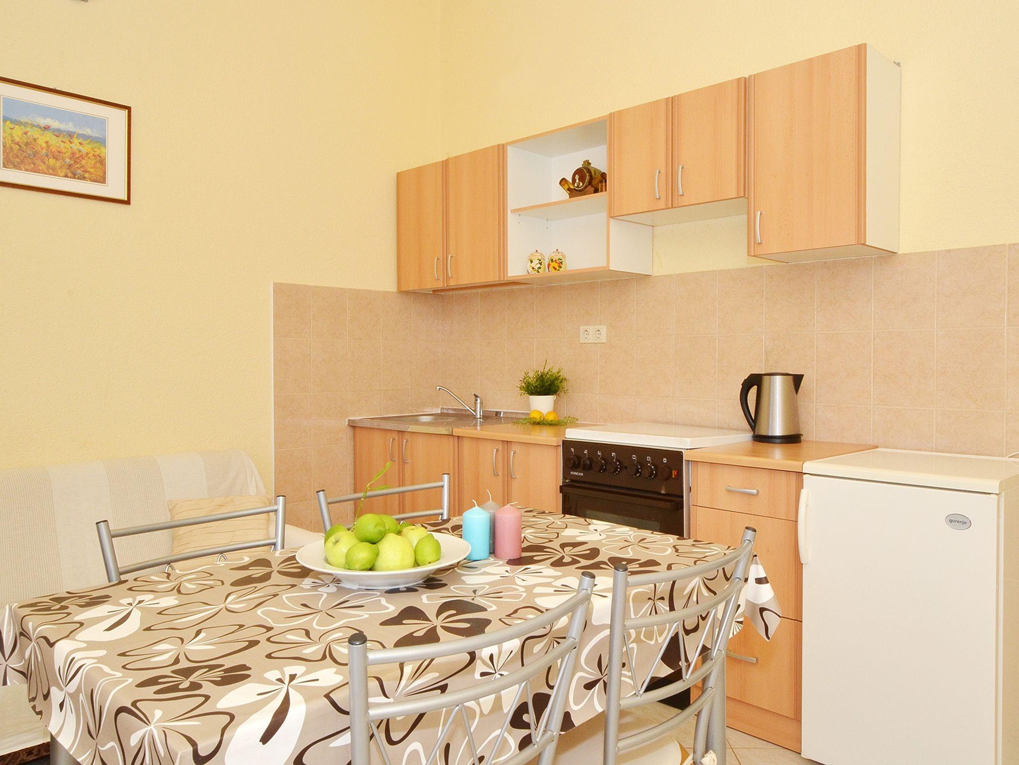 Ferienwohnung bietet Platz für 3 Gäste. Die Betten sind in Schlafzimmern, die es 1 gibt, und in Wohnzimmer, innerhalb einer Gesamtfläche von 35m2, angeordnet. Die Gäste haben einen eigenen Balkon zur Verfügung, auf der sie in warmen Sommernächten genießen können. Das Apartment bietet Meerblick. Es ist erlaubt, Speisen auf dem Gemeinschafts-Grill vorzubereiten. IM PREIS INBEGRIFFEN: Kurtaxe, Endreinigung, Klimatisierung, Parkplatz, Internet, Kinderbett, Bügeleisen, Bügelbrett, Föhn. VERBINDLICHE ZUSÄTZLICHE KOSTEN: Aufzahlung für Kurzaufenthalte (prozentualer Zuschlag pro Nächtigungsanzahl: 30% - 1, 20% - 2, 10% - 3). UNVERBINDLICHE ZUSÄTZLICHE KOSTEN: Bootsanlegeplatz (15,00 € pro Nacht). Die Verfügbarkeit zusätzlicher Dienstleistungen in Ihrem reservierten Termin und die Preise derselben (falls nicht aufgeführt) müssen im Voraus überprüft werden. Zusätzliche Dienstleistungen die in der Zahlungsaufforderung nicht aufgeführt sind werden direkt beim Vermieter bezahlt, angenommen der Gast nutzt auch diese. Ermäßigung auf den Grundpreis: Gratistag 14=13 (bei einem Aufenthalt von 14 Tagen oder mehr erhalten Sie einen Gratistag für den Aufenthalt bis 31.12.26).
