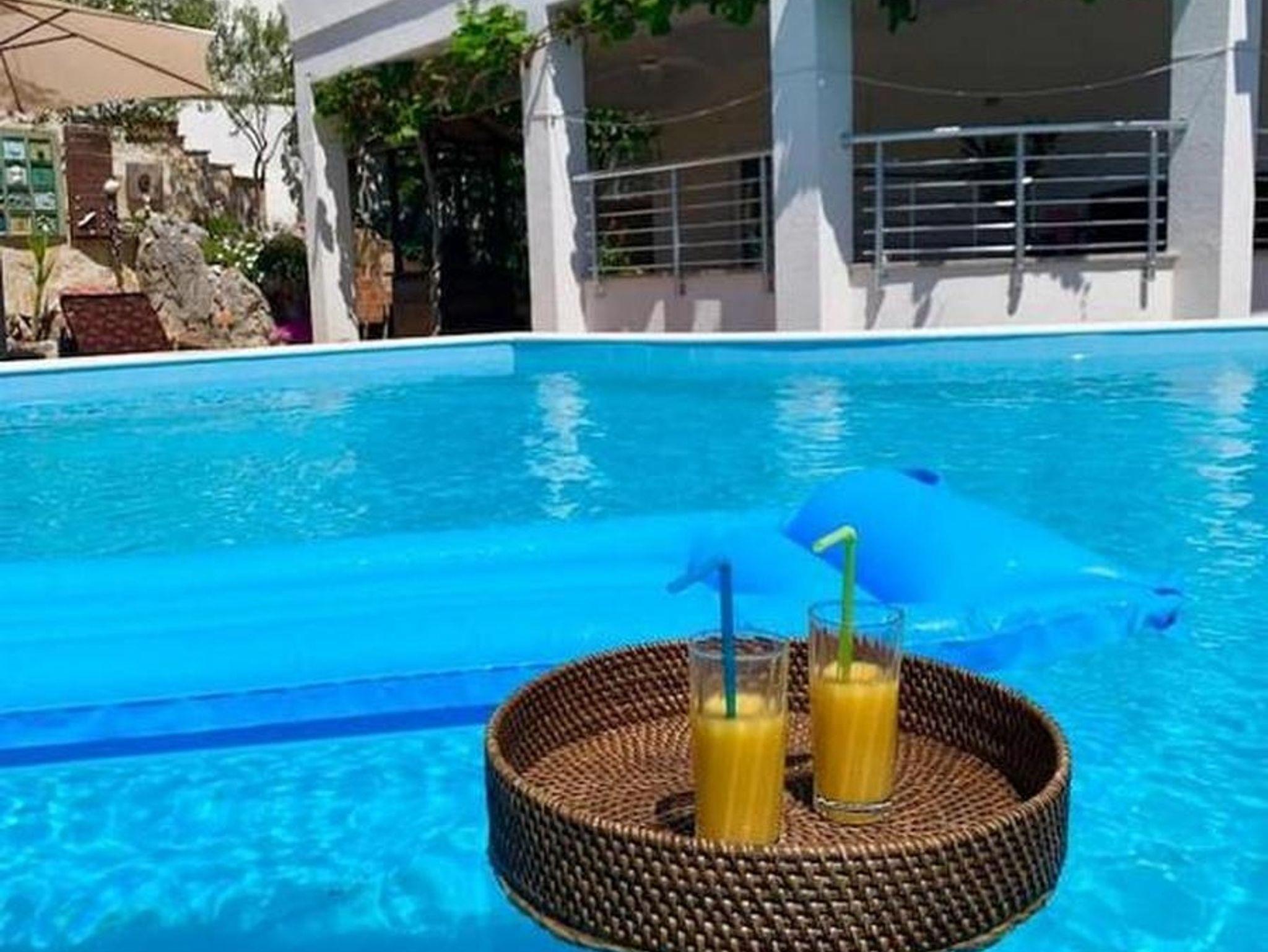 Umgebung des Objekts (Eingerichtet), Hof (100m2, Kinderbereich, Sitzbereich), Parkplatz (Anzahl der Parkplätze: 4, Entfernung vom Objekt: im Hof), Pool: privat, Dimensionen: 5m x 6m x 2m, Wassertyp: Salzwasser, WiFi Internet, Kinderbett