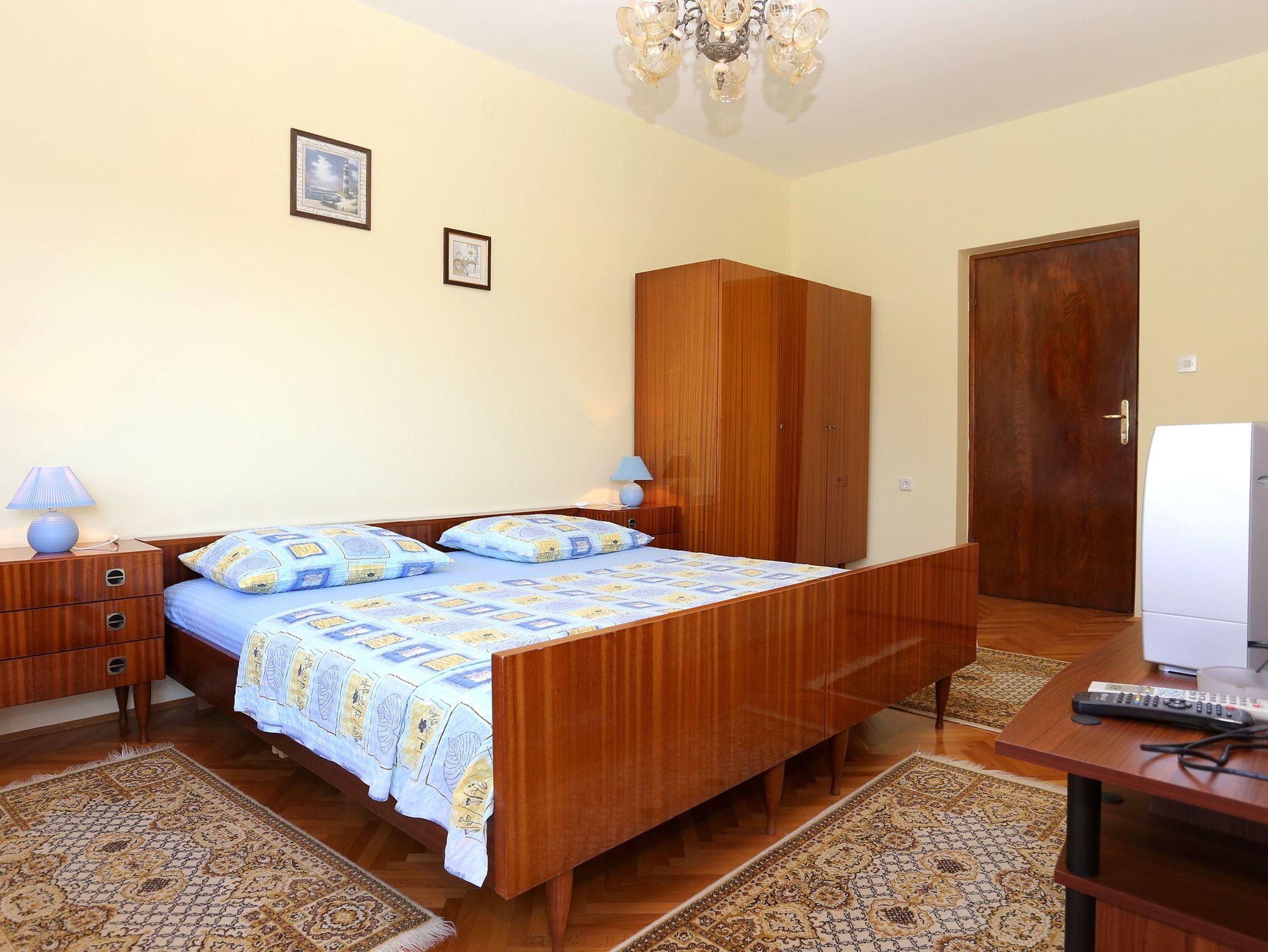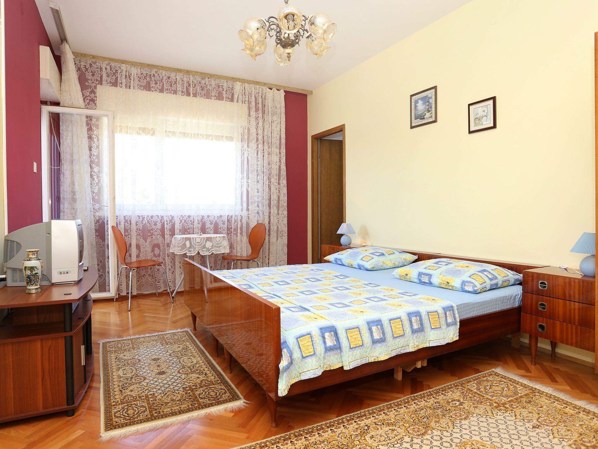 Ferienwohnung bietet Platz für 3 Gäste. Die Betten sind in Schlafzimmern, die es 1 gibt, innerhalb einer Gesamtfläche von 31m2, angeordnet. Die Gäste haben einen eigenen Balkon zur Verfügung, auf der sie in warmen Sommernächten genießen können. Das Apartment bietet Meerblick. Es ist erlaubt, Speisen auf dem Gemeinschafts-Grill vorzubereiten. In der Unterkunftseinheit besteht die Möglichkeit des Mitbringens von Haustieren gegen Aufpreis. Eingang ins Schlafzimmer der gebuchten Unterkunftseinheit ist der Haupteingang in die ganze Unterkunftseinheit. IM PREIS INBEGRIFFEN: Kurtaxe, Endreinigung, Klimatisierung, Parkplatz, Internet, Wäschewaschen, Bügeleisen, Bügelbrett, Föhn. UNVERBINDLICHE ZUSÄTZLICHE KOSTEN: Bootsanlegeplatz (5,00 € pro Nacht), Haustiere (5,00 € pro Nacht). Die Verfügbarkeit zusätzlicher Dienstleistungen in Ihrem reservierten Termin und die Preise derselben (falls nicht aufgeführt) müssen im Voraus überprüft werden. Zusätzliche Dienstleistungen die in der Zahlungsaufforderung nicht aufgeführt sind werden direkt beim Vermieter bezahlt, angenommen der Gast nutzt auch diese. Ermäßigung auf den Grundpreis: Gratistag 28=25 (bei einem Aufenthalt von 28 oder mehr Tagen erhalten Sie 3 kostenlose Tage für den Aufenthalt bis 31.12.26).
