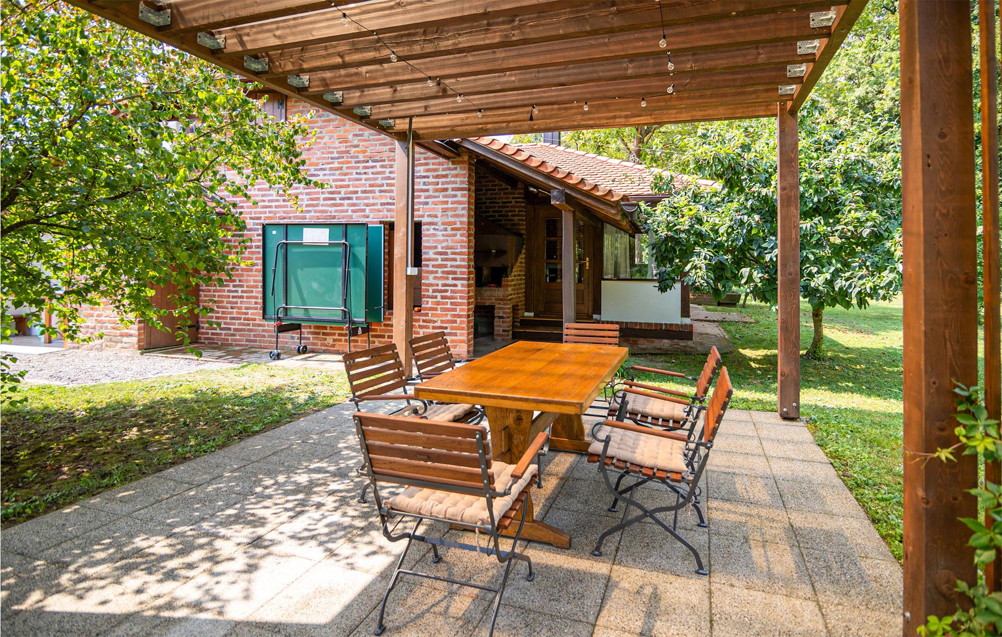 I finder dette idylliske landsted i skønne naturlige omgivelser ved Bosut-floden. Det tilbyder et interiør af høj kvalitet, der giver et smagfuldt indtryk. I tilbringer en afslappende ferie i husets rustikke atmosfære og kan nyde lækre måltider om aftenen, se jeres yndlingsserie eller læse en god bog, mens flammerne knitrer stille og roligt i pejsen.