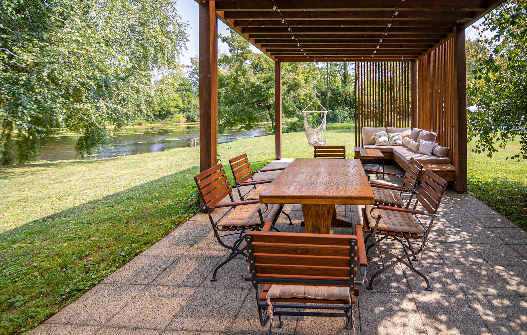 I kan også nyde tiden på den skønne terrasse og på den enorme naturejendom med flere familievenlige aktiviteter (men bemærk nærheden til vandet med børn). Spil et spil badminton, samles til en spændende fodboldkamp, ??eller slå jer ned på badebroen og nyd det beroligende blik fra det blidt rindende vand.