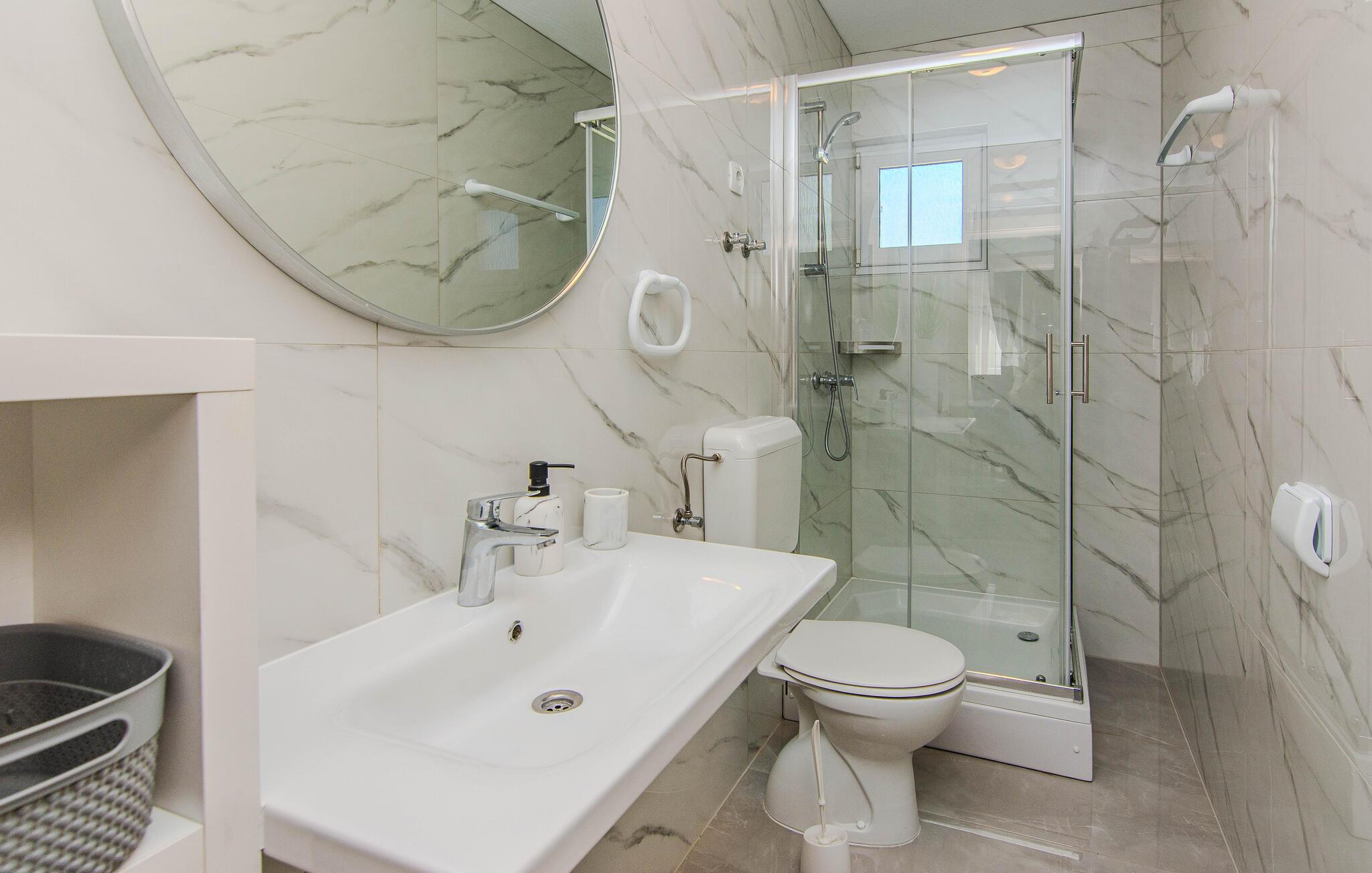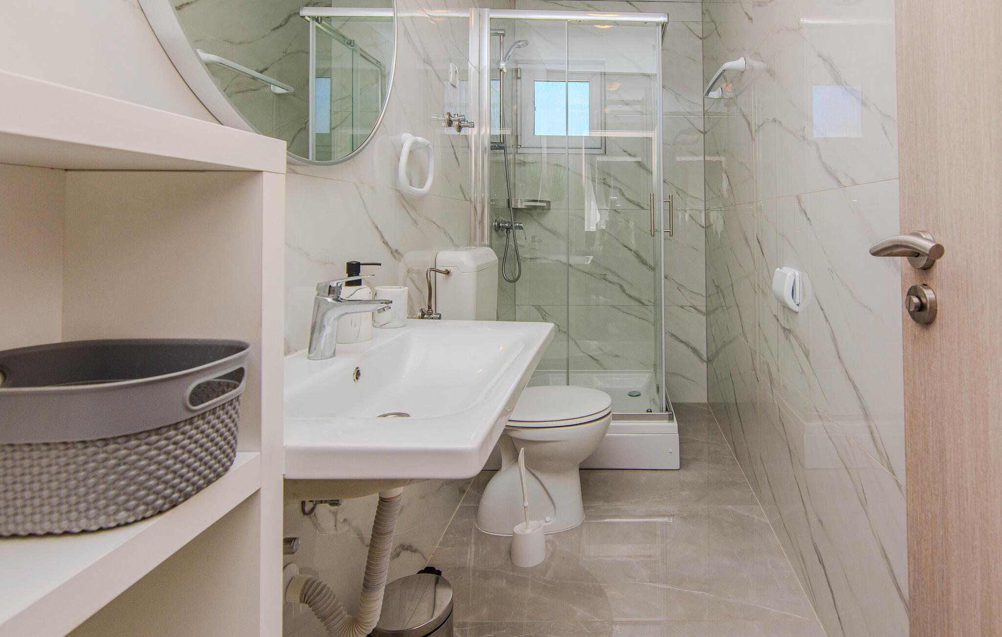 Beliggende i middelhavslandskabet Vir, venter denne lyse, venlige ferielejlighed på at forkæle jer med nærhed til stranden og masser af komfort. Tilbered jeres livretter i det veludstyrede køkken og server jeres måltider i den stilfulde spiseplads. Slap af på det rummelige, komfortable sofaområde og stream en spændende serie.