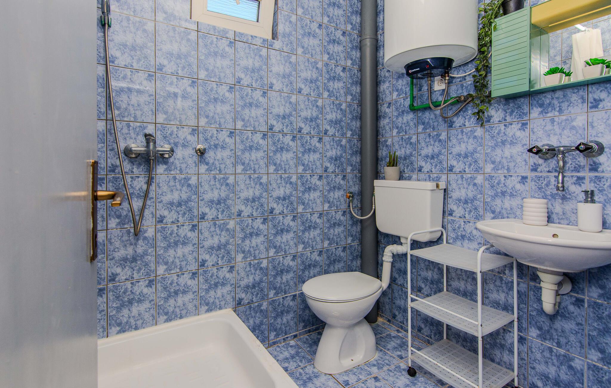 Kun få skridt fra stranden kan I gøre det behageligt i denne praktiske ferielejlighed. Prøv kroatiske opskrifter i det åbne køkken, brug den rummelige sofa til sjove spilleaftener eller stream en god serie efter en lang dag i solen.