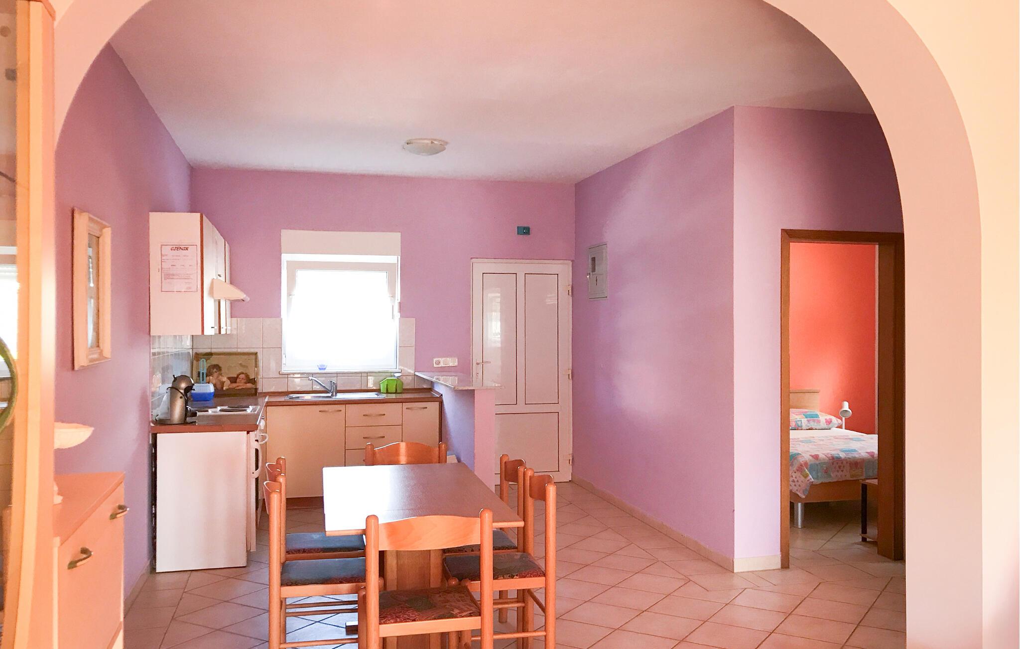 Denne lejlighed på øen Vir er perfekt til en afslappende ferie. En lys stue med sofa og direkte adgang til terrassen samt et praktisk køkken vil sikre, at I hurtigt føler jer hjemme. Slap af her, mens I lytter til musik, tilbring en eftermiddag med at spille kort eller prøv nye opskrifter, mens I laver mad sammen.