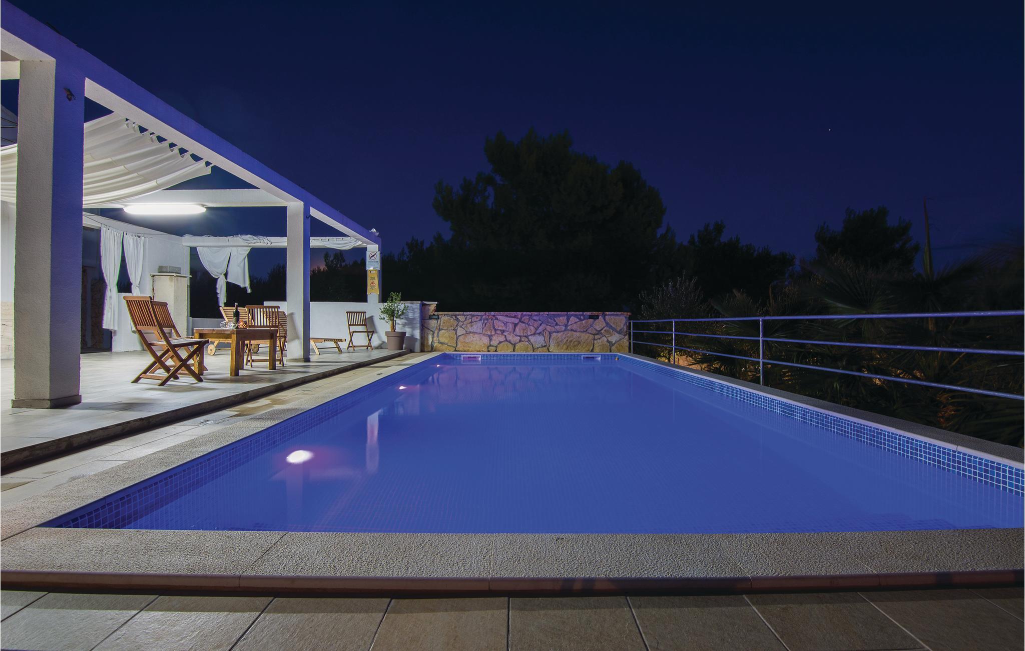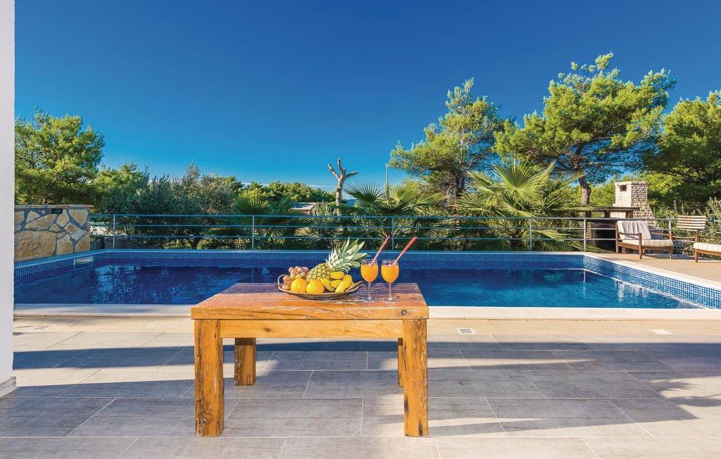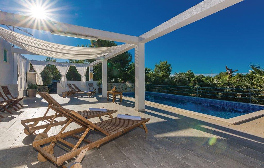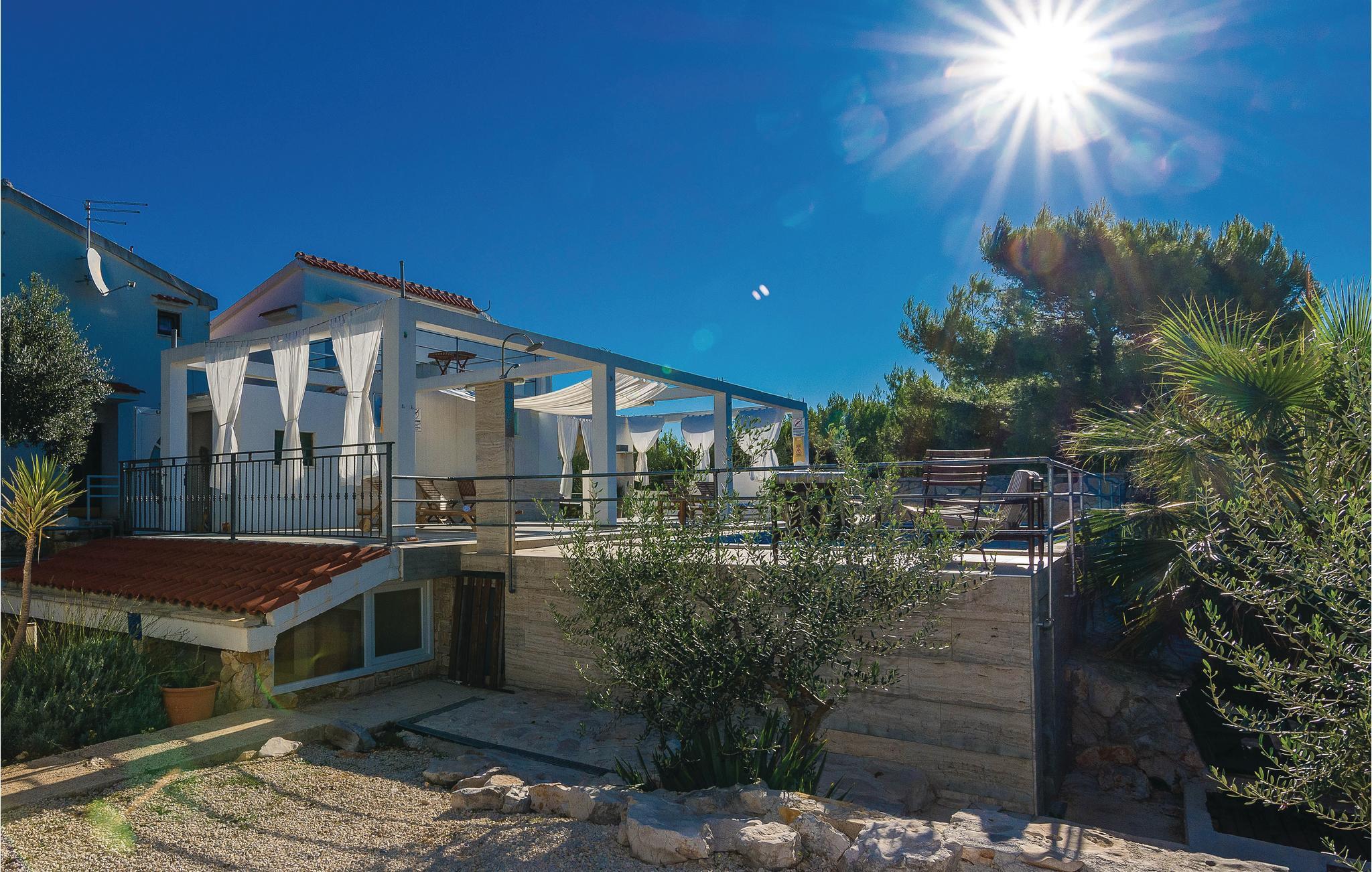 På den gyldne ferieø Vir, på den stor grund, omgivet af vegetation med velduftende mediterrane planter, ligger denne skønne og komfortable ferielejlighed på første sal i en privat ejendom. Svøm en tur i den fælles pool, slap bagefter af i en solstol og fordyb dig i en god bog. Øen Vir er omgivet af skønne strande og har en rig kulturhistorie og mange former for sommerunderholdning og koncerter. Besøg også den historiske by Nin, der også er kendt for sin berømte strand med helende mudder. Byen Zadar er kendt for sin moderne installation Havorgelet, smukke gader, pladser, kønne kirker og forskellige eksempler på moderne arkitektur. Herfra kan I nyde en af verdens smukkeste solnedgange og smage lækker mad og gode vine på restauranterne. De sidste 300 m op til huset er af en grusvej.