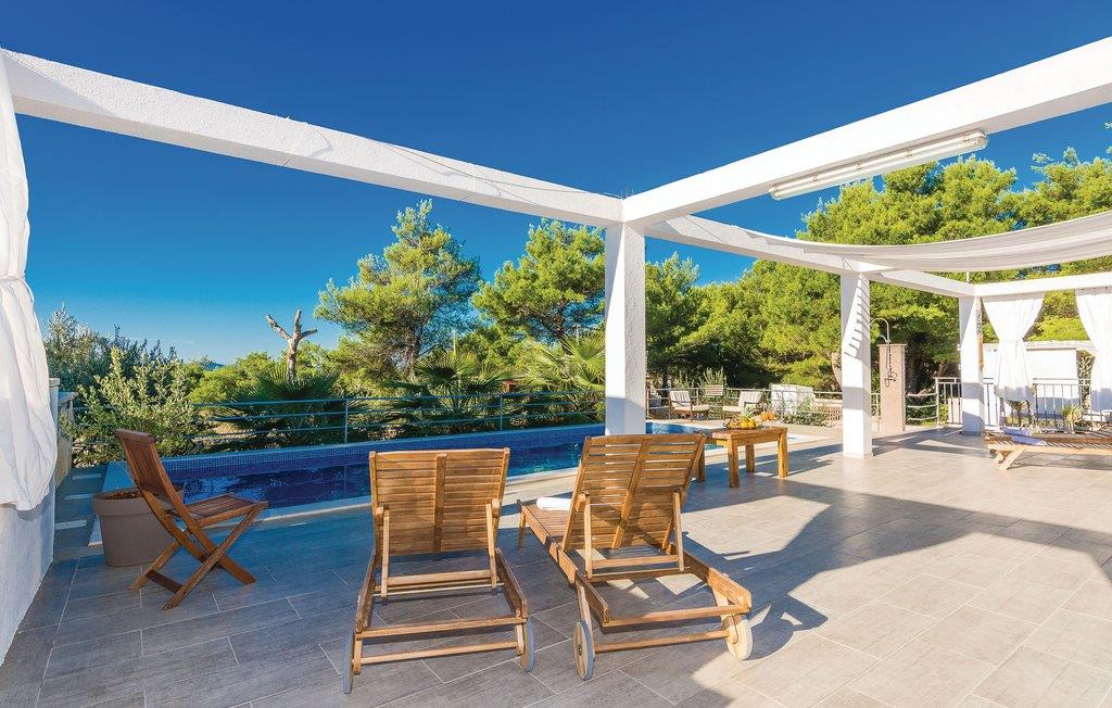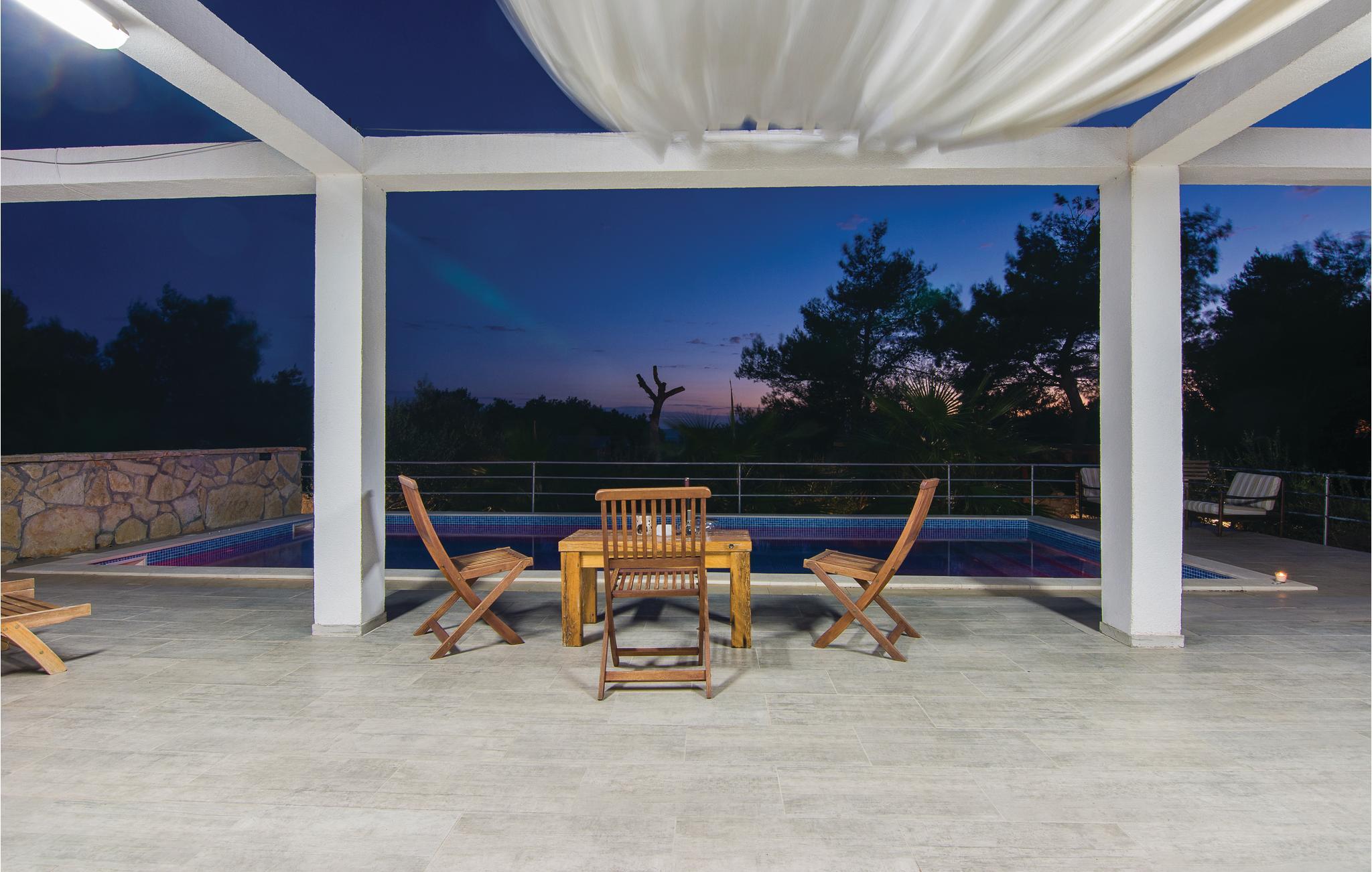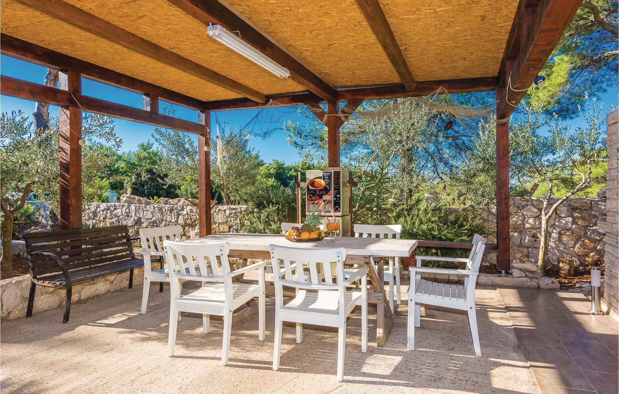 På den gyldne ferieø Vir, på den stor grund, omgivet af vegetation med velduftende mediterrane planter, ligger denne skønne og komfortable ferielejlighed på første sal i en privat ejendom. Svøm en tur i den fælles pool, slap bagefter af i en solstol og fordyb dig i en god bog. Øen Vir er omgivet af skønne strande og har en rig kulturhistorie og mange former for sommerunderholdning og koncerter. Besøg også den historiske by Nin, der også er kendt for sin berømte strand med helende mudder. Byen Zadar er kendt for sin moderne installation Havorgelet, smukke gader, pladser, kønne kirker og forskellige eksempler på moderne arkitektur. Herfra kan I nyde en af verdens smukkeste solnedgange og smage lækker mad og gode vine på restauranterne. De sidste 300 m op til huset er af en grusvej.