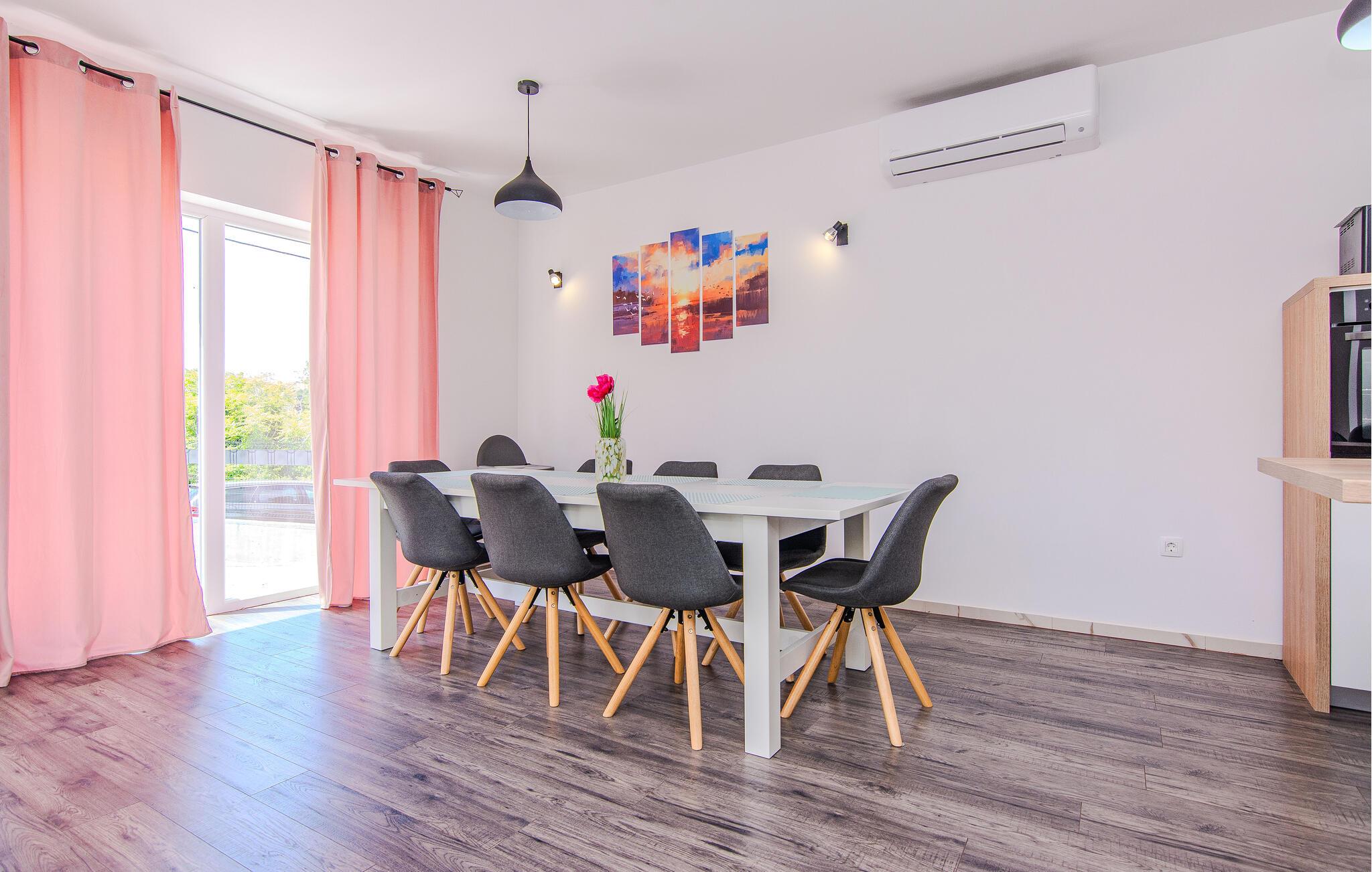 Dette smukke feriehus tilbyder masser af plads og lyse, komfortable værelser til hyggelige dage med venner eller familie. Fremtryll kulinariske lækkerier sammen, snak sprudlende over muntre måltider, og slå jer ned i den rummelige sofa til afslappende spilleaftener eller en god film.