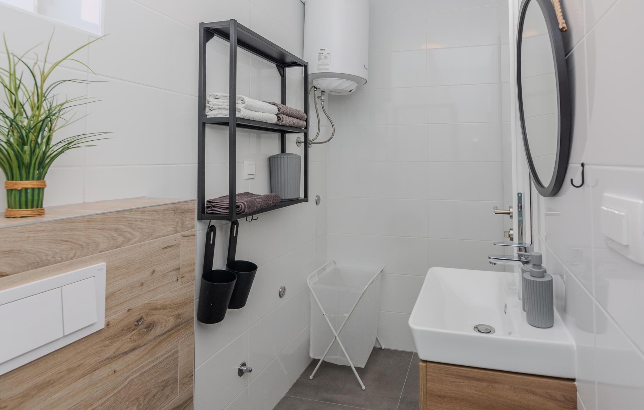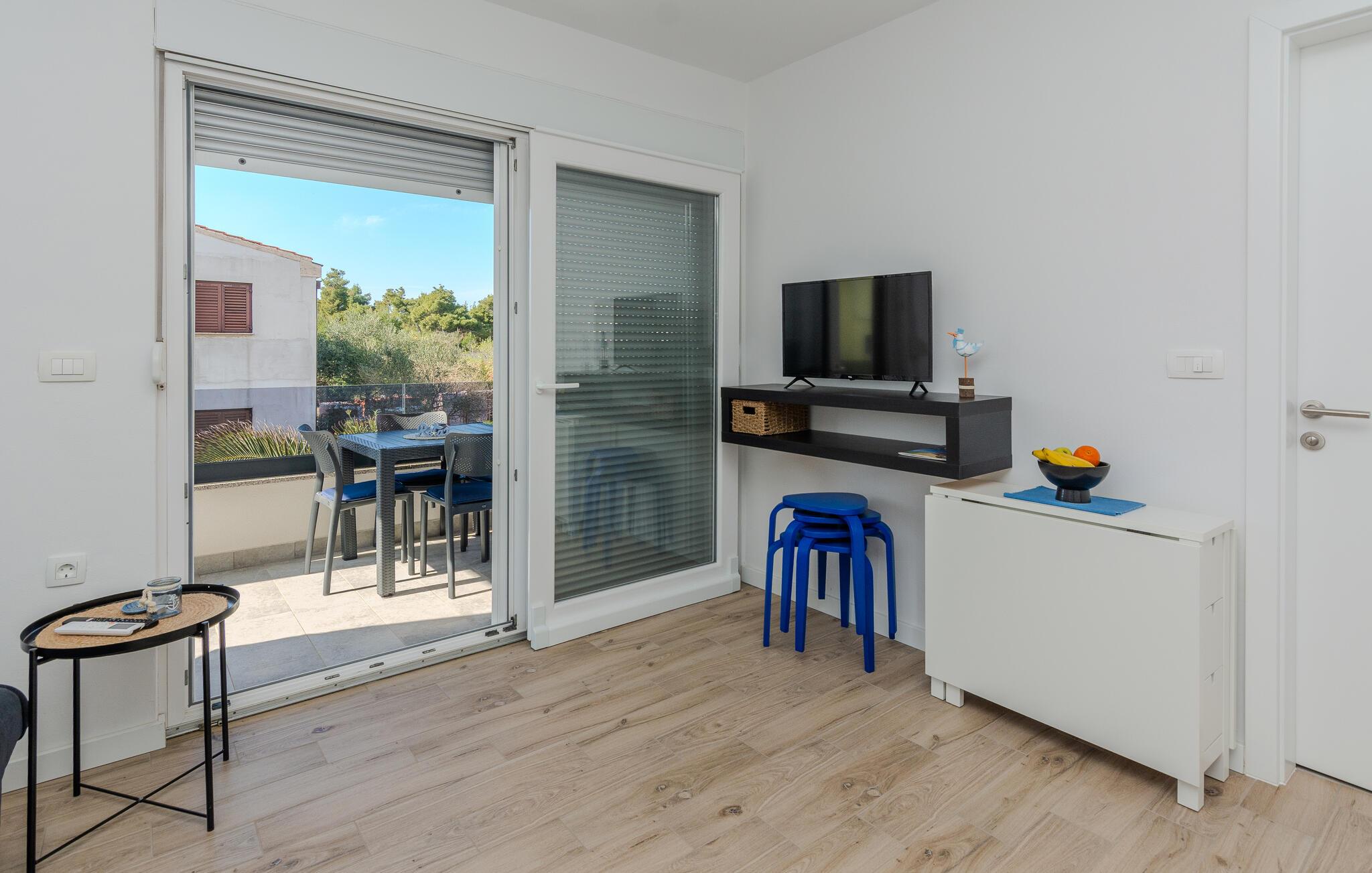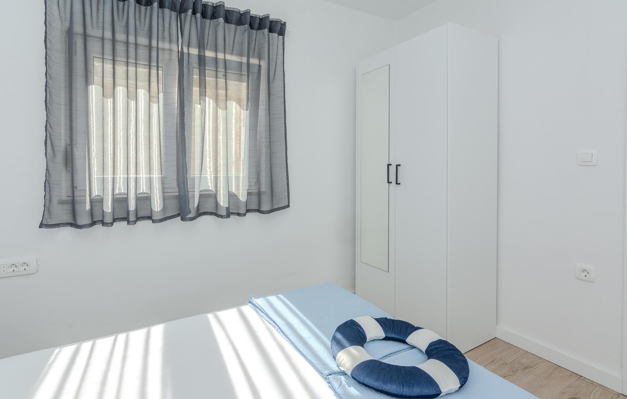 Denne lyse og diskret møblerede ferielejlighed ligger kun en kort gåtur fra en smuk stenstrand og lægger op til at tilbringe afslappende dage i middelhavsklimaet på den charmerende ø Vir. Det praktiske køkken giver jer mulighed for at forvandle friske råvarer fra markedet til lækre måltider. Tag plads ved spisebordet og brug det til hyggelige spilleaftener, eller Slå jer ned godt til rette i den rummelige sofagruppe og stream en spændende film.