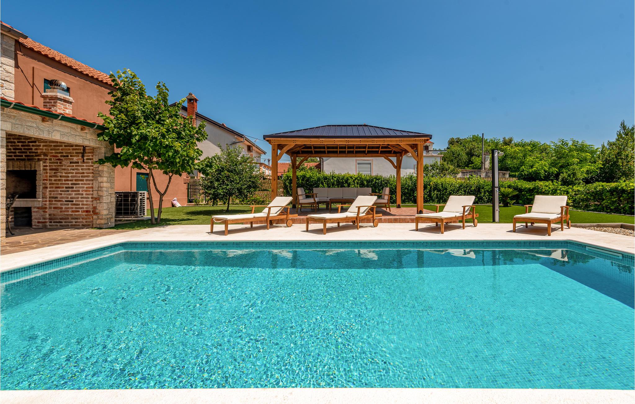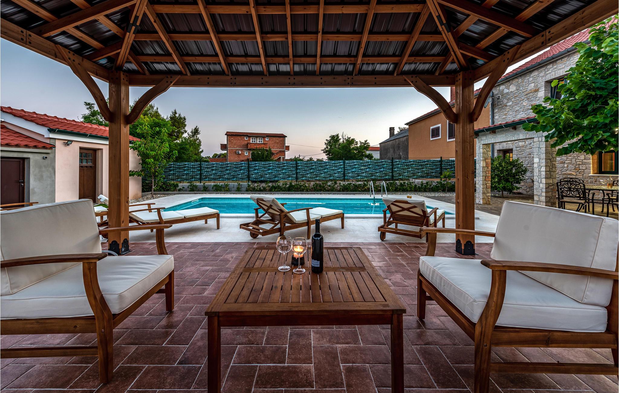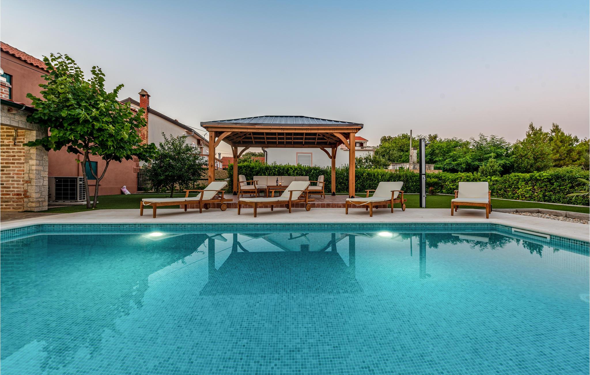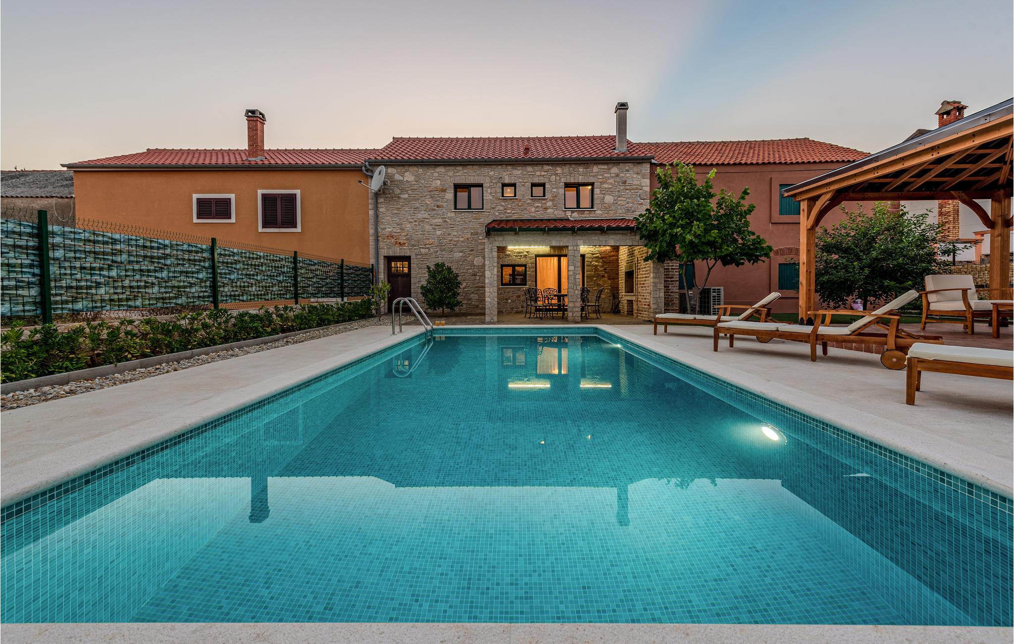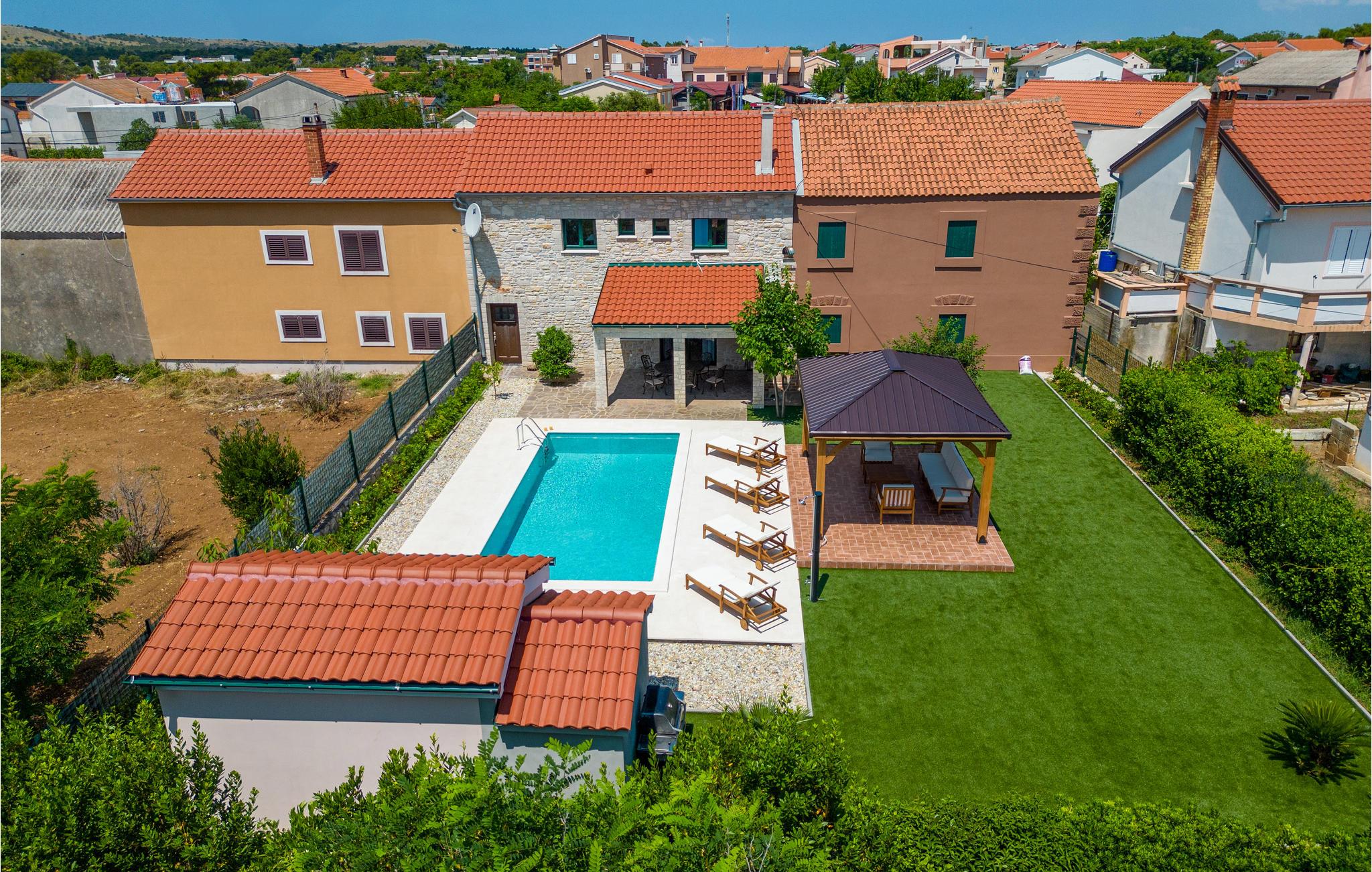 Nyd en afslappende ferie i denne smukke byvilla i centrum af byen Vir. Velkommen til øen af samme navn, hvor dette over hundrede år gamle hus lover dig en fantastisk ferie. Du kan tilbringe en afslappende ferie på to etager sammen med dine kære. Privatlivets fred er også sikret, da soveværelserne har eget badeværelse. Kom sammen i stueetagen, i den åbne stue og nyd tiden ved at lege, lave mad eller slappe af i sofaen. Haven er også særdeles indbydende med to overdækkede terrasser, en muret grill og en skøn pool, der indbyder til at svømme, plaske rundt og solbade ved poolkanten. Øen Vir er bestemt en af de smukkeste og mest idylliske feriedestinationer i landet. De unikke strande gør dem til et sandt badeparadis. Takket være sin ideelle beliggenhed er øen ikke kun perfekt til en badeferie, mange seværdigheder og udflugtsmål kan også nemt nås herfra. Oplev for eksempel den gamle bydel i Zadar og den maleriske by Nin, eller udforsk området på cykel.Den lange kyst byder på en blanding af forskellige landskaber med barske kyster, smukke stenbugter og sektioner med grønne fyrreskove. Tilbring en dejlig ferie med at bade i havet og opdage øen og det omkringliggende område!