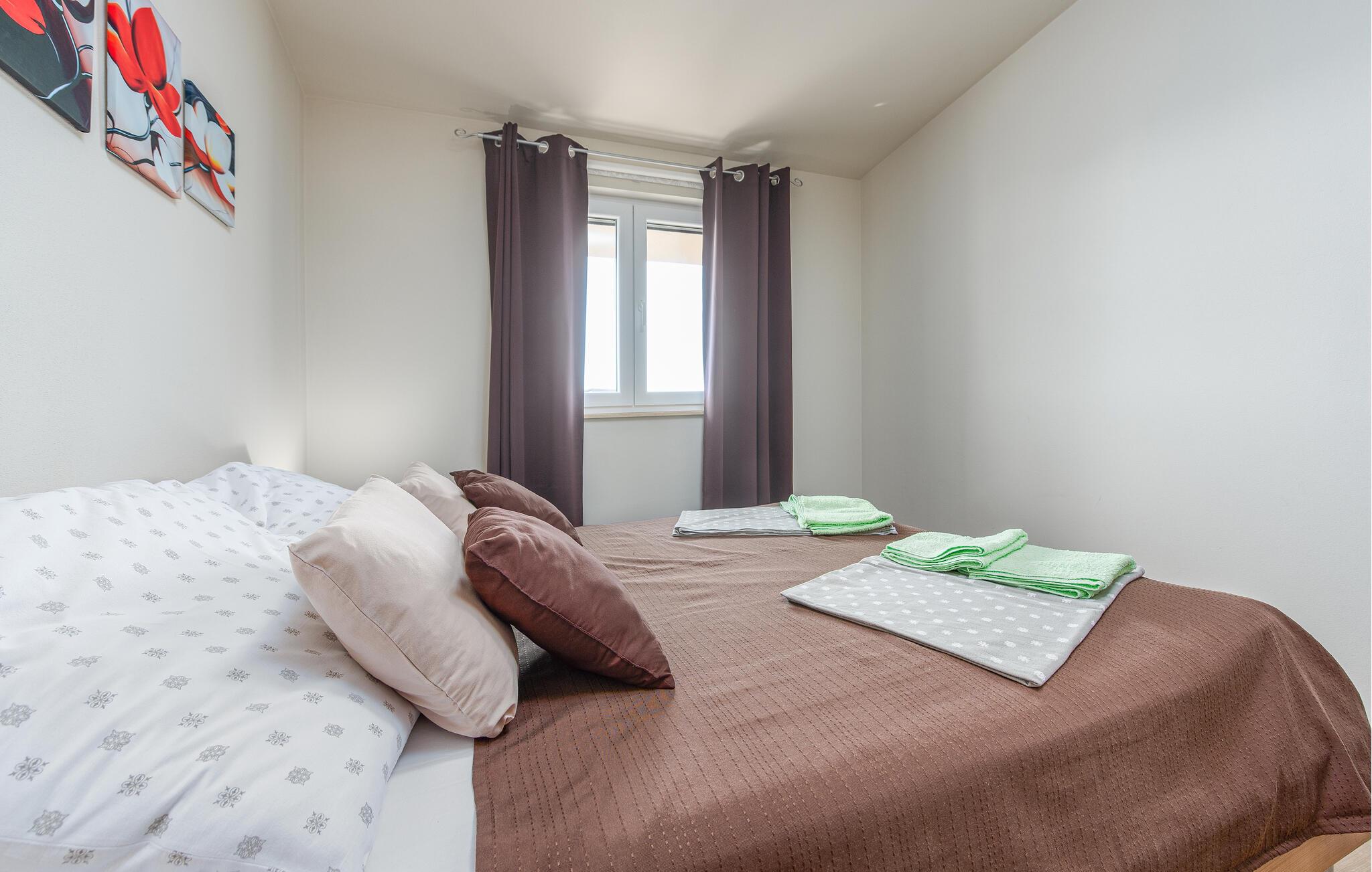 I har kun få minutters gang til stranden, hvor I kan mærke det fine sand mellem tæerne, snuppe et friskt dyp og gå en dejlig tur langs vandet. I den livlige badeby Vir kan I besøge sognekirken Sv. Juraj, resterne af Kastelina-fæstningen og fyrtårnet på sydvestkysten. Herfra kan I køre til både Zadar og Nin, som begge egner sig fremragende til en dagstur.