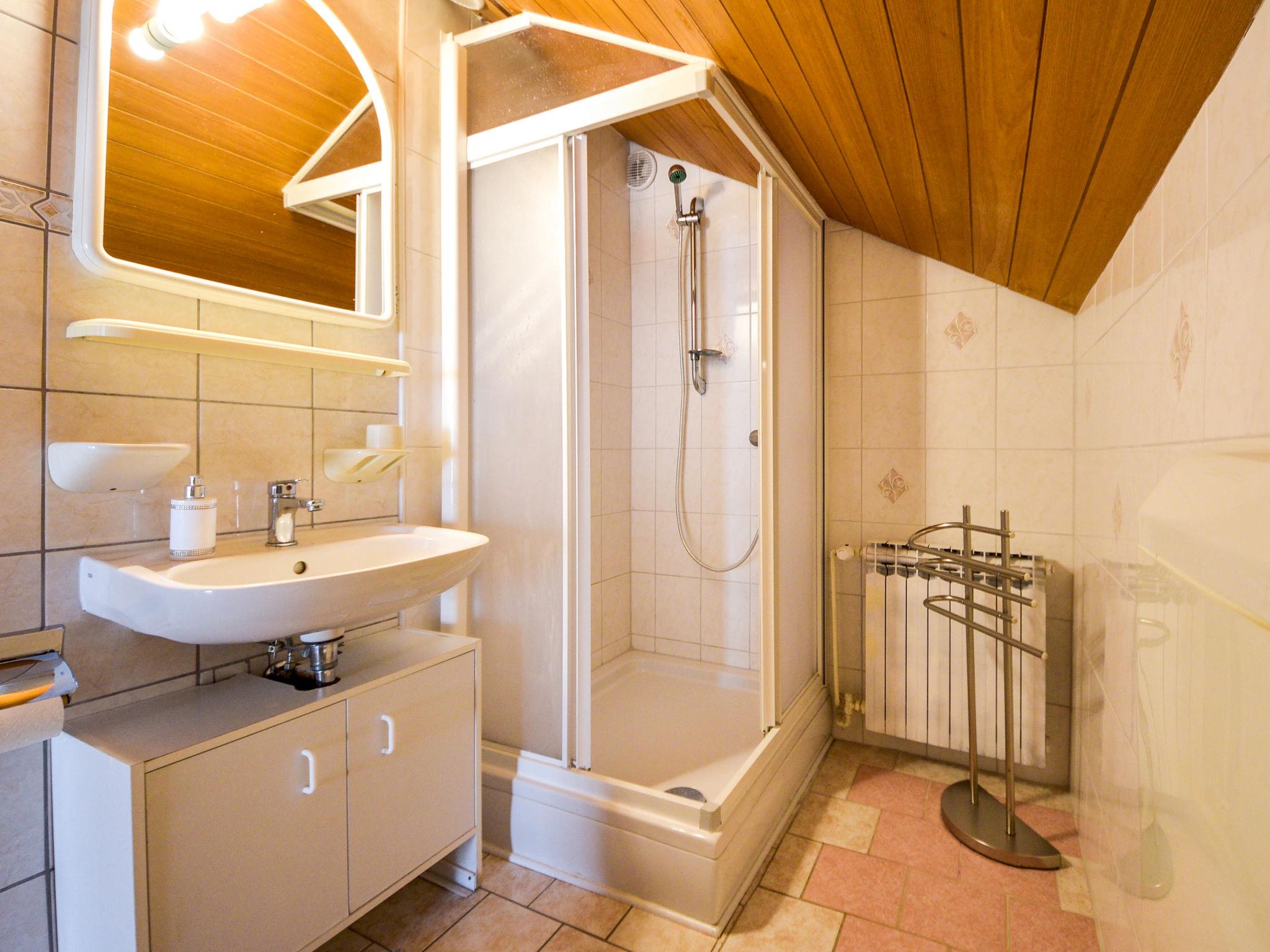 3-room apartment 60 m2, on the top floor, south facing position. Entrance hall with air conditioning. 1 room with sloping ceilings, ceiling height 145 - 220 cm with 1 french bed (160 cm, length 200 cm). 1 room with sloping ceilings, ceiling height 145 - 220 cm with 1 french bed (160 cm, length 200 cm), satellite TV (flat screen). 1 room with 1 french bed (160 cm, length 200 cm), satellite TV. Dining room 10 m2, with sloping ceilings, ceiling height 145 - 220 cm. With sloping ceilings, open kitchen (oven, dishwasher, 4 gas rings, kettle, microwave, freezer, electric coffee machine), ceiling height 145 - 220 cm. Shower/WC. Air-conditioning (extra). No heating option. Terrace 12 m2 partly roofed. Terrace furniture. Partial view of the sea. Facilities: Internet (WiFi, free).