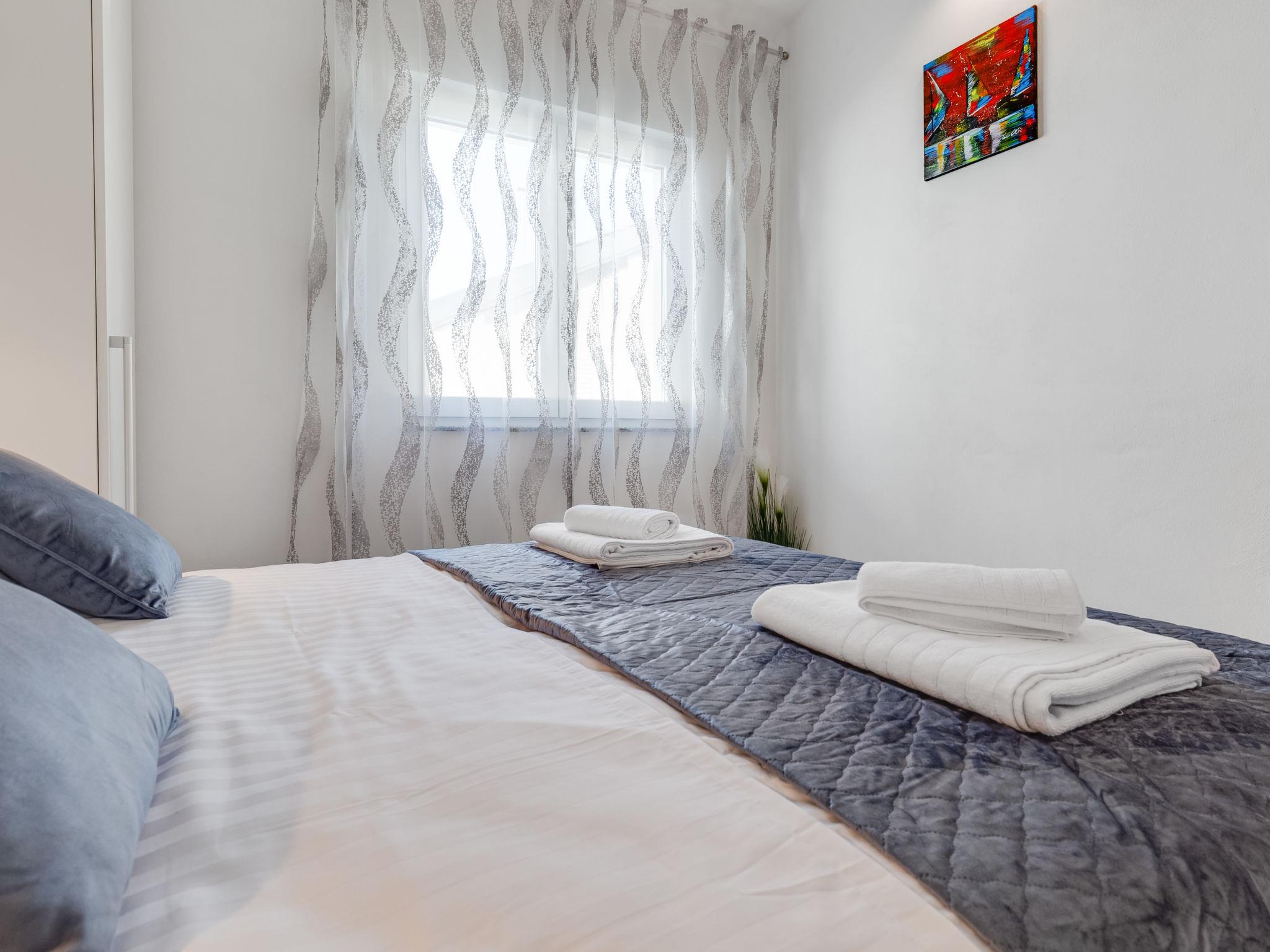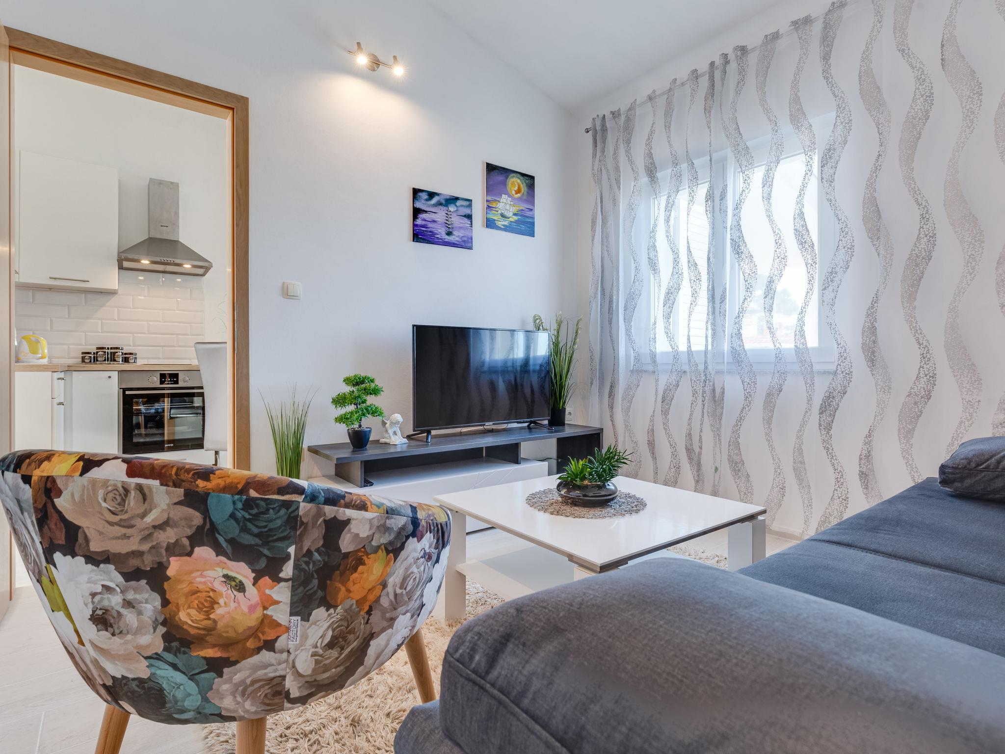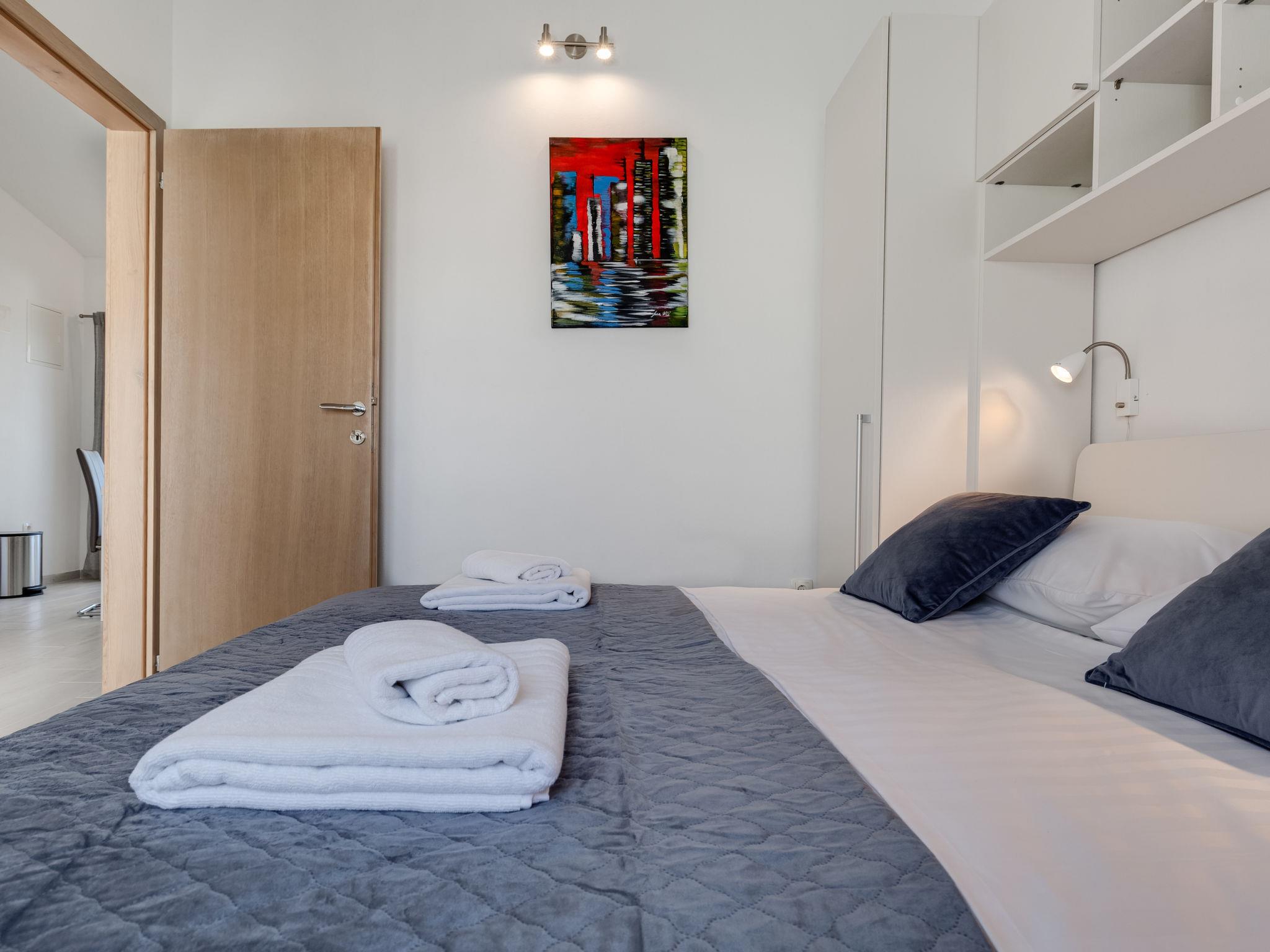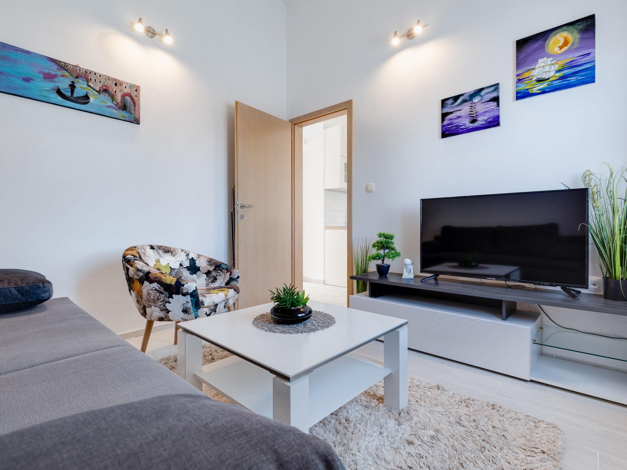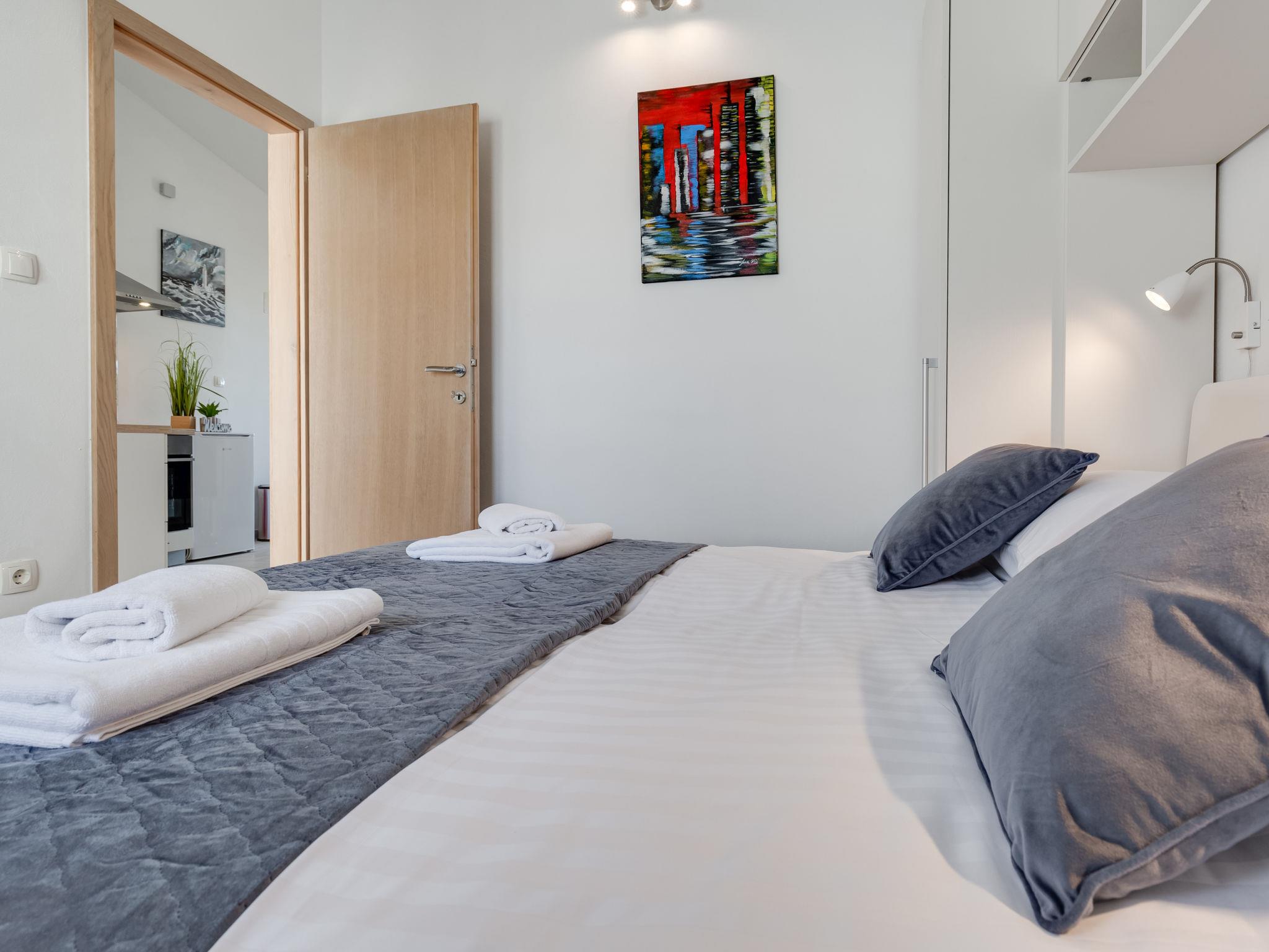 2-room apartment 36 m2 on 1st floor. Living room with 1 double sofabed (145 cm, length 200 cm), satellite TV (flat screen). 1 room with 1 double bed (2 x 80 cm, length 200 cm). Kitchen (oven, 2 ceramic glass hob hotplates, toaster, kettle, electric coffee machine) with dining table. Exit to the balcony. Shower/WC. No heating option. Balcony 8 m2. Balcony furniture. Side view of the sea. Facilities: hair dryer. Internet (WiFi, free).