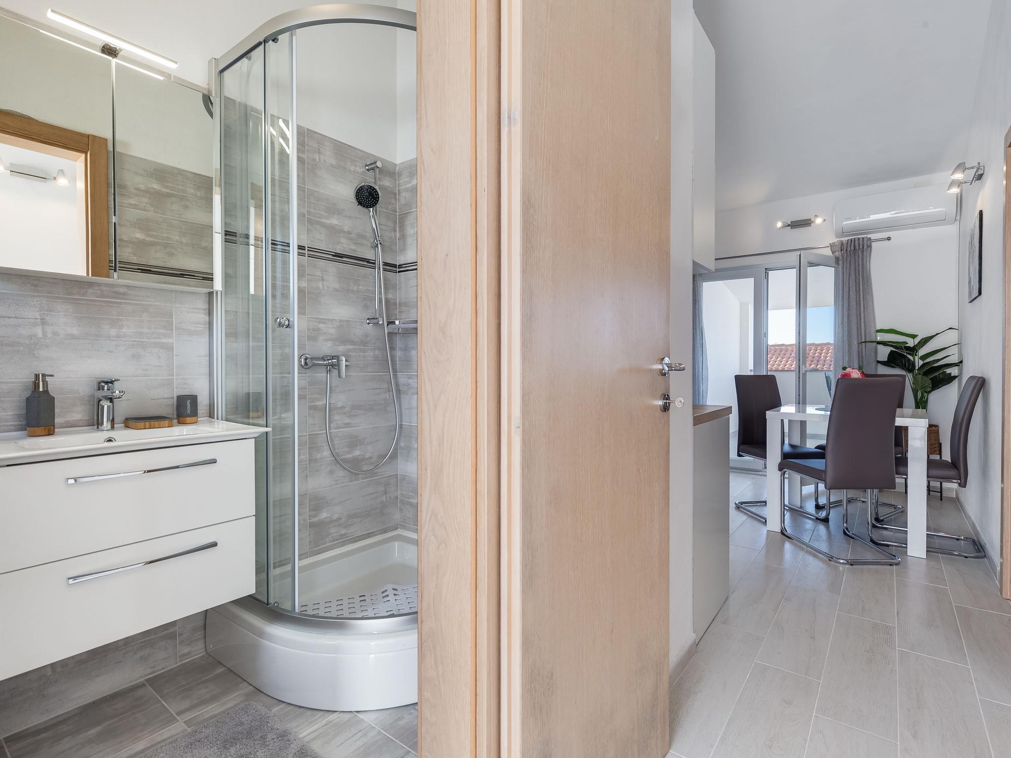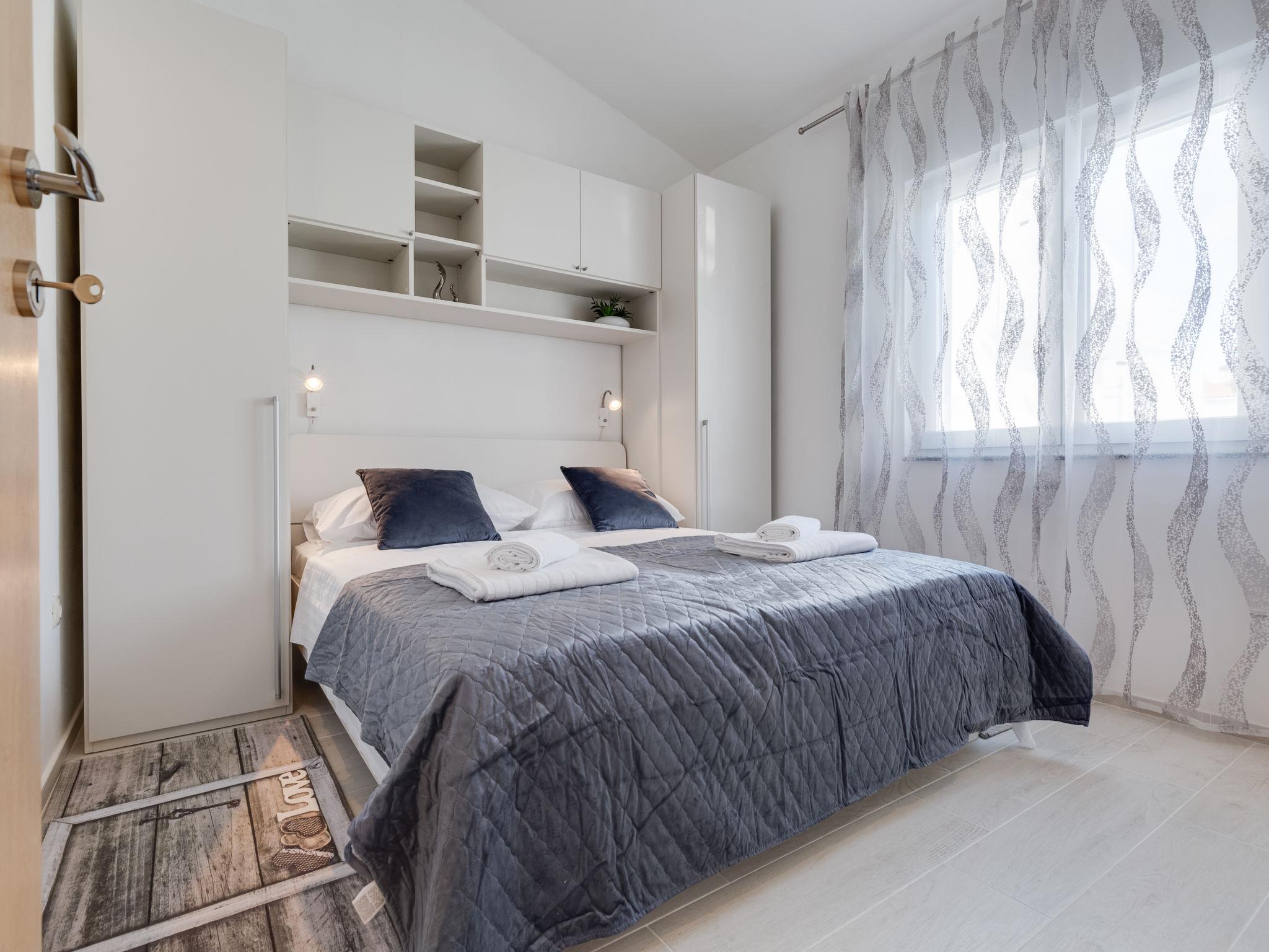 Apartment house "Tramonto". 3.5 km from the centre of Vir, in a sunny position, 20 m from the sea, 20 m from the beach. For shared use: property 600 m2, trees. In the house: restaurant, internet access. Parking at the house on the premises. Shop 600 m, supermarket 1.1 km, bus stop 4.4 km, pebble beach 20 m.