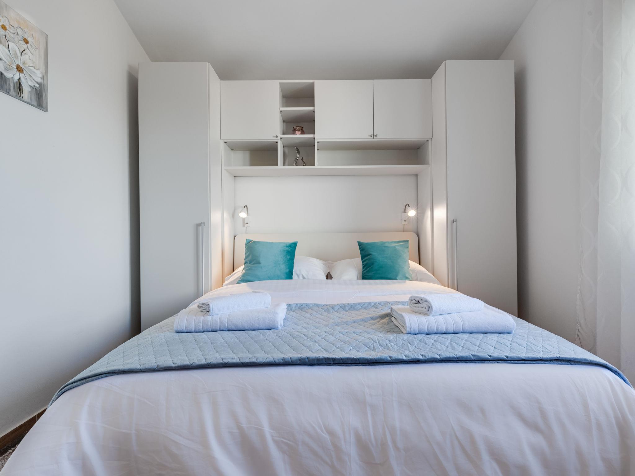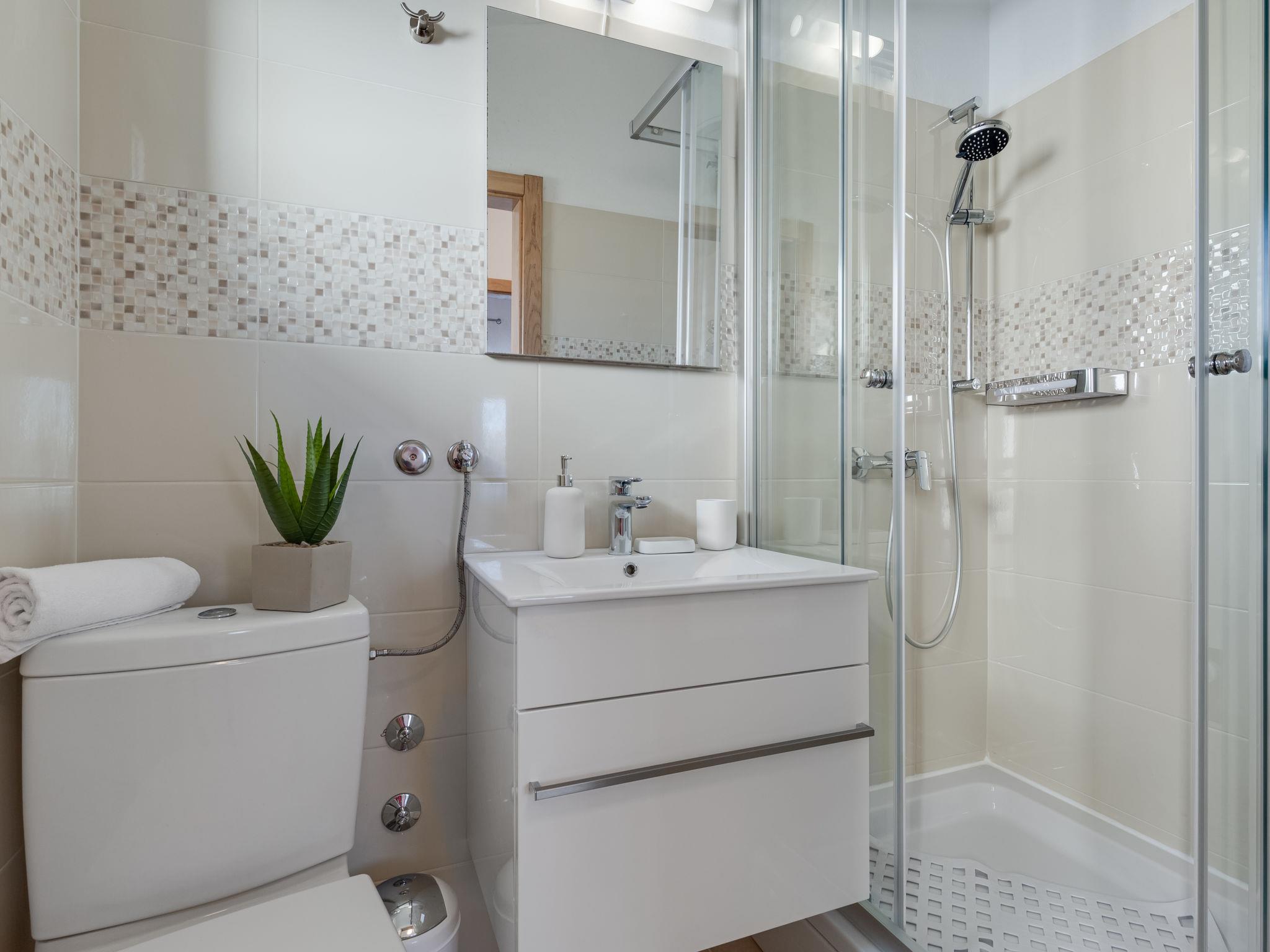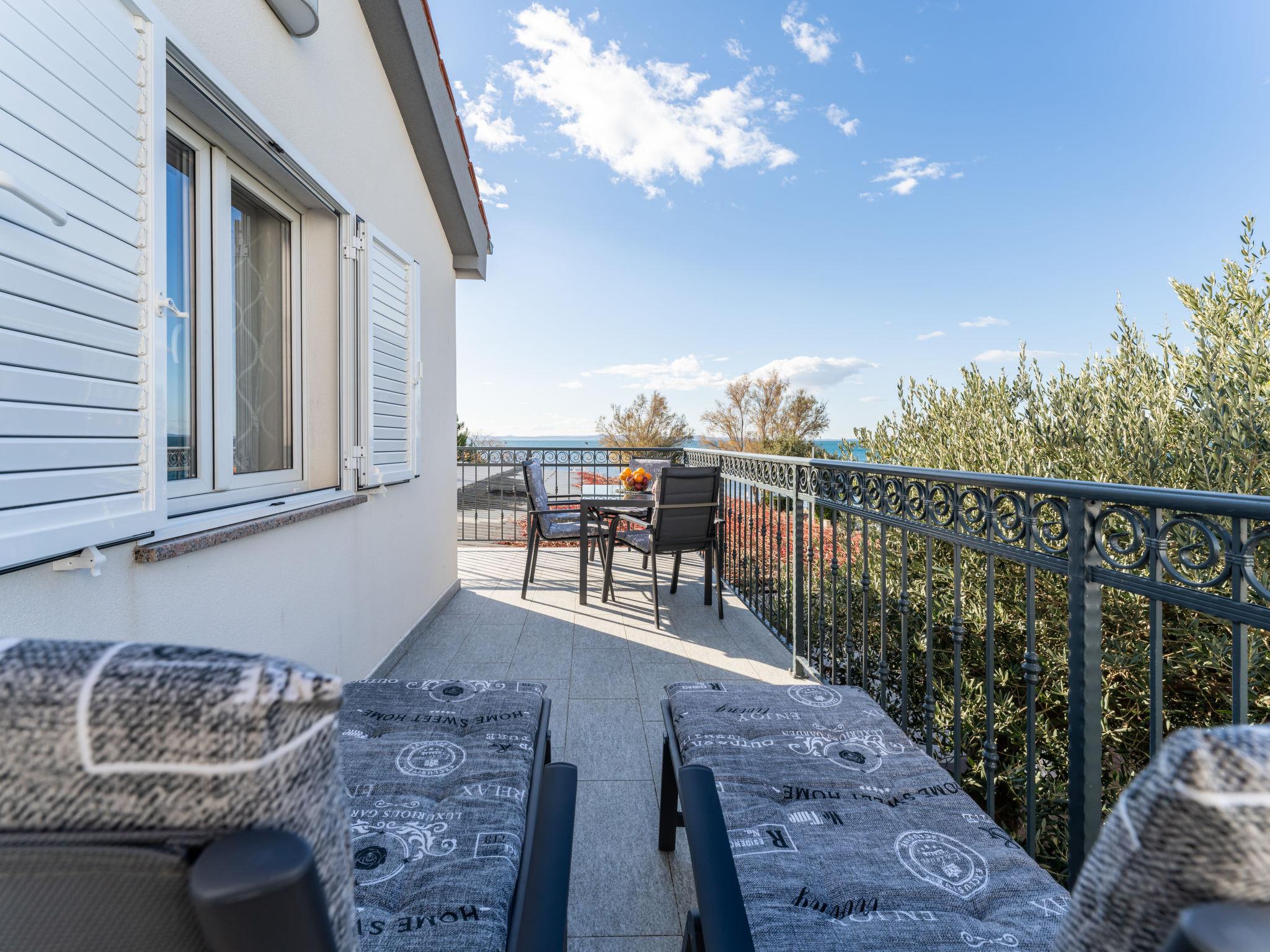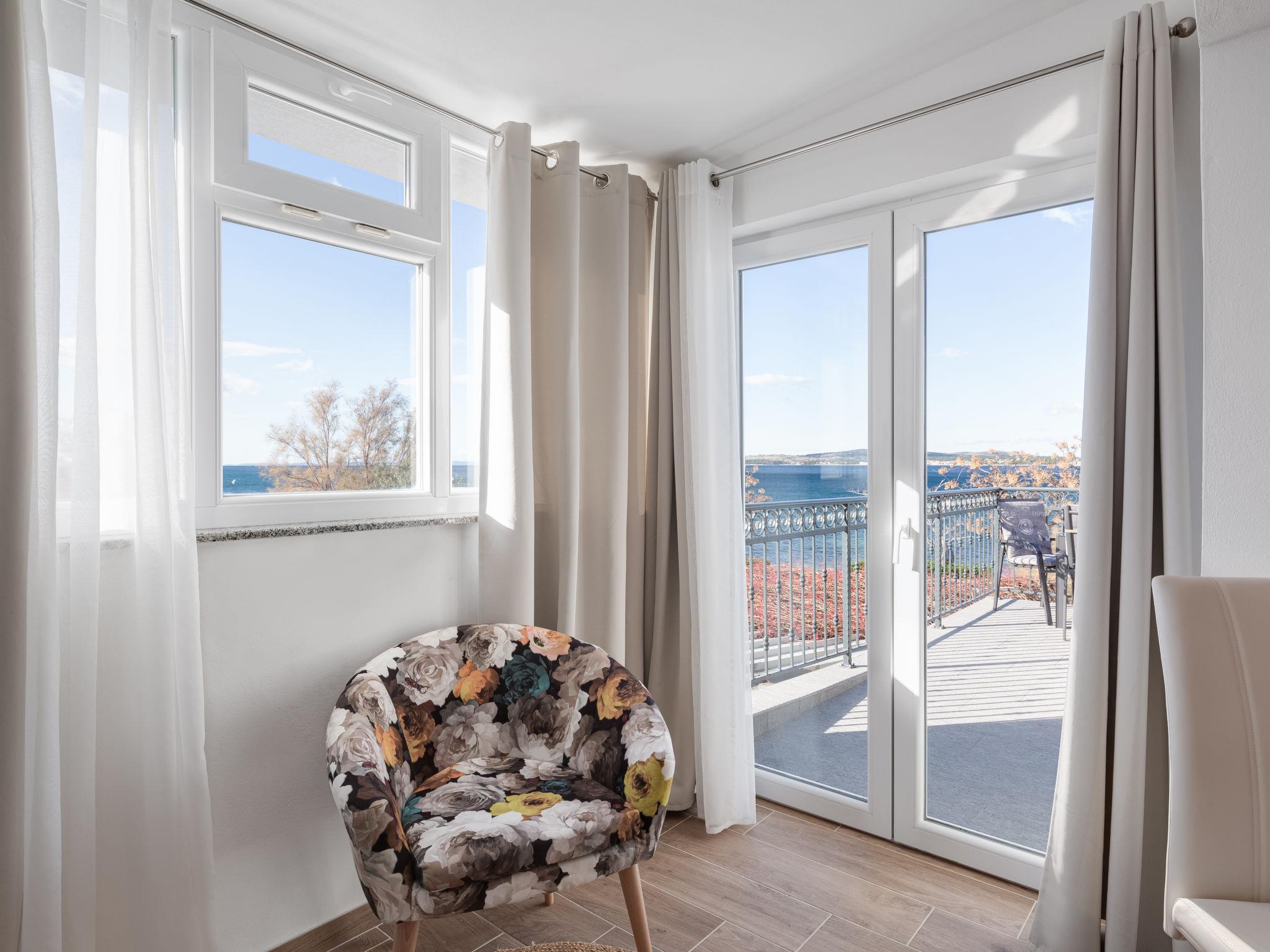 1-room apartment 35 m2 on 1st floor. 1 room with 1 sofabed (145 cm, length 200 cm), 1 double bed (2 x 80 cm, length 200 cm). Kitchen (oven, 2 ceramic glass hob hotplates, toaster, kettle, electric coffee machine) with dining table, satellite TV (flat screen), air conditioning. Exit to the balcony. Shower/WC. No heating option. Balcony 20 m2. Balcony furniture, deck chairs (2). Beautiful view of the sea. Facilities: hair dryer. Internet (WiFi, free).