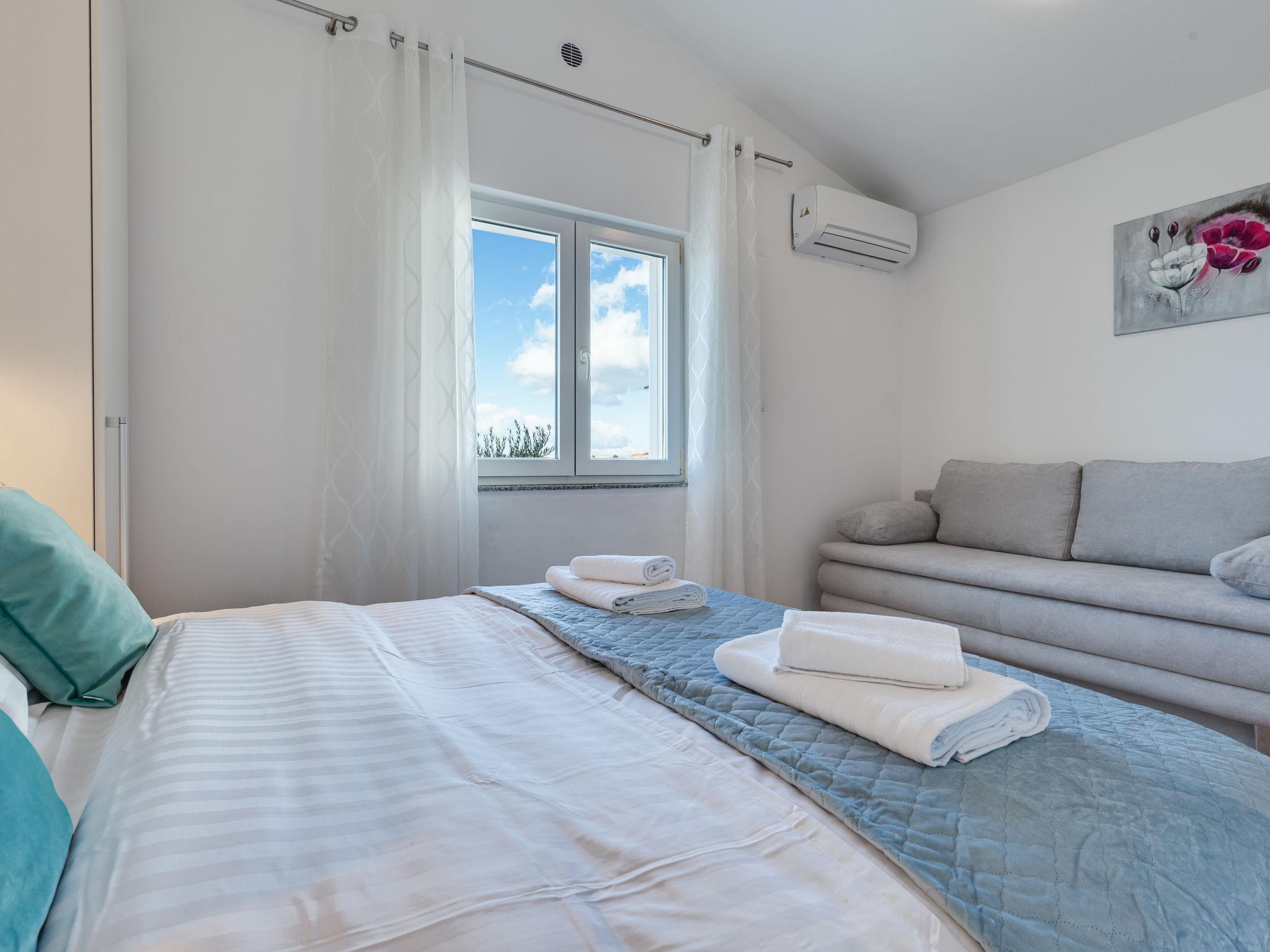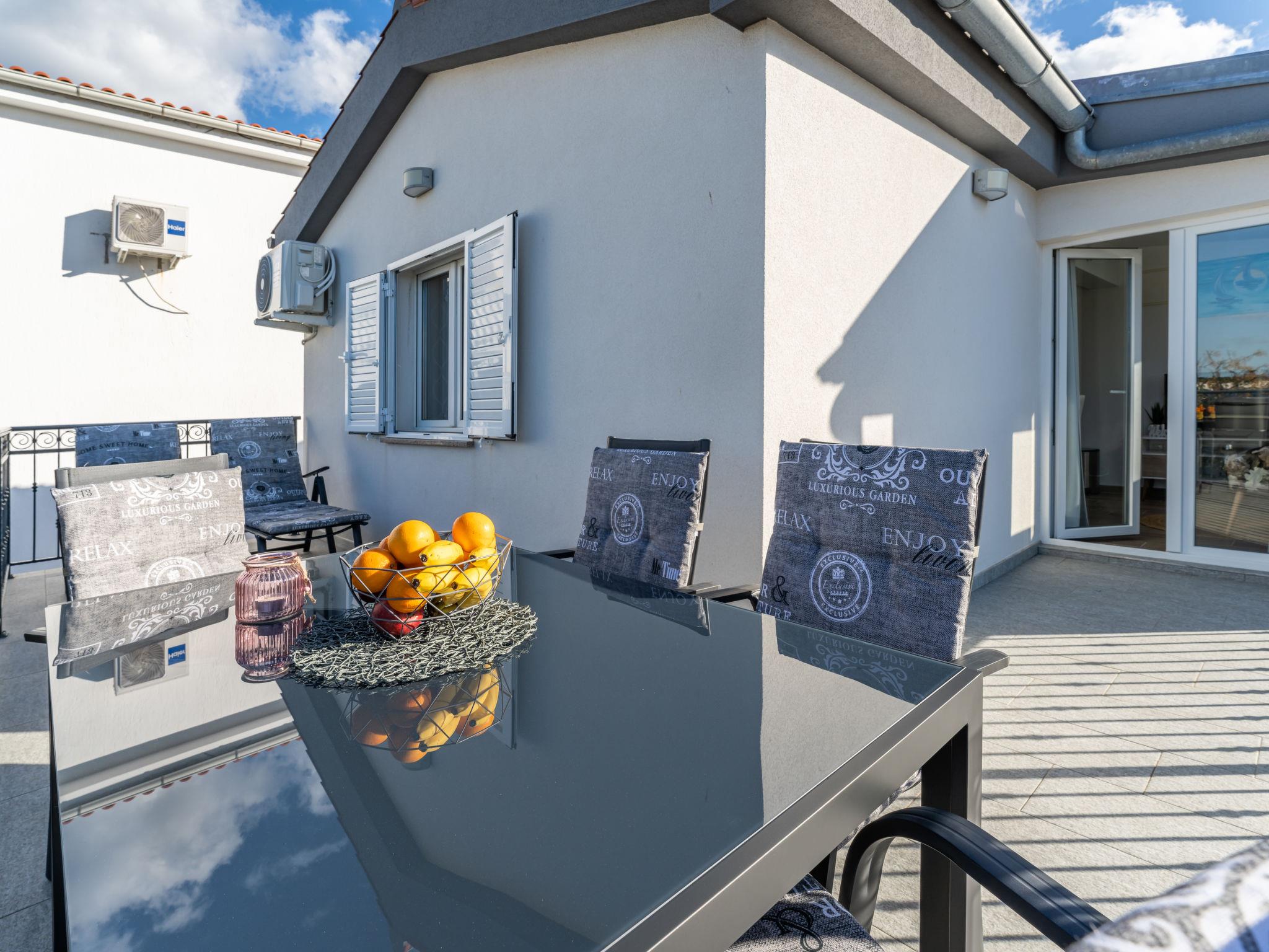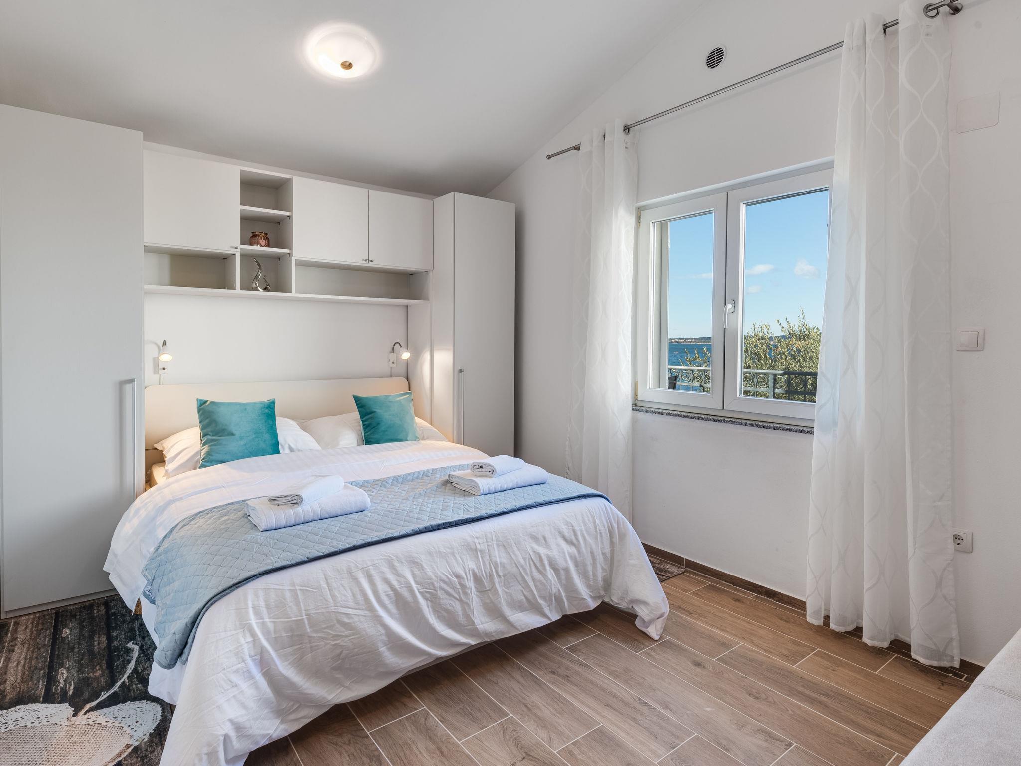 Apartment house "Tramonto". 3.5 km from the centre of Vir, in a sunny position, 20 m from the sea, 20 m from the beach. For shared use: property 600 m2, trees. In the house: restaurant, internet access. Parking at the house on the premises. Shop 600 m, supermarket 1.1 km, bus stop 4.4 km, pebble beach 20 m.