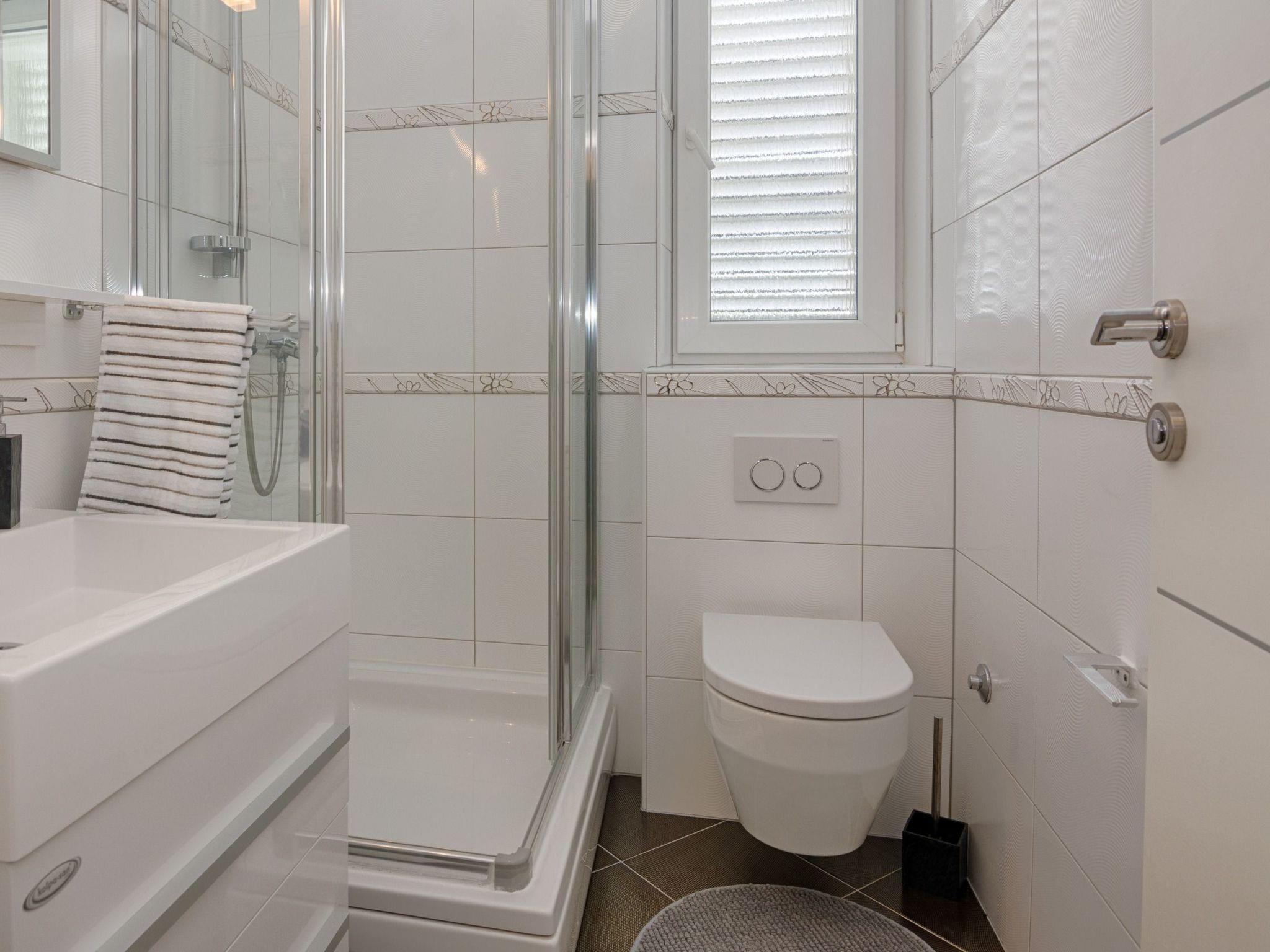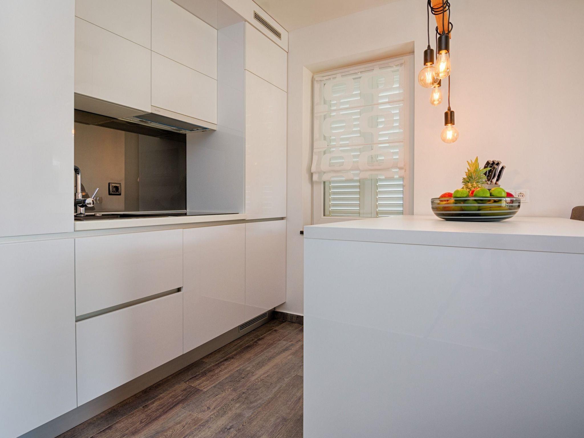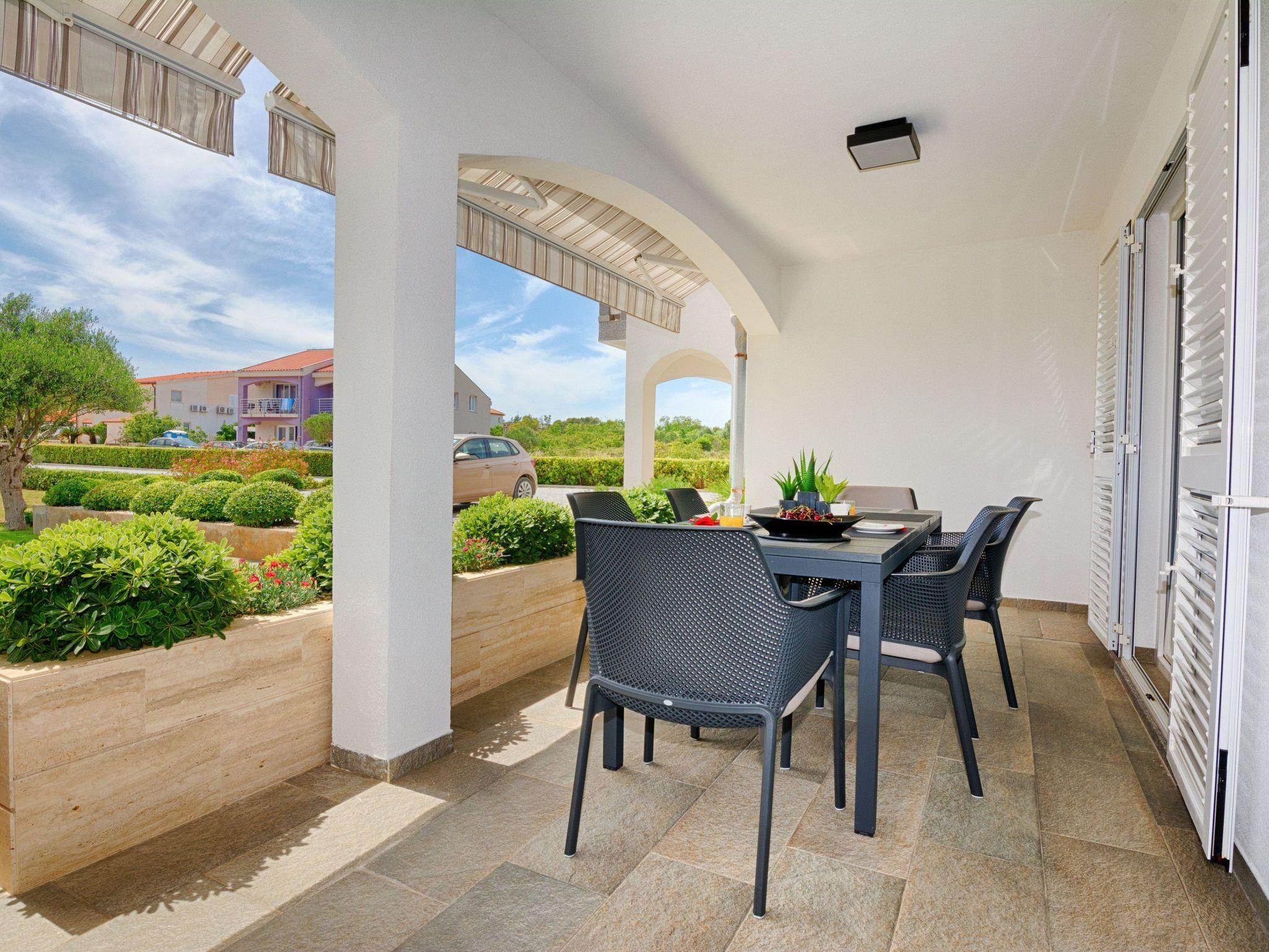 At the property there is a swimming pool of 87m² (13,5m long, 6,5m wide and 1,4m deep) with loungers and a relax area with spacious lounge seating furniture under a parasol. The 45m² apartment is located on the ground floor of the house and is divided into a kitchen, dining and living area, a bedroom with double bed and a bathroom with shower cabin. In the living room there is a sofa bed for two more persons. 15m² furnished and roofed terrace with a sea view belongs to the apartment. Air conditioning, satellite TV, Wi-Fi internet and grill pavilion in the courtyard with outdoor kitchen with oven and outdoor dining area are among the other features. Restaurants and shopping opportunities can be found at a distance of a few minutes’ walk. The beach Jadro, the most popular beach on the island of Vir where You can find all kinds of entertainment during Your summer vacation is just 200m distanced.