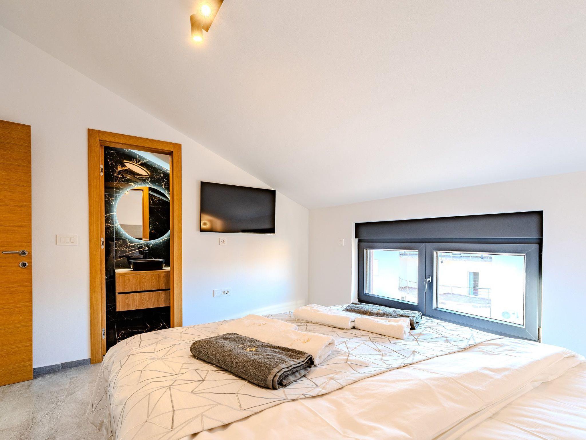 The nearest beach is 100 metres from the flat. The distance from the centre of the island of Vir is 3000 m. The market is 500 metres from the flat, as is the distance from the restaurant.