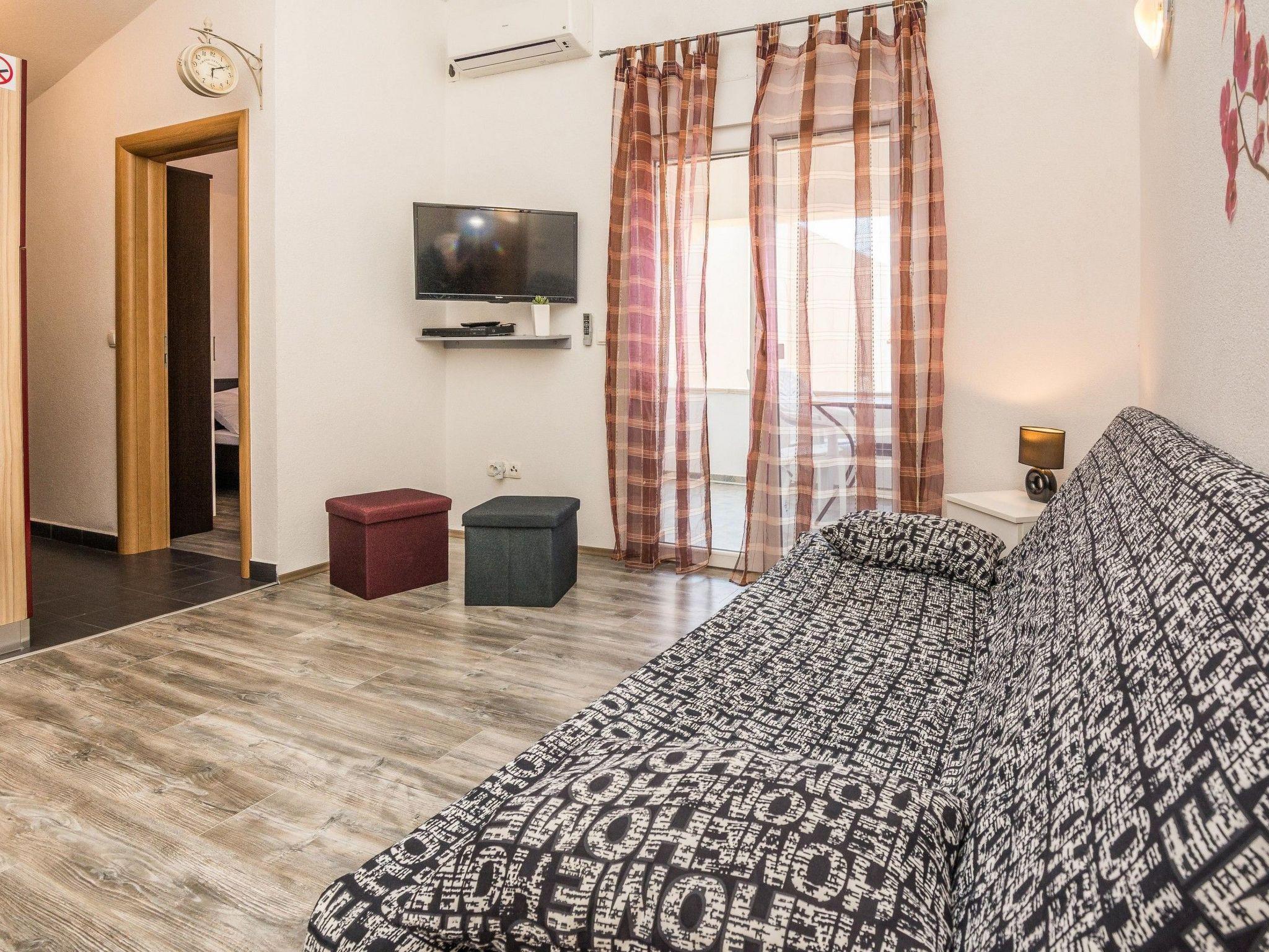 Outside, a 10 square metre covered and furnished balcony invites you to enjoy relaxing hours outdoors. The garden, which is for communal use, offers a wonderful opportunity to relax in the midst of the Dalmatian countryside or read a good book. As the landlord lives on the property, help is readily available if you have any questions or concerns.