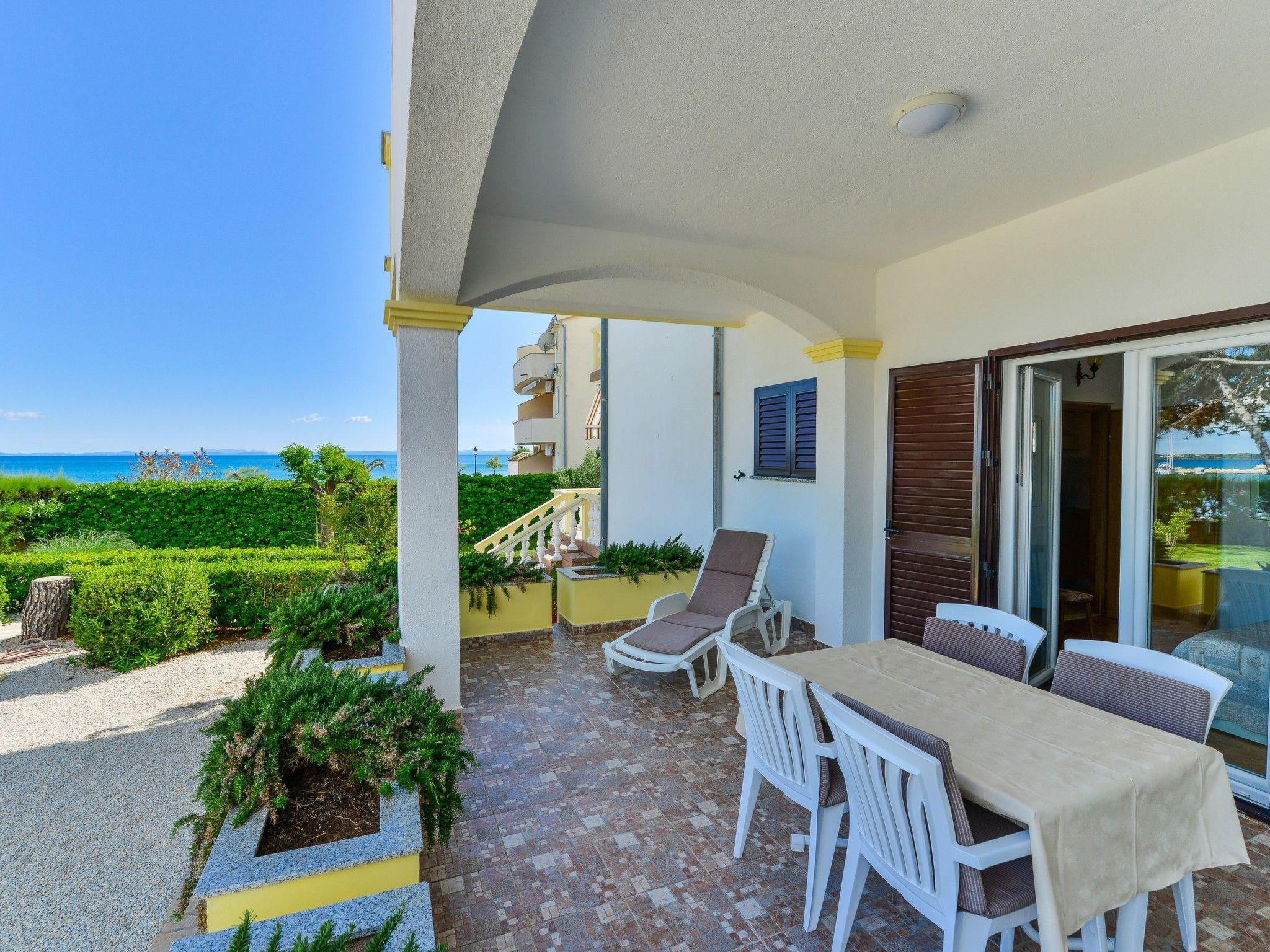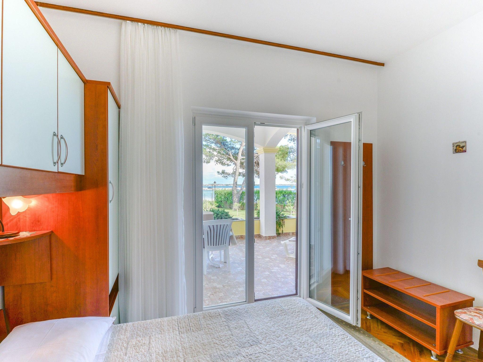 The apartment distanced just 20m from the beach on the ground floor of the house is divided into a dining and living area with fully equipped kitchen, a double bedroom with a double bed and terrace, a bathroom with a shower and an additional 10 m² roofed and furnished terrace with loungers. Parking on the property, air conditioning, satellite TV, Wi-Fi Internet, garden with barbecue and outdoor shower are among the other features of this apartment. Children’s cot and highchair upon request. The popular pebble beach Jadro with numerous recreational and entertainment programs for children and adults is a promenade along the coast, ideal for relaxing evening walks. A restaurant is just 50 m distanced, while the center of the island of Vir and a shop are 250 m distanced.