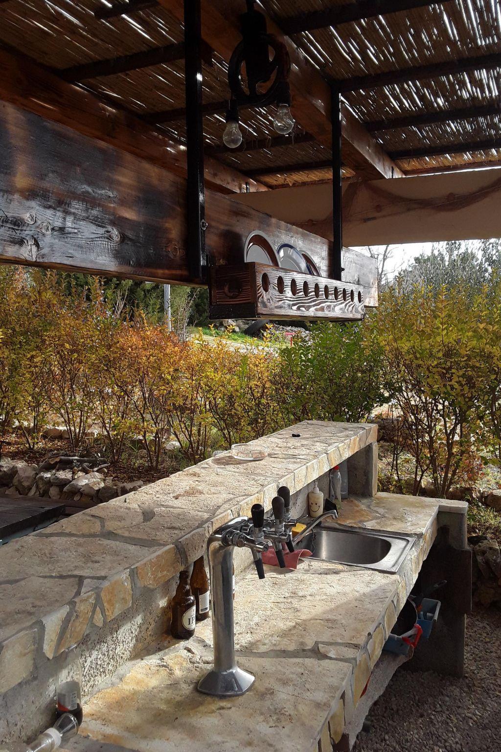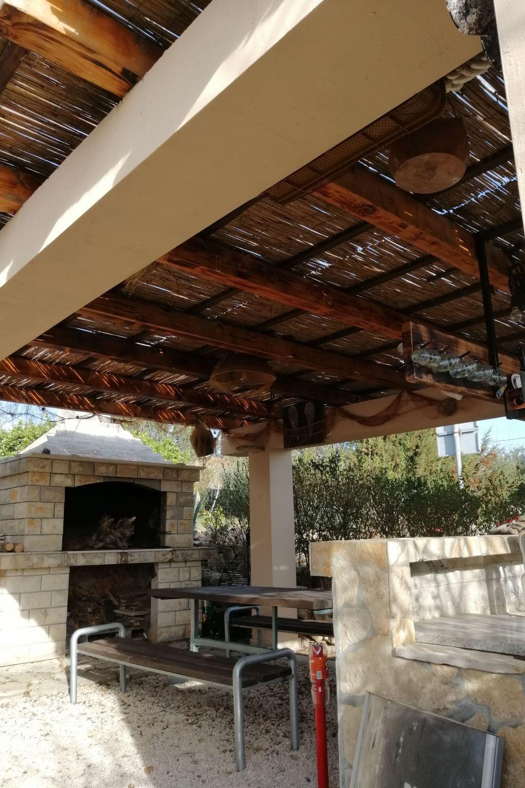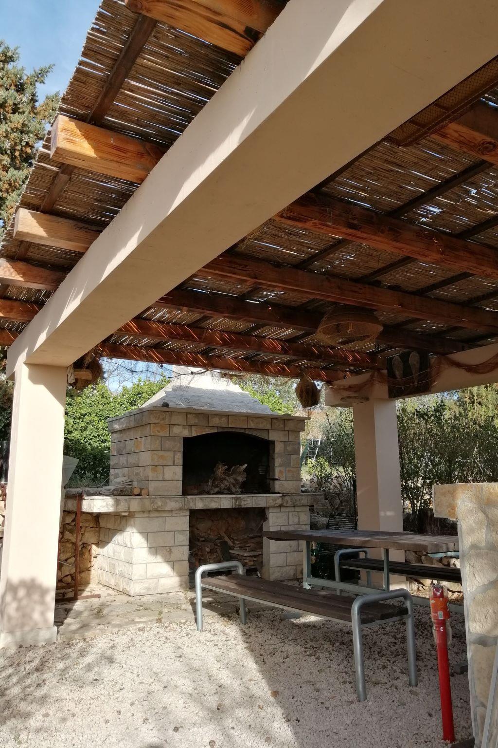 The house has a 200m² plot of garden in a slightly elevated location and therefore providing a beautiful view of the sea and the surrounding islands. While adults relax on the terrace or prepare dinner on the outdoor barbecue, children can play in the playground next to the house. The terrace is roofed and provides seating furniture. The site is partially fenced and six parking spaces are available.