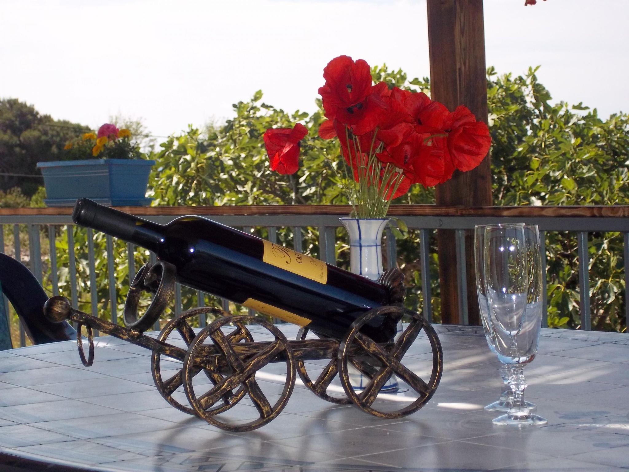 The house provides 100m² of living space and can accommodate eight people. It has a bathroom with a bath, toilet and bidet, as well as three bedrooms. The bedrooms have three double beds (two of which measure 160 x 200cm and one measuring 140 x 200cm). Two supplementary single beds (90 x 200cm) are also available. The living room-kitchen has a sofa, a dining table and a kitchen unit equipped with a gas stove, oven, fridge and microwave. The central air conditioning is in the entrance area to the house. It has 5.5 kilowatt of power and can cool the whole house. You can surf the Internet free of charge with your laptop. Wireless Internet access is available for free.