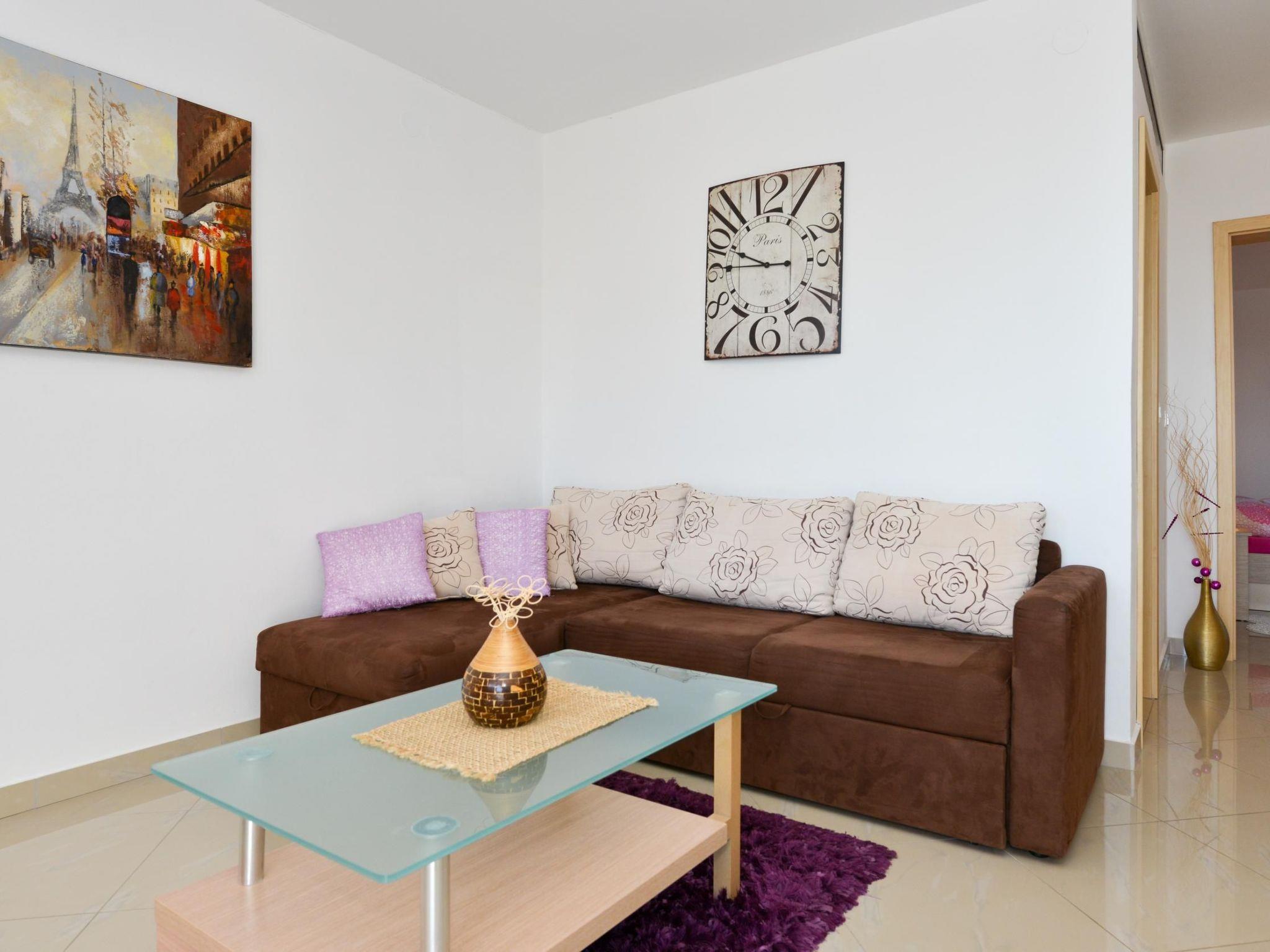The 43m² apartment has a bedroom with a double and a single bed. The living room also has a sofa bed for two people, a dining area and a modern kitchen, fully-equipped with all the usual appliances. The bathroom provides a shower, bidet, WC and washing machine.