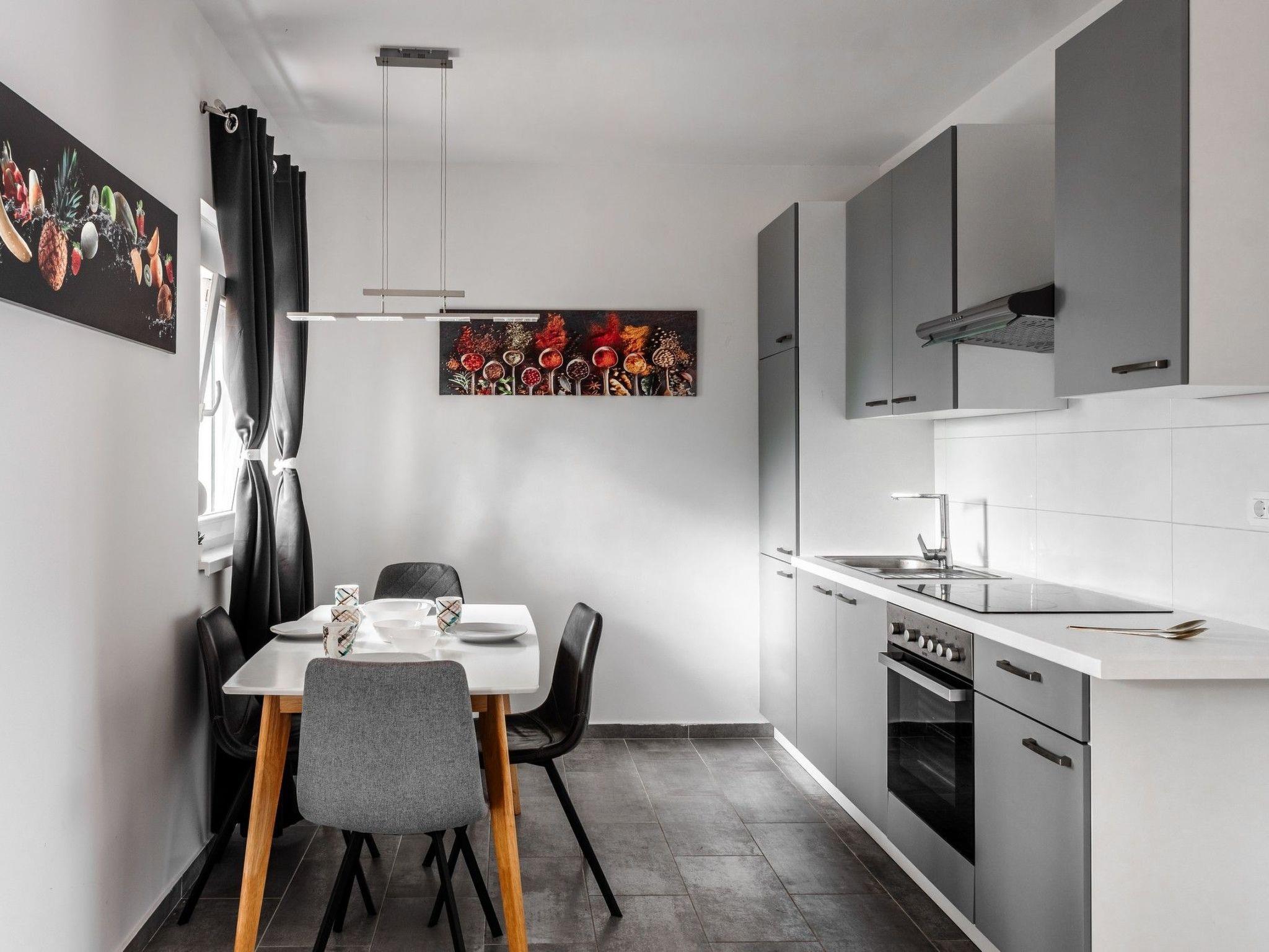Inside, the apartment features a well-equipped kitchen alongside a dining and living area, creating a seamless space for gathering and making memories. Two inviting bedrooms with double beds ensure a restful night's sleep after a day of exploration and beach fun. Additionally, the living area houses a sofa bed to accommodate an additional guest. The apartment is partially air-conditioned, providing a cool respite from the warm Dalmatian sun. A bathroom with a shower completes the interior, promising convenience and comfort throughout your stay.