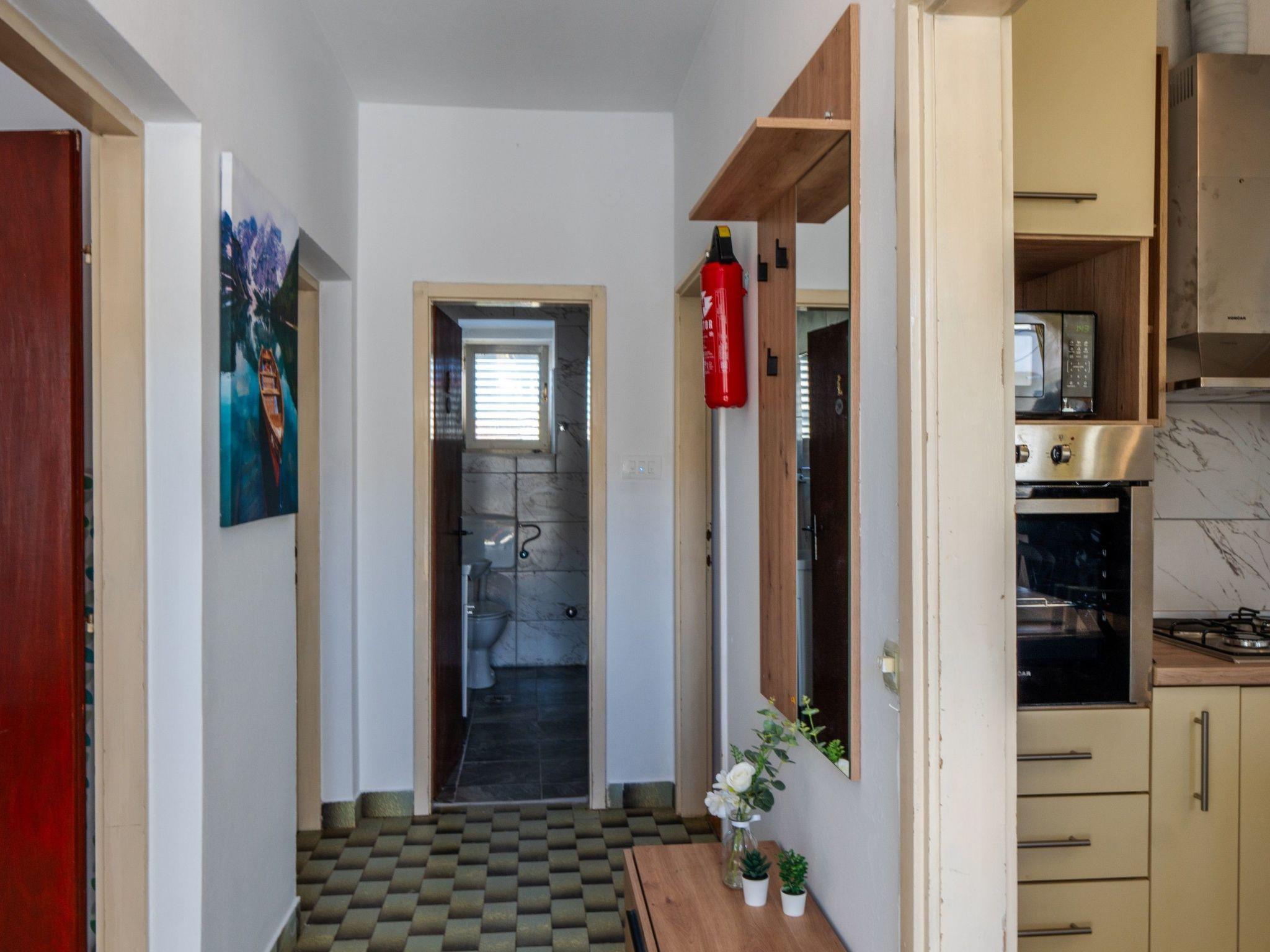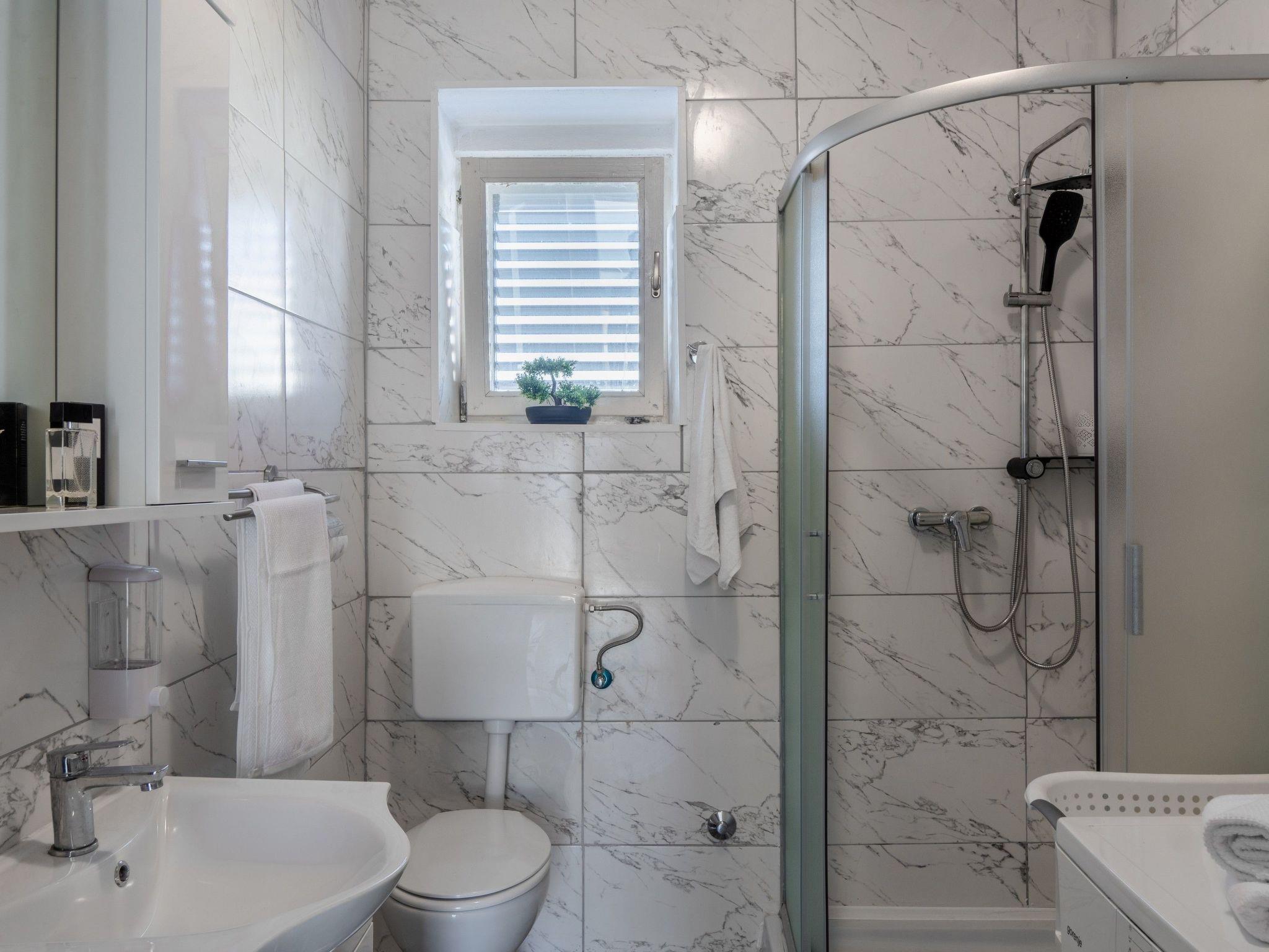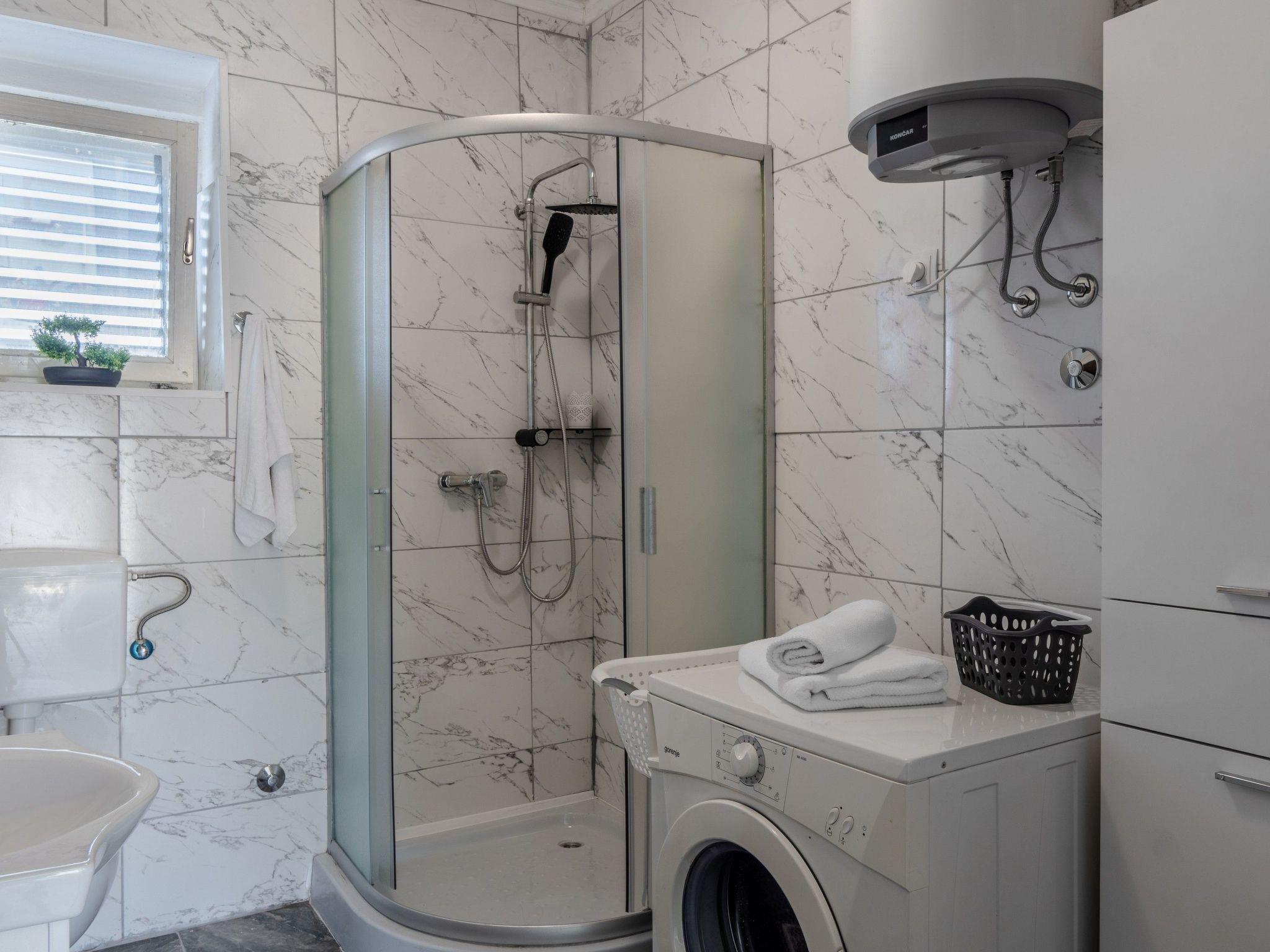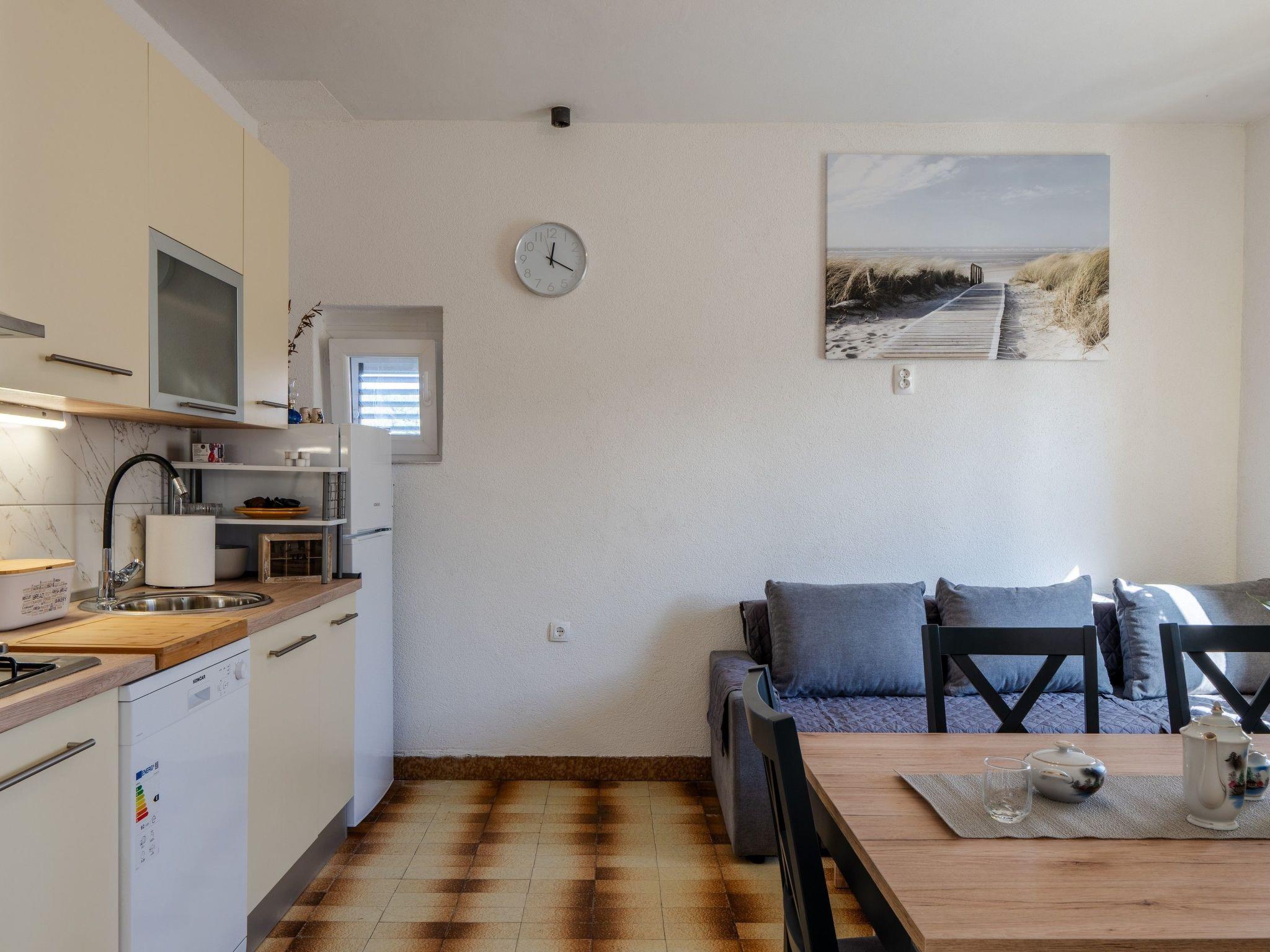 The apartment's prime location means the glistening waters of the sea and the picturesque Jadro beach are just 300m away, inviting guests to partake in a variety of recreational and entertainment activities. For those traveling with pets, a dog beach is located within 5000m, ensuring fun for the entire family. Essentials such as grocery shopping can be done with ease, with a store just 100m away. Furthermore, the vicinity to the nearest town center, also 100m away, provides an excellent opportunity to explore local culture and cuisine.