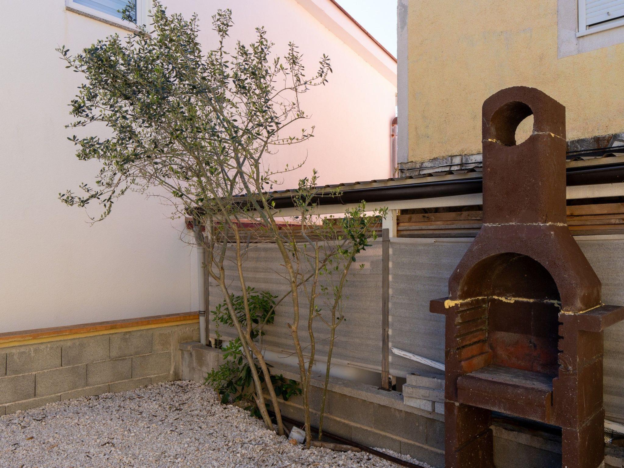 The exterior of the apartment compliments its inviting interior, boasting a spacious 10 m² balcony shared among guests, ideal for relaxing and soaking in the pleasant Dalmatian atmosphere. The common garden offers a serene spot for outdoor leisure, and the inclusion of a barbecue in the courtyard encourages delightful evenings of dining al fresco.