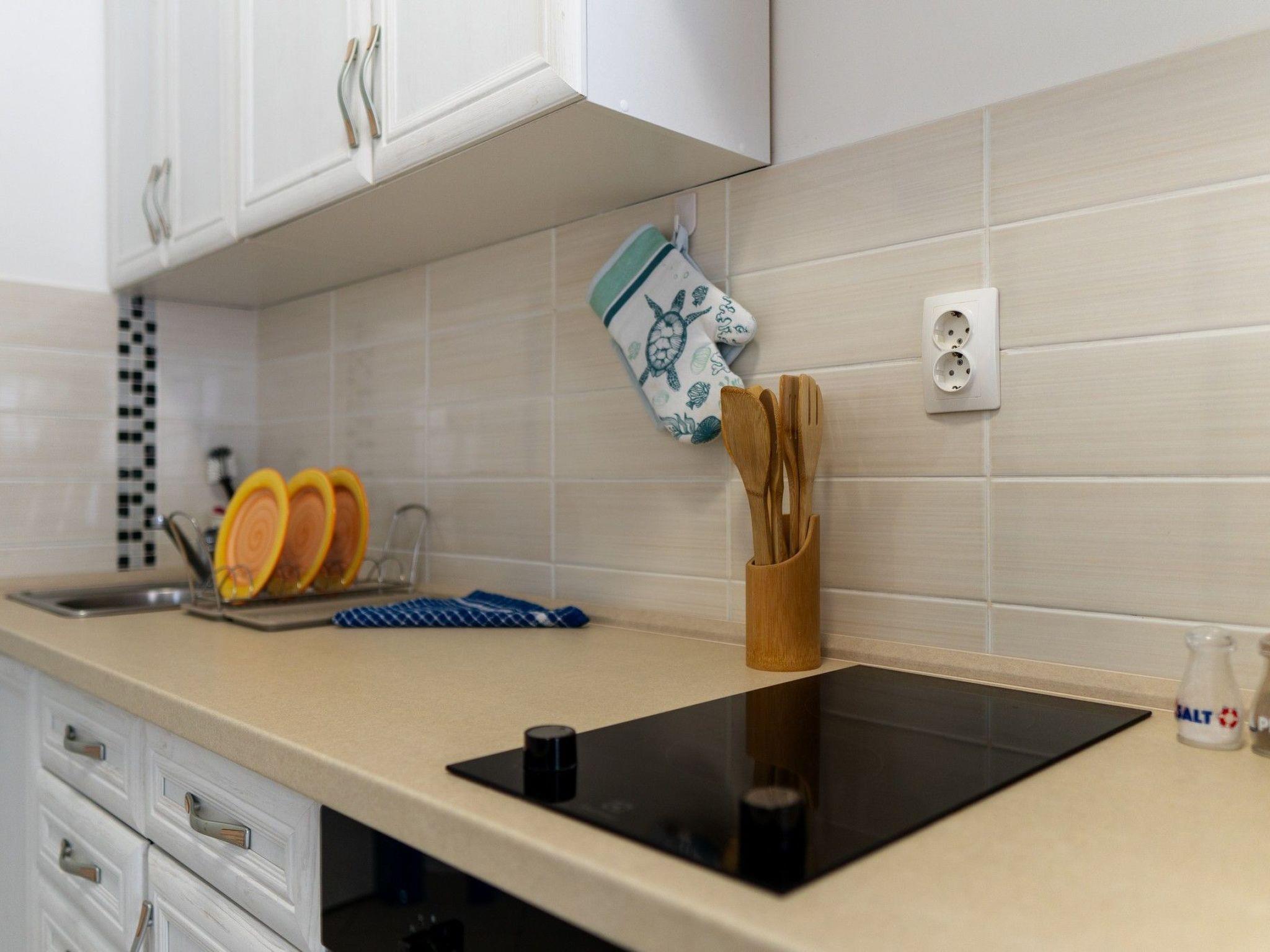 Inside, the apartment is thoughtfully equipped to cater to your every need. It features an air-conditioned living and dining area adorned with a comfortable sofa bed that conveniently accommodates two additional guests. The bedroom is furnished with a cozy double bed, ensuring a restful night's sleep. The convenience is further enhanced by the inclusion of a washing machine for your exclusive use within the unit, alongside amenities such as an electric kettle to start your morning with a warm beverage.