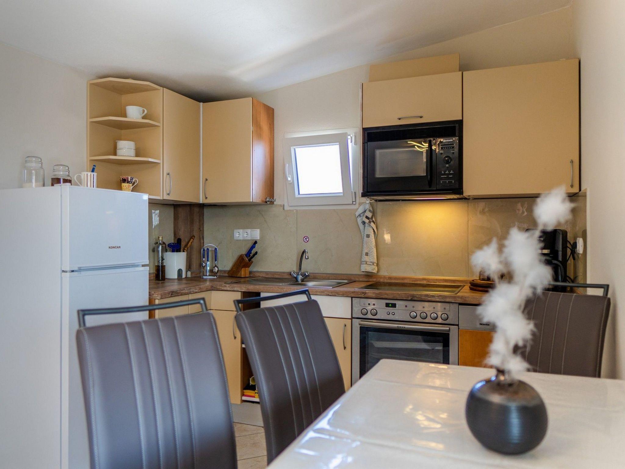 Positioned a mere 200 meters from the pebble beach and the sea, the apartment's location is ideal for beach lovers and water enthusiasts alike. A short stroll will take you to the heart of Vir, 1300 meters away, where restaurants, shops, and the vibrant town center await to enrich your holiday experience. With the grocery store just 250 meters from your doorstep, daily essentials are conveniently within reach.