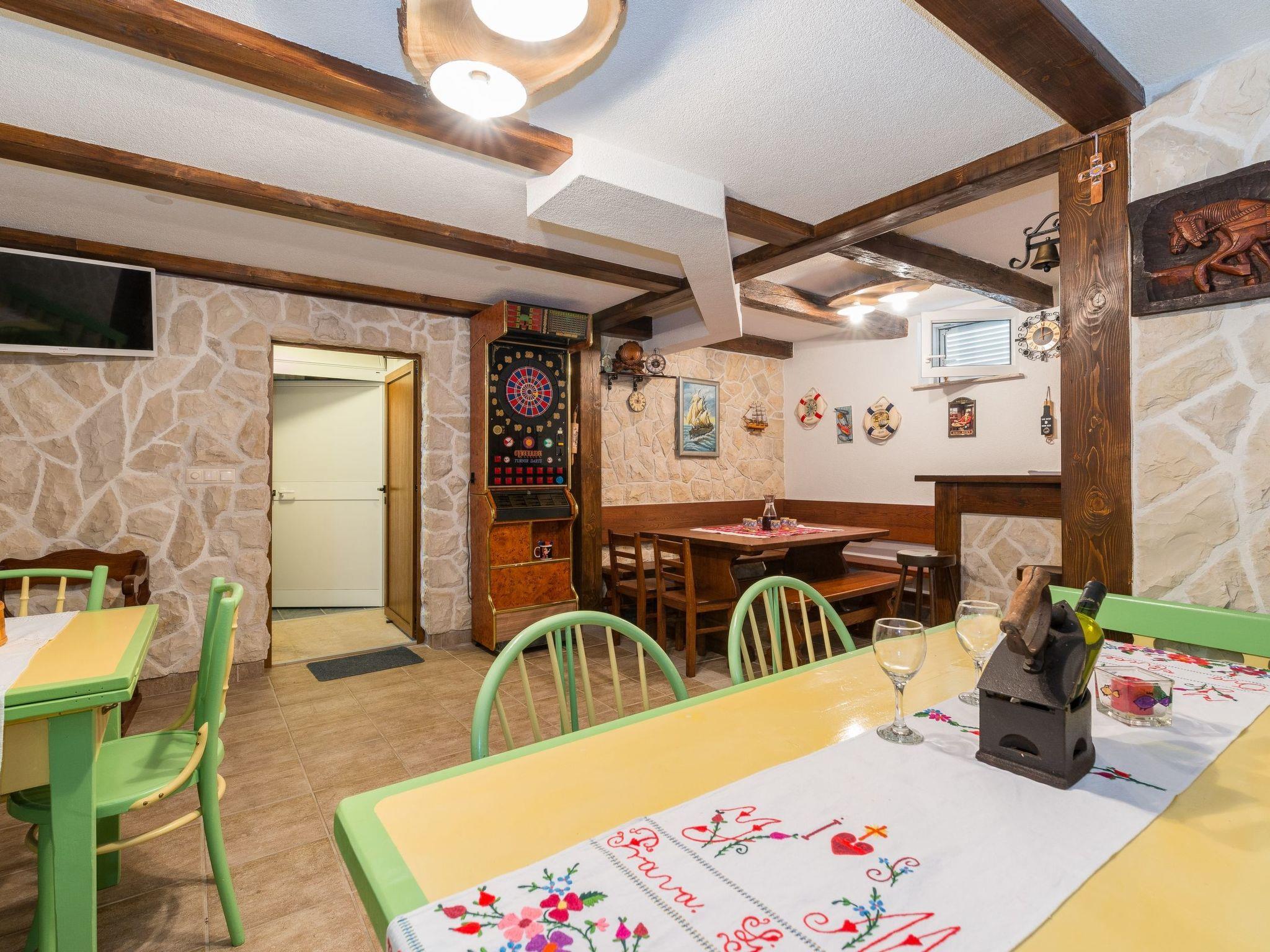 The apartment is divided into a living room with sofa bed for two persons, kitchen and dining area and bathroom with shower. From the living room you can reach onto a furnished 3 m² balcony. Other amenities include air conditioning, satellite TV, Wi-Fi Internet. Children's cot upon request. The common lounge area is located in the basement of the house and includes bar, seating furniture, darts, satellite TV, radio, air conditioning and refrigerator with freezer. Behind the house there is parking space for bicycles .In the courtyard of the house (200 m²) there is a pavilion with barbecue and garden furniture ideal for gatherings in warm summer evenings .The apartment is situated in a distance of 70 m from sea and 150 m from shops and restaurants.