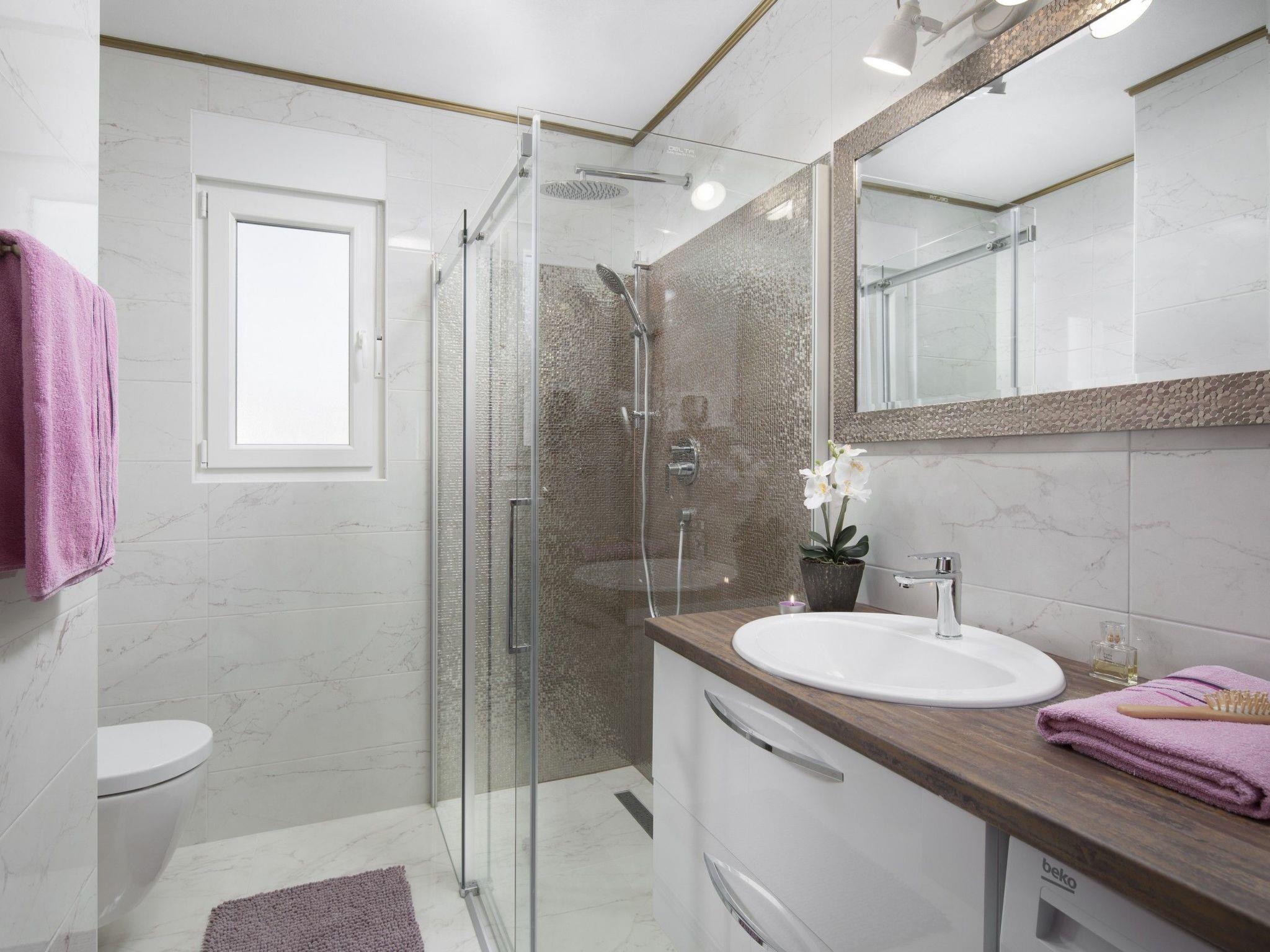 This luxurious, modern and newly furnished 4-stars apartment is located in the area of the island of Vir called Lucica, just 30 m from a beach and can accommodate 2-4 persons. The 63 m² apartment on the 1st floor of the house consists out of living and dining area with fully equipped kitchen, two bedrooms with double beds and a bathroom with a shower cabin. To the apartment belongs a 9 m² roofed balcony with table and chairs and a sea view. Washing machine, dishwasher, air conditioning, Wi-Fi Internet, satellite TV, safe and parking on the property are among the other features of this apartment. The common balcony and lounge area (85 m²) on the roof of the house (3rd floor) with grill pavilion, sating furniture, deck chairs and a breathtaking sea view is an ideal place for an everyday life getaway in the evening sunset atmosphere. On the nearby pebble beach Lucica with crystal-clear sea you can enjoy sunbathing, swimming or diving. Along the coast stretches a 7 km long promenade. For those who prefer more active vacation, this promenade is ideal for fast walking or running. Shops and restaurants can be found within walking distance.