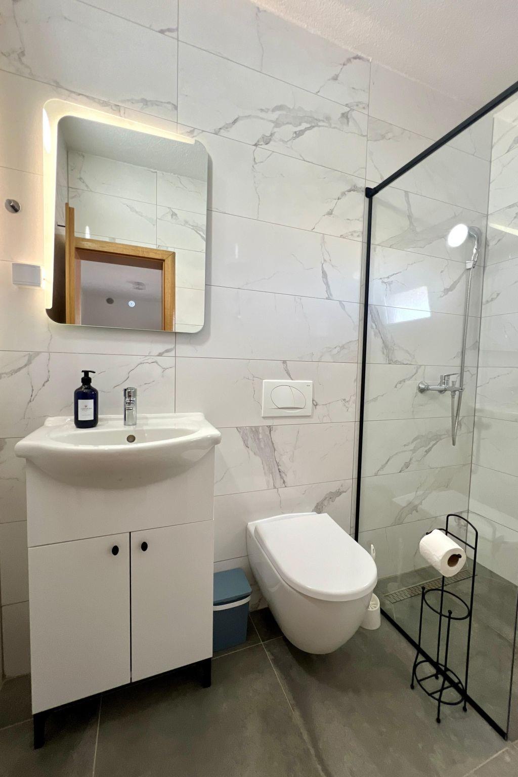 The pebble beach and the sea are 100 metres away. The shop is 800 metres from the flat, while the nearest restaurant is only 400 metres away. The distance from the centre of the island of Vir is 3000 m.